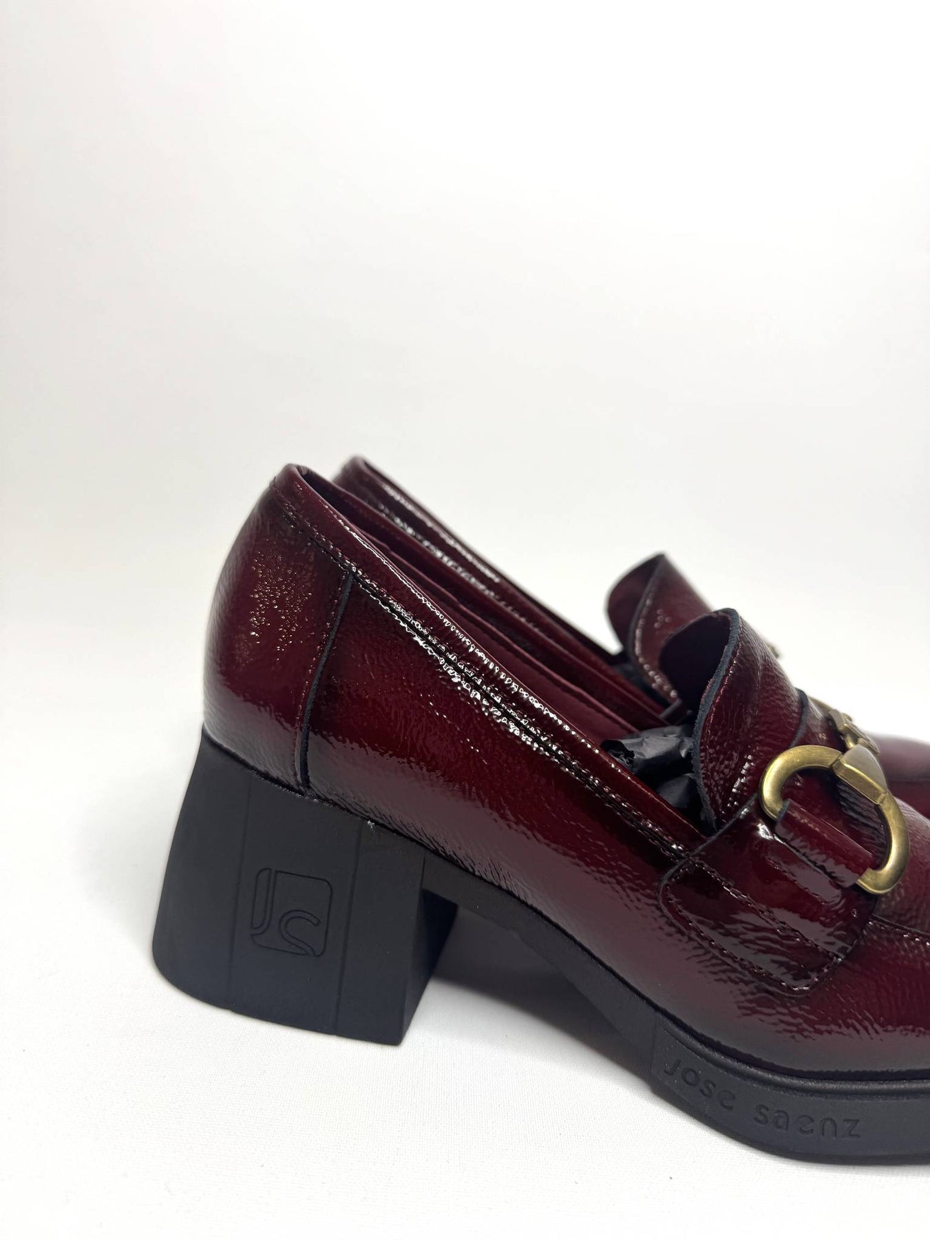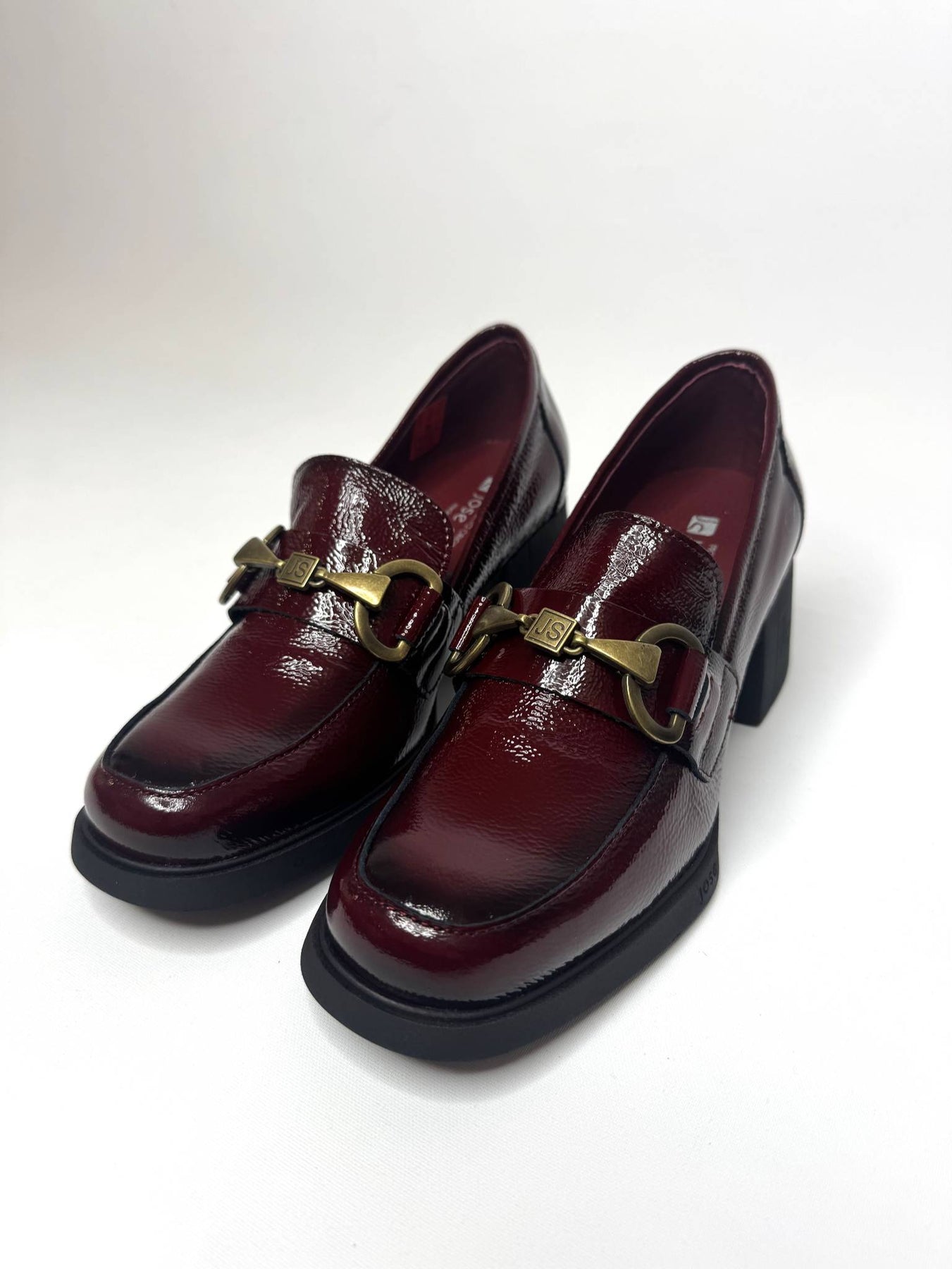These gorgeous burgundy heel shoes are perfect for your Autumn/Winter wardrobe. Stunning gold hardware buckle.