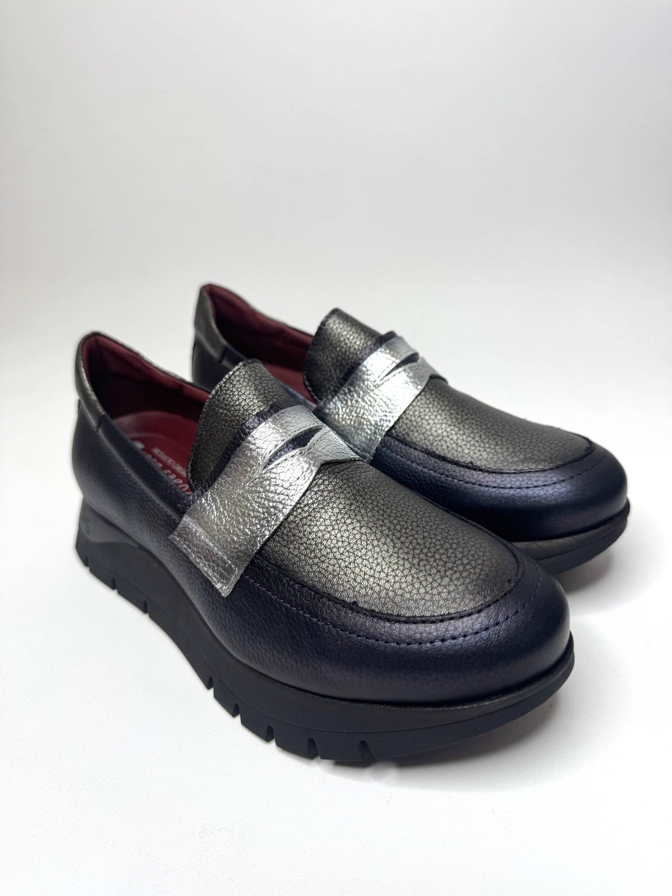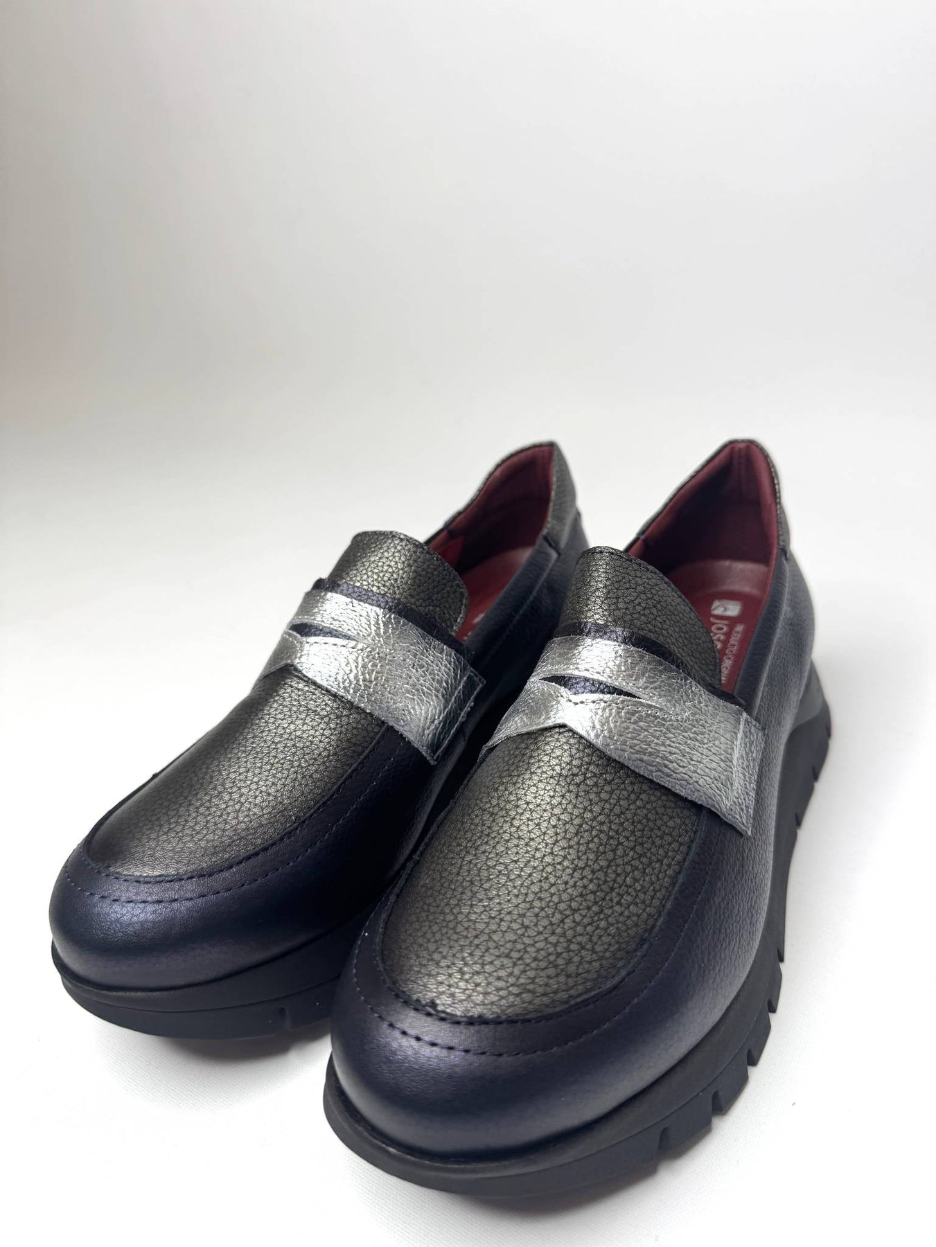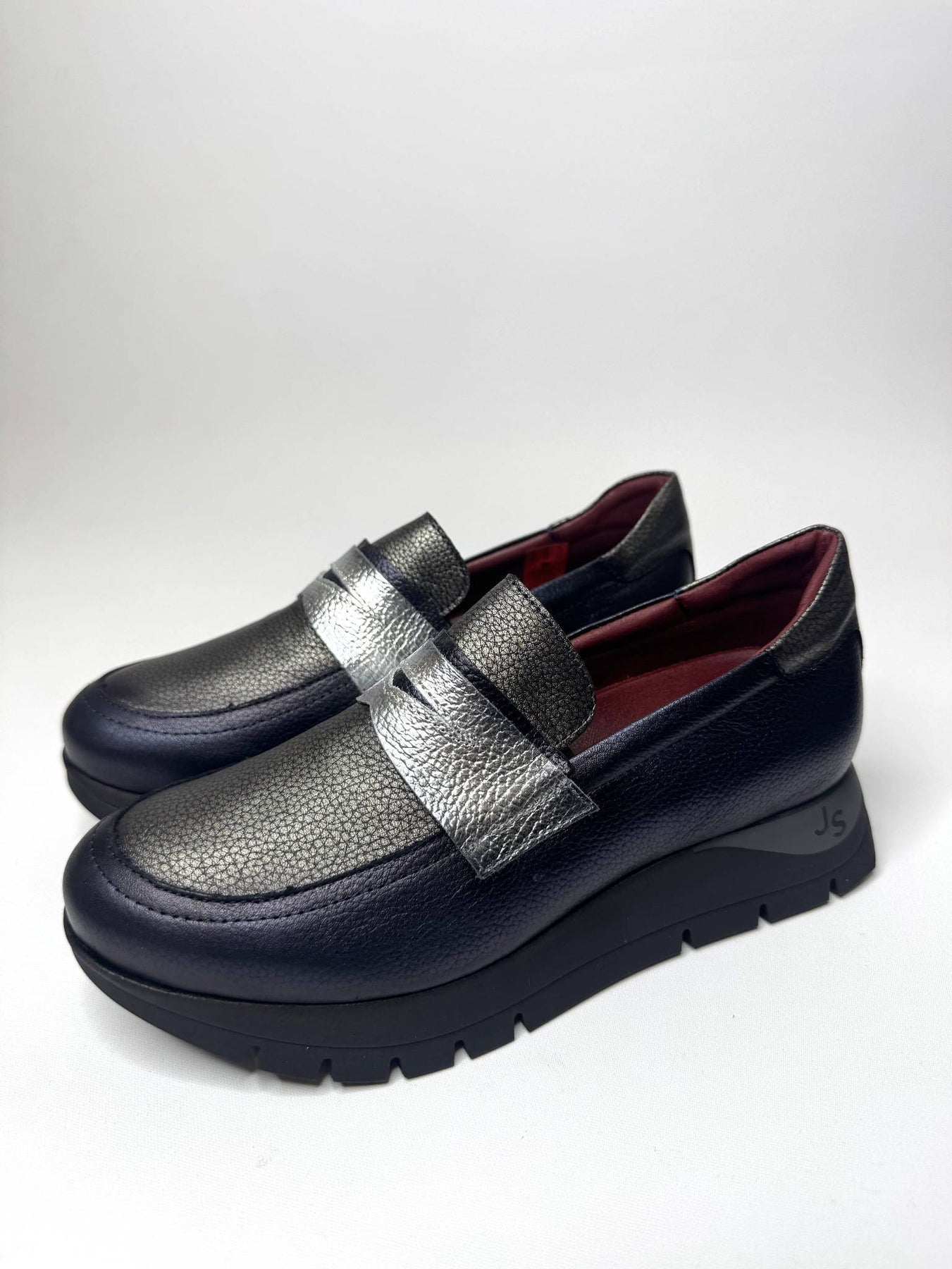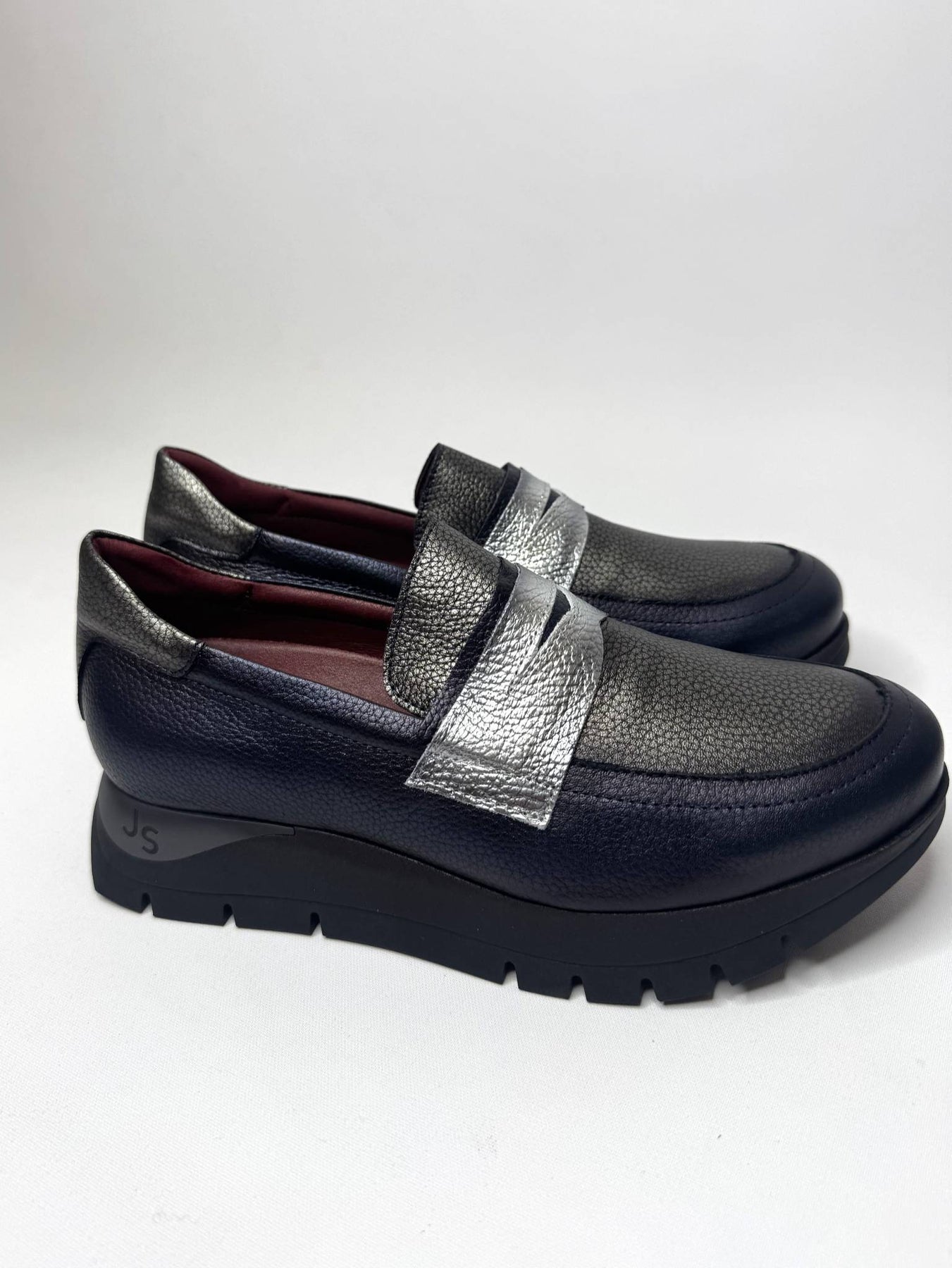 Regular price £110.00These are gorgeous navy and silver loafer shoes, stunning metallic look along the top. Super comfy shoe, which is fabulous.