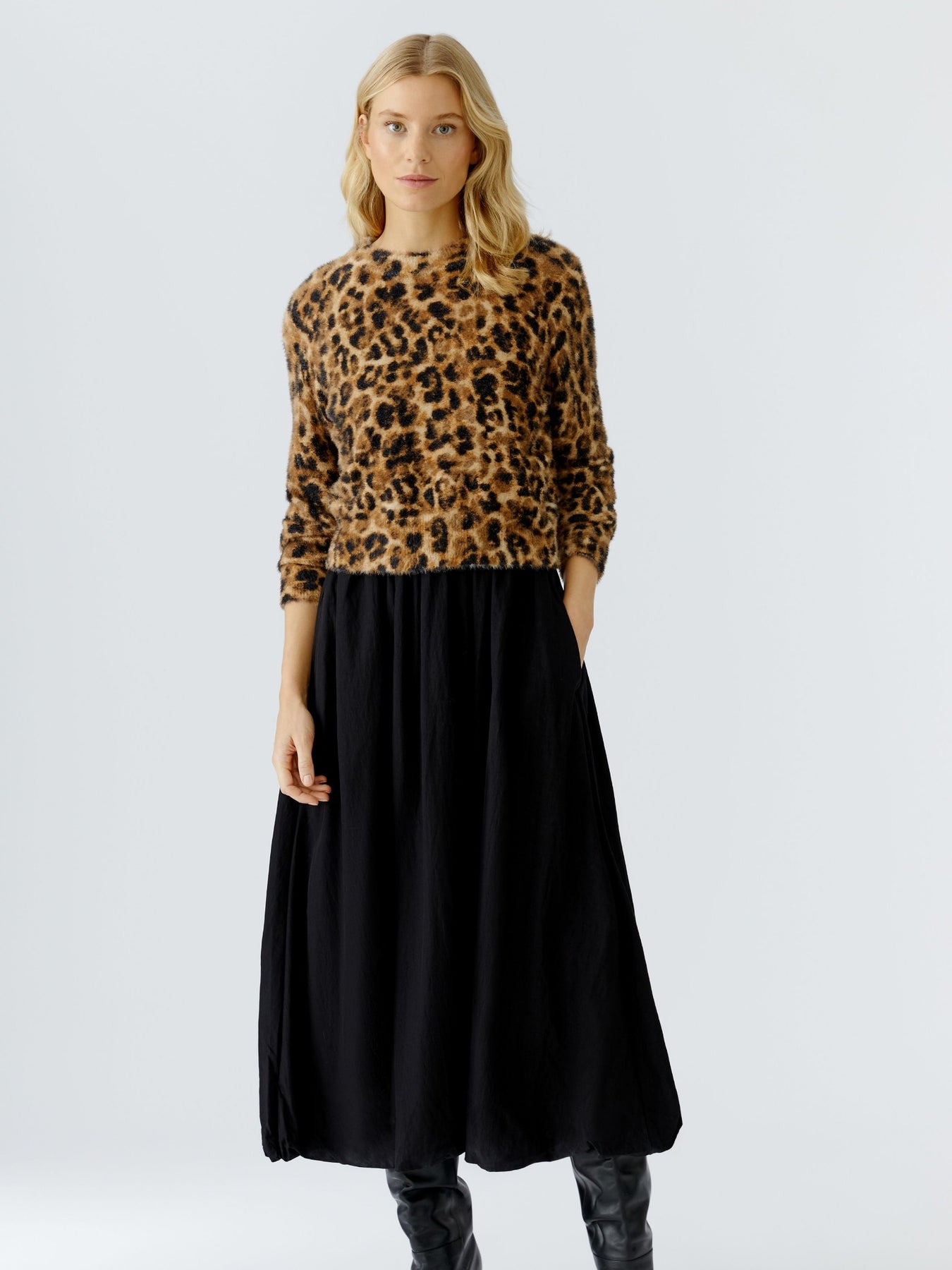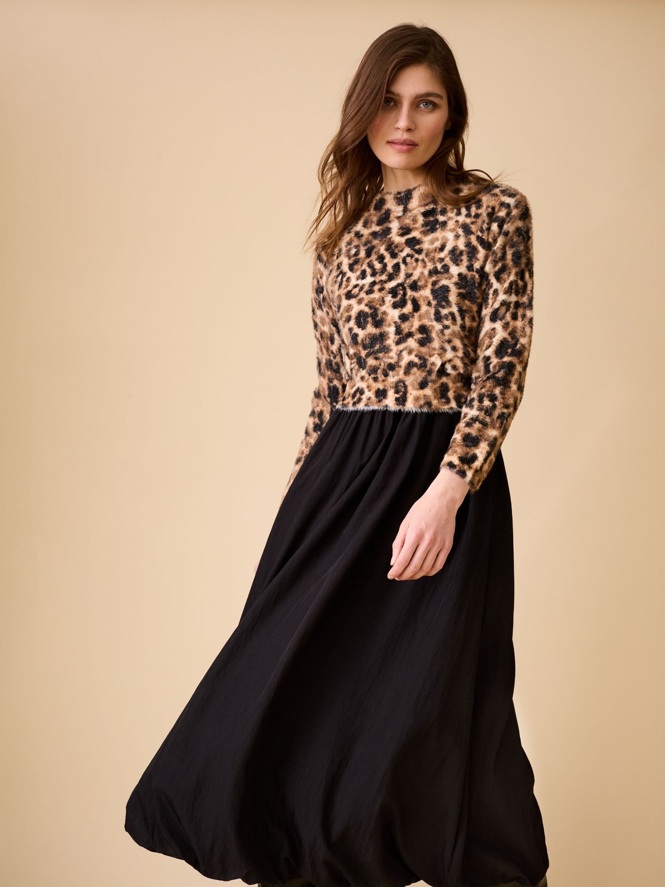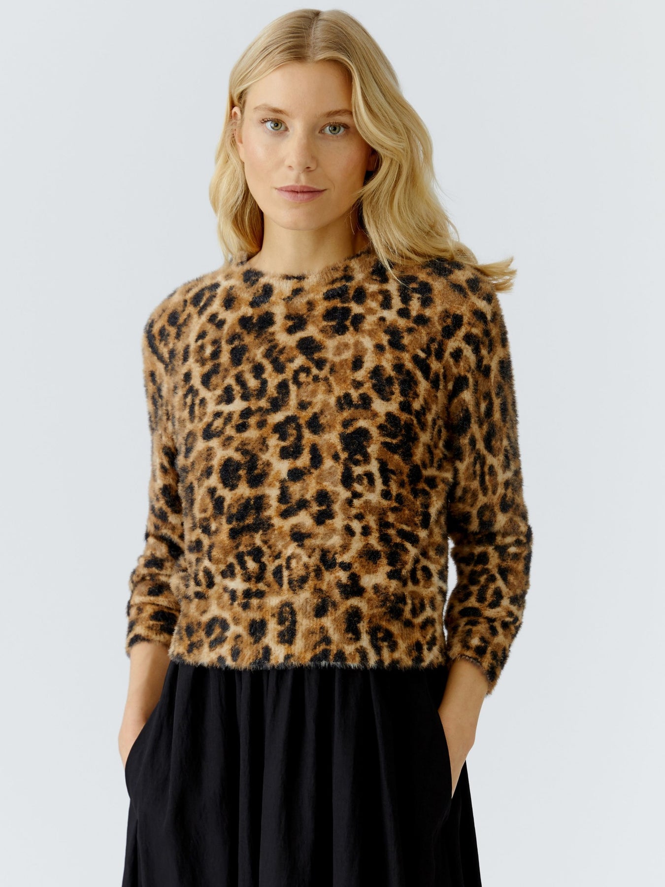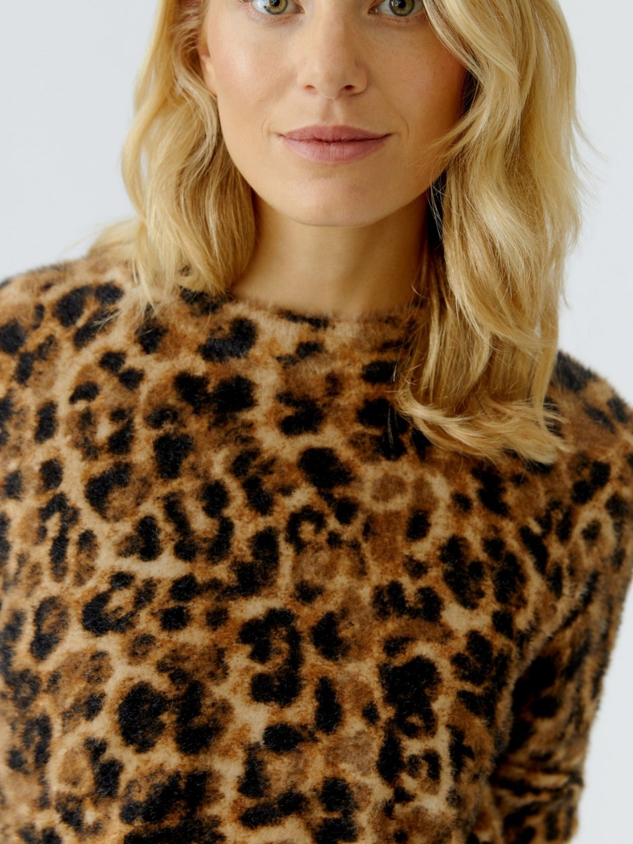 Regular price £129.95This is a fabulous leopard print sweater, in a modern shape like small or short. However the shape and style goes perfect with dress, high waisted trouser and wide leg trousers. This features fur yarn on the outside, high-quality bonded with a smooth viscose blend on the inside, printed with a leopard print all over, slim fit, in cropped length, short, double stand-up collar in fine rib, narrow, straight long sleeve and all cuffs are knitted tighter and printed all over.