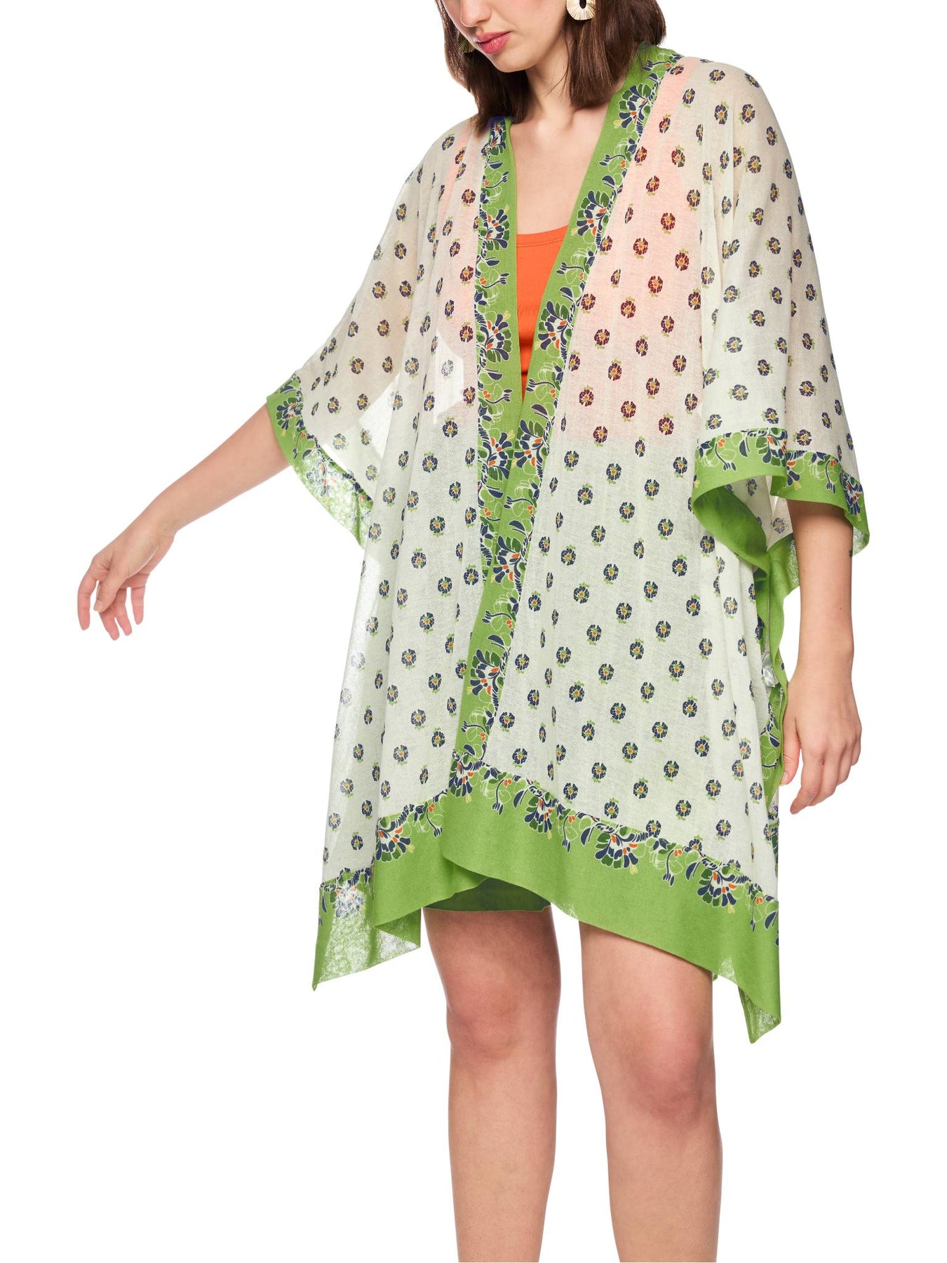 Regular price £319.00‘Knitted in Germany’ printed cape|A charming cape made from fine cotton stretch, finely knitted and ideal for light, elegant layered looks. The loose fit ensures comfortable freedom of movement, while the sophisticated mix of small flowers and stylized hibiscus prints gives the design a modern, feminine touch. This garment is ‘Knitted in Germany’: the yarns are knitted on state-of-the-art machines, and the materials are finished in Germany.|Wide silhouette|‘Knitted in Germany’|Fine knit|No fastening|The model is 179 cm tall and wearing size N3 / UK 12.