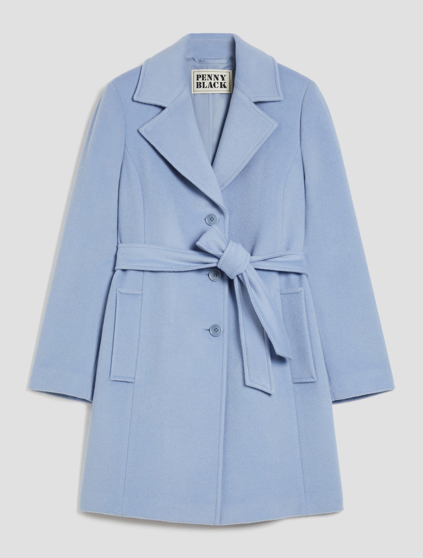This mannish-inspired coat in pure wool broadcloth is a contemporary classic, to be worn time and time again. This coat features pure wool broadcloth, single-breasted cut and a figure-skimming fit, lapel collar, welt front pockets, rear slit, matching tie belt at the waist and lined model.