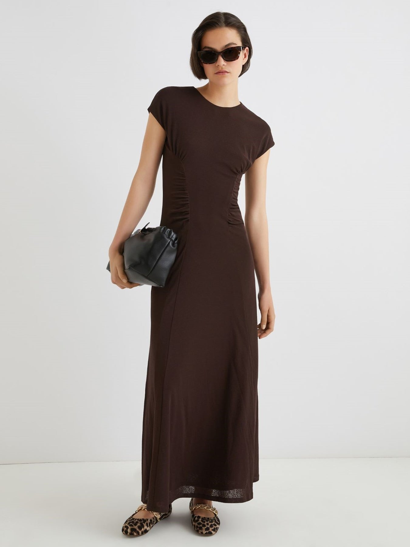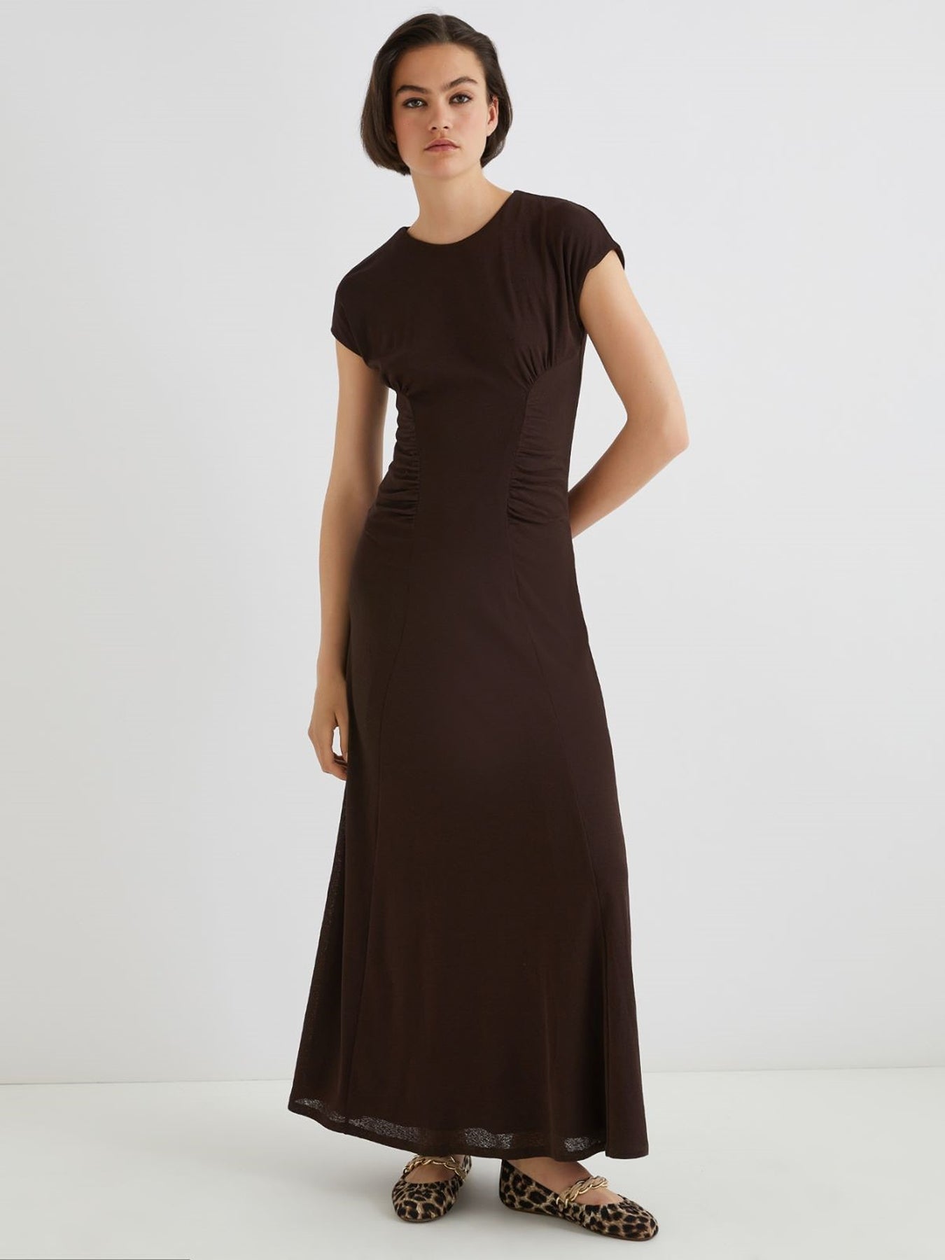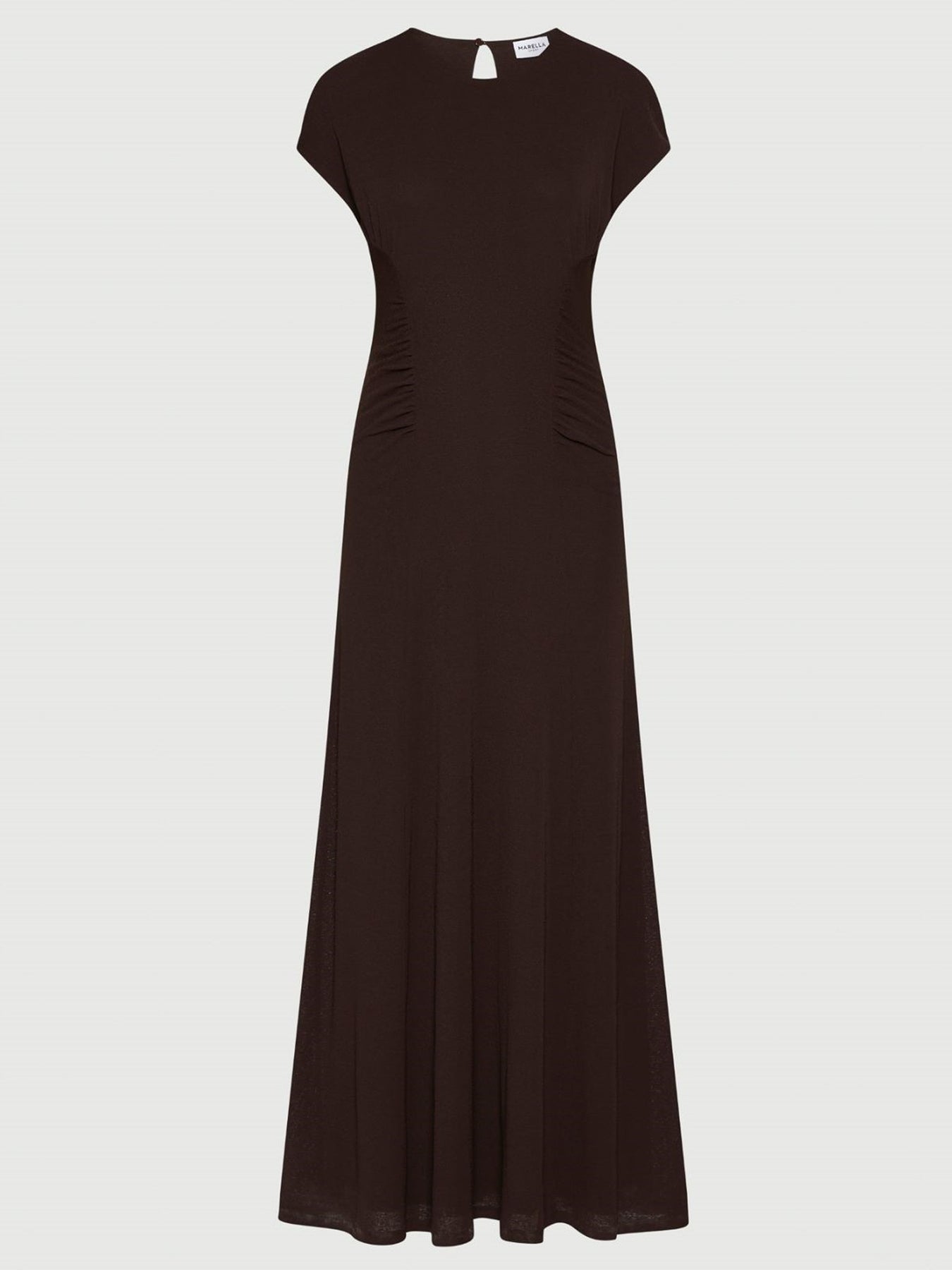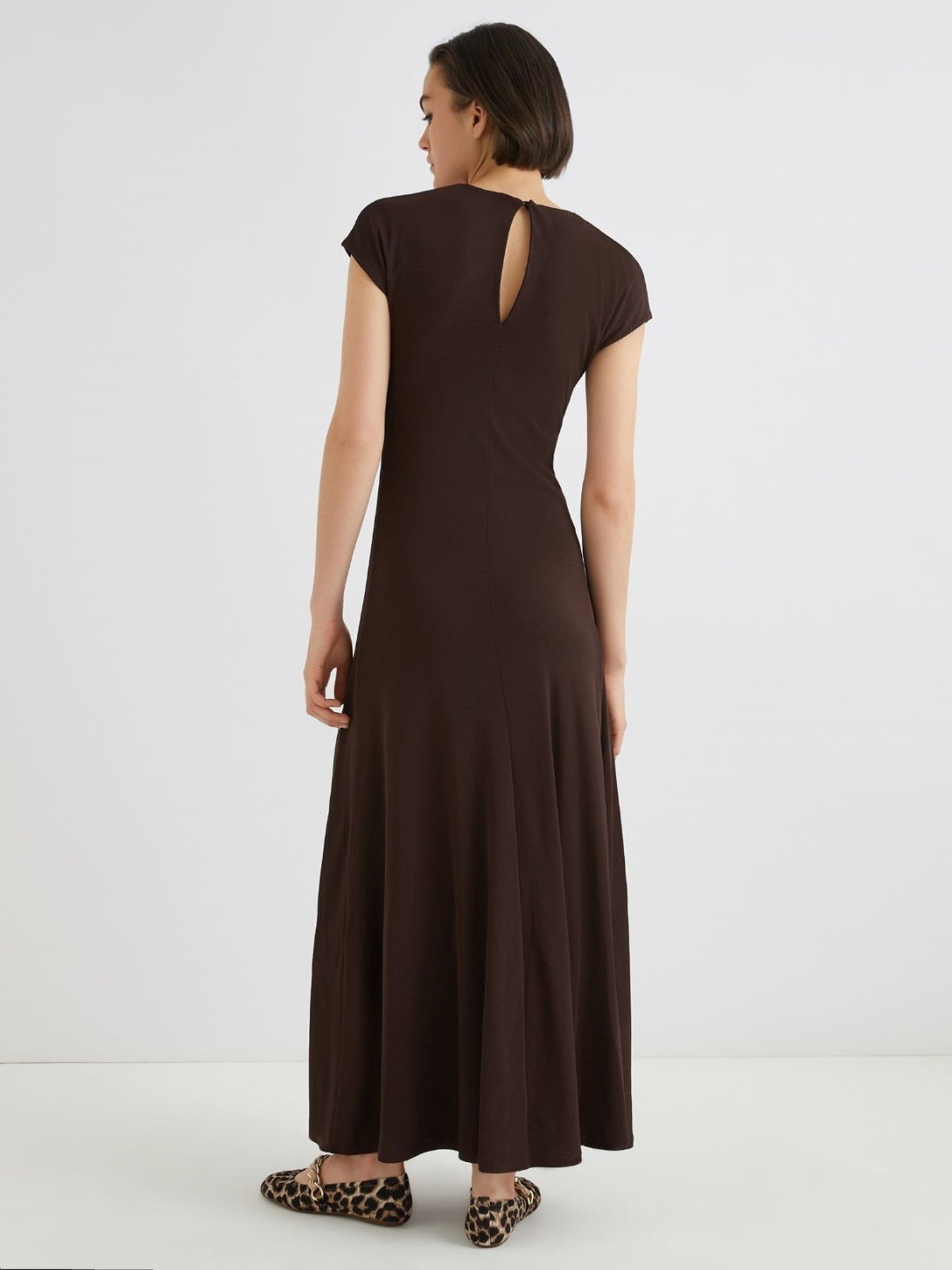Regular price £212.00This long and ultra-feminine tulle jersey dress boasts a feminine fit, thanks to the flared cut at the hem. The essential cap-sleeved bodice offers perfect versatility, and the model can either be worn on its own or as part of a layered styling.