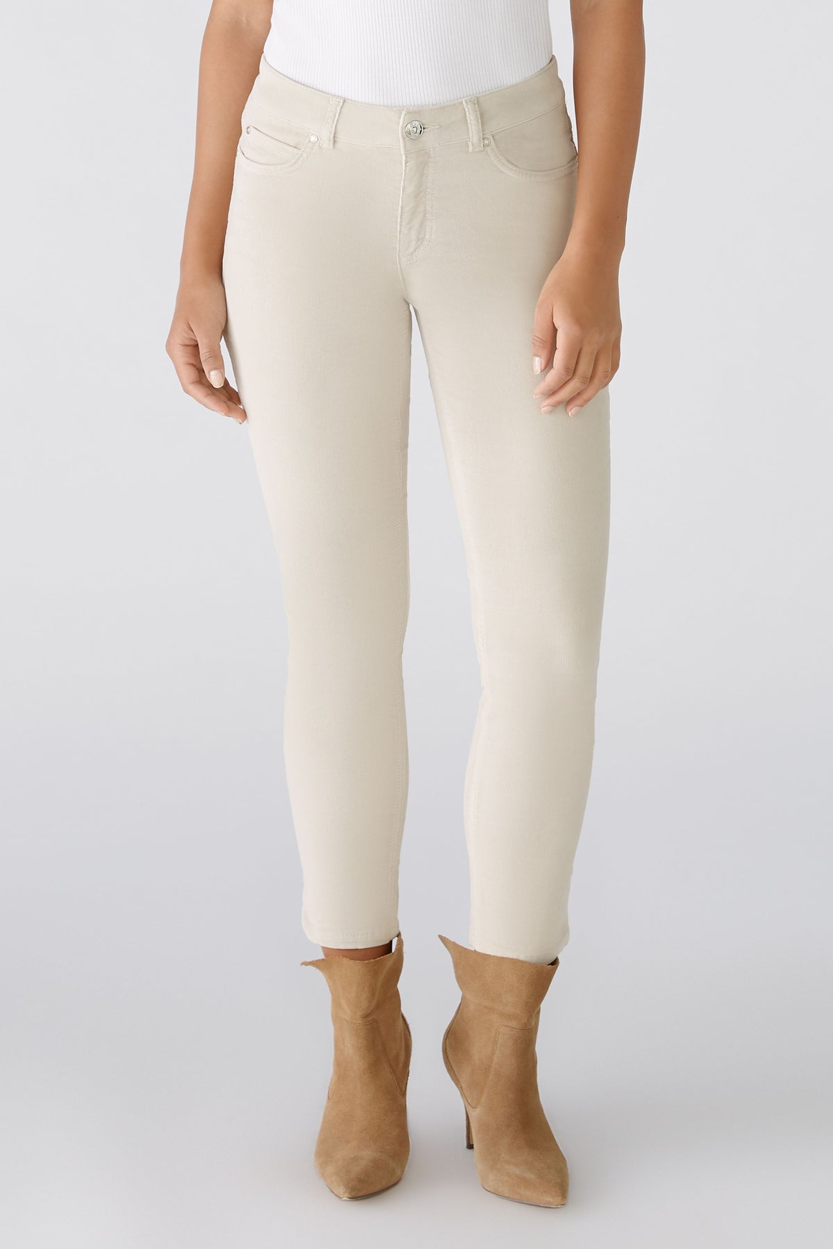 Regular price £129.95The Oui classic baxtor cropped in fine cord and are velvety soft! These trouser feature velvety fine corduroy, super soft cotton stretch quality, slim fit, mid-rise, slightly cropped, zip-Fly Verschluss, belt loops and a classic five pocket pant.