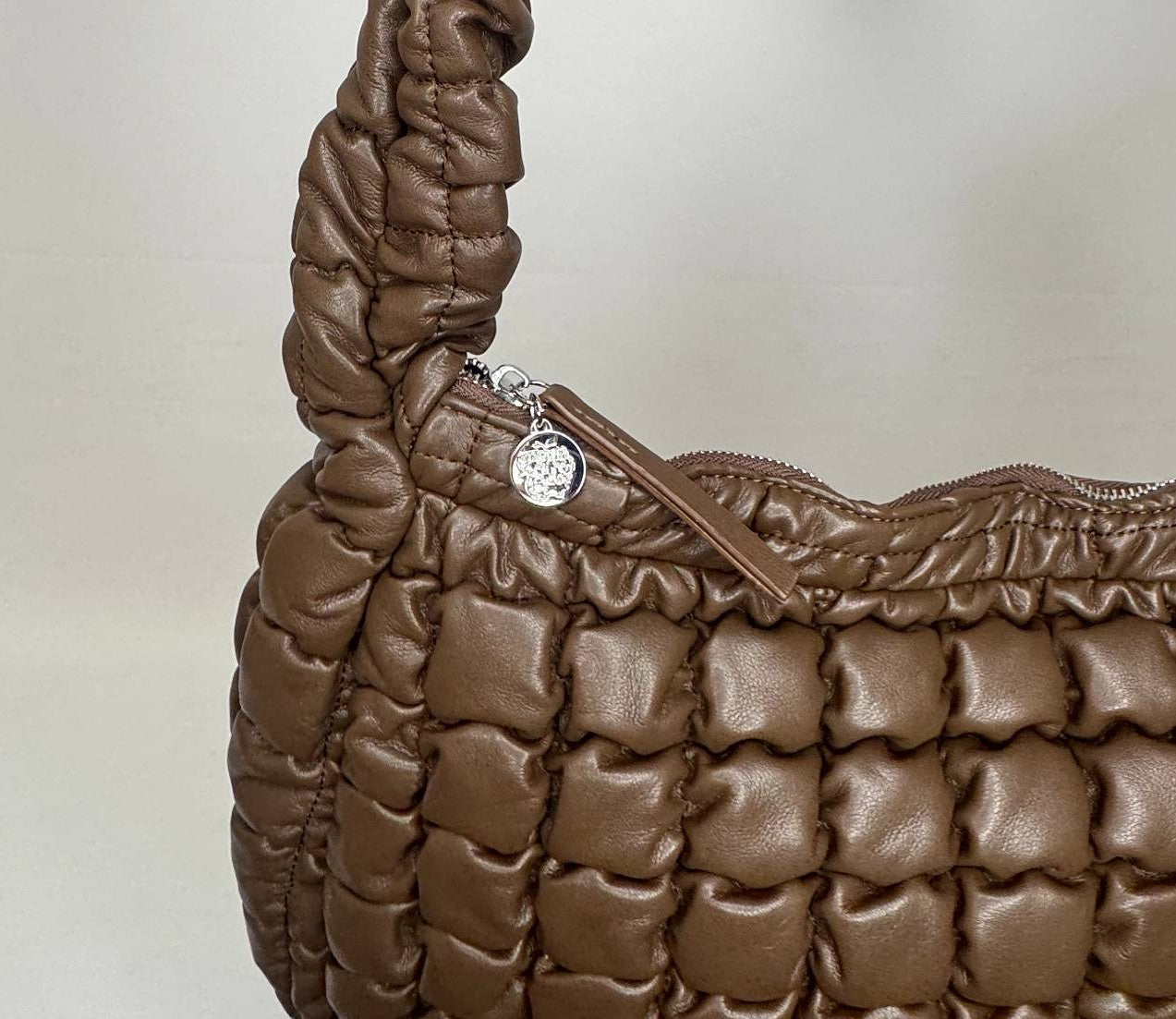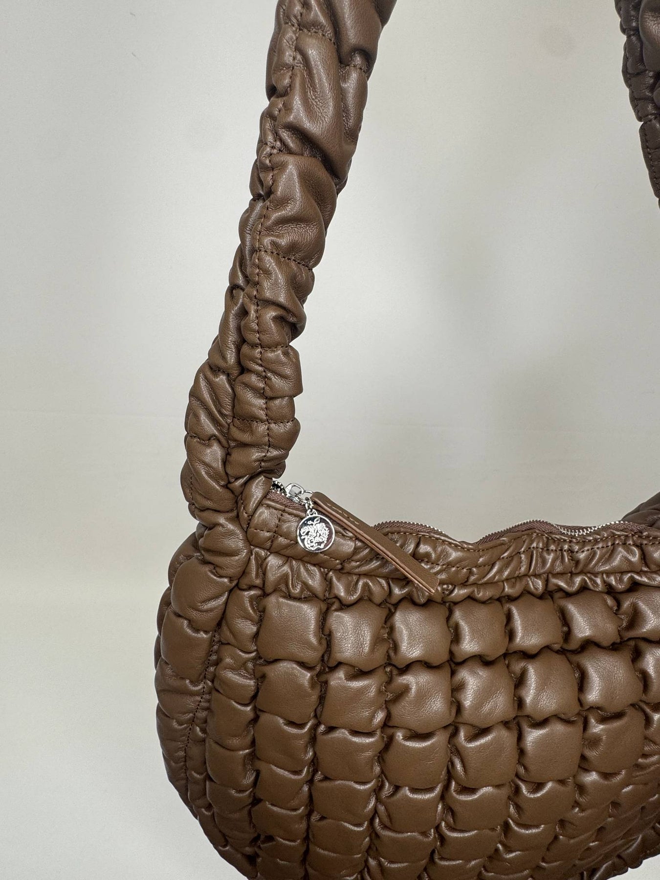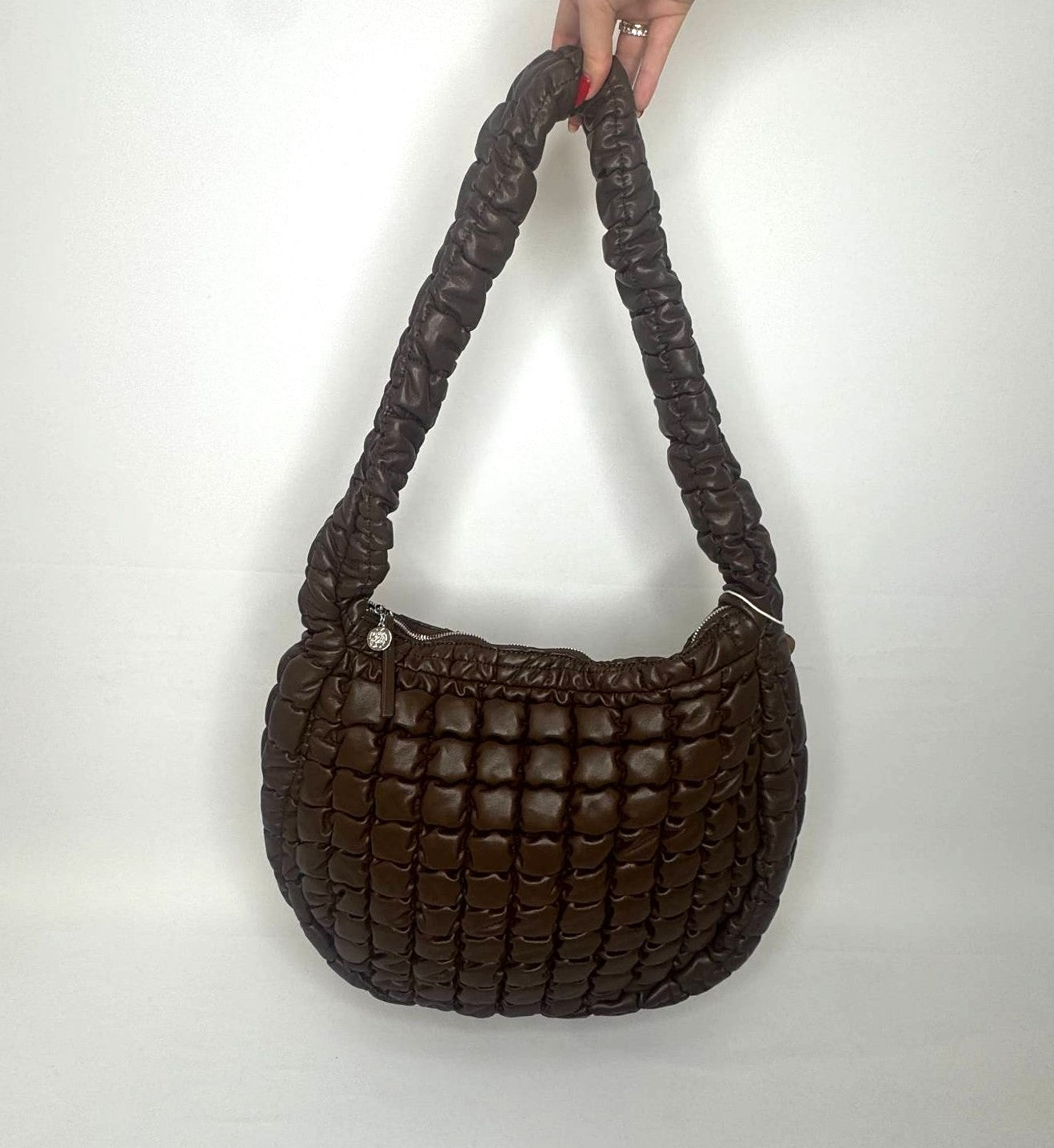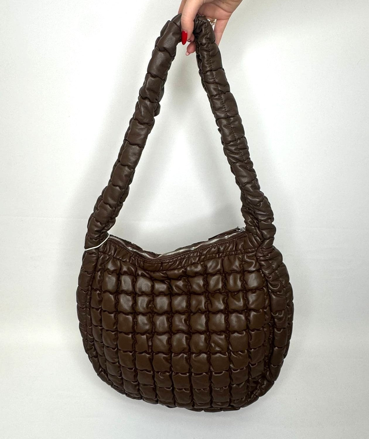 This gorgeous chocolate Apple of Eden puffer shopper bag is such a staple piece in your Autumn/Winter wardrobe this year! Perfect big open bag for all your essentials. Great for work or on the go. Zip open. Super chic!