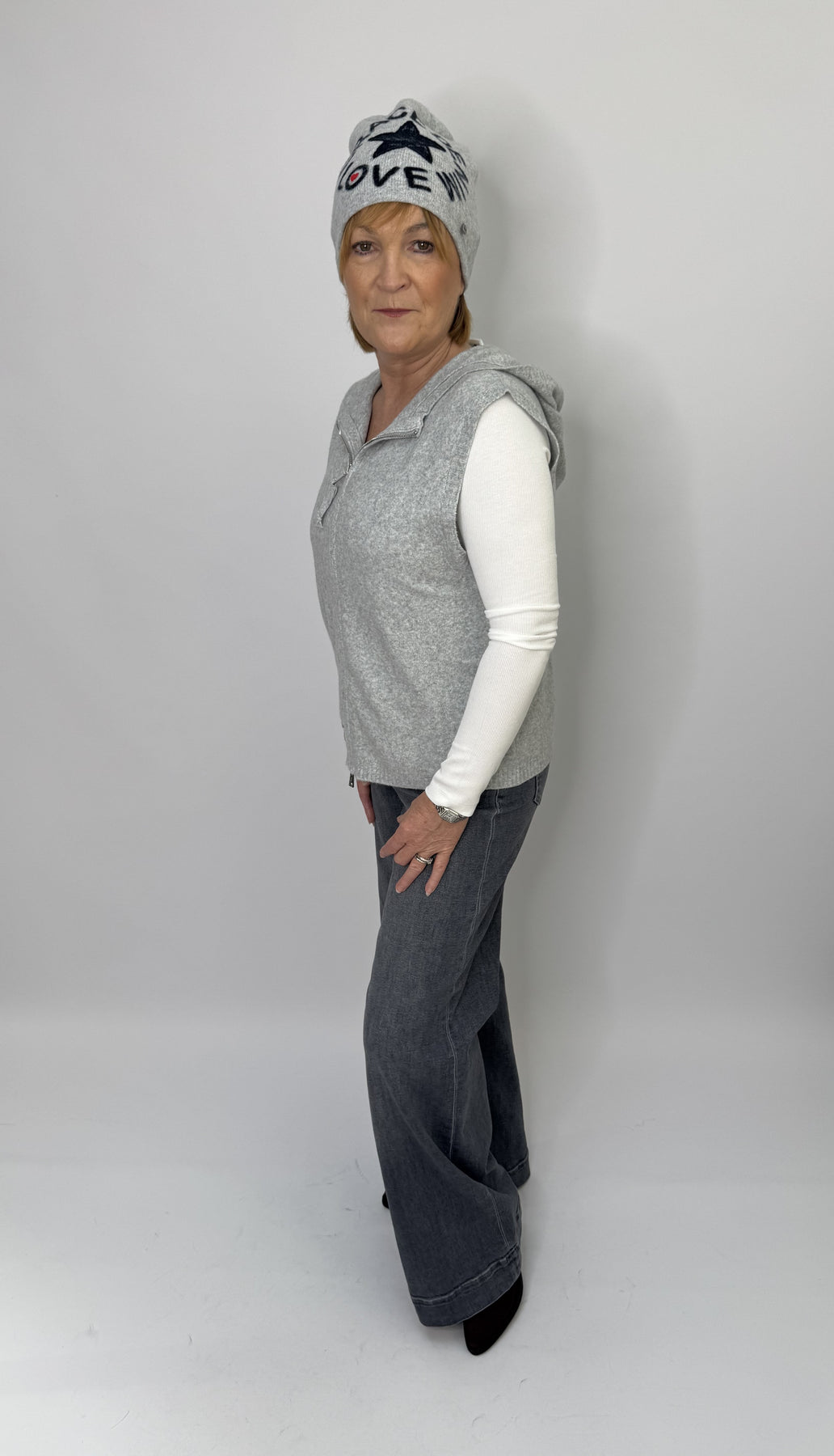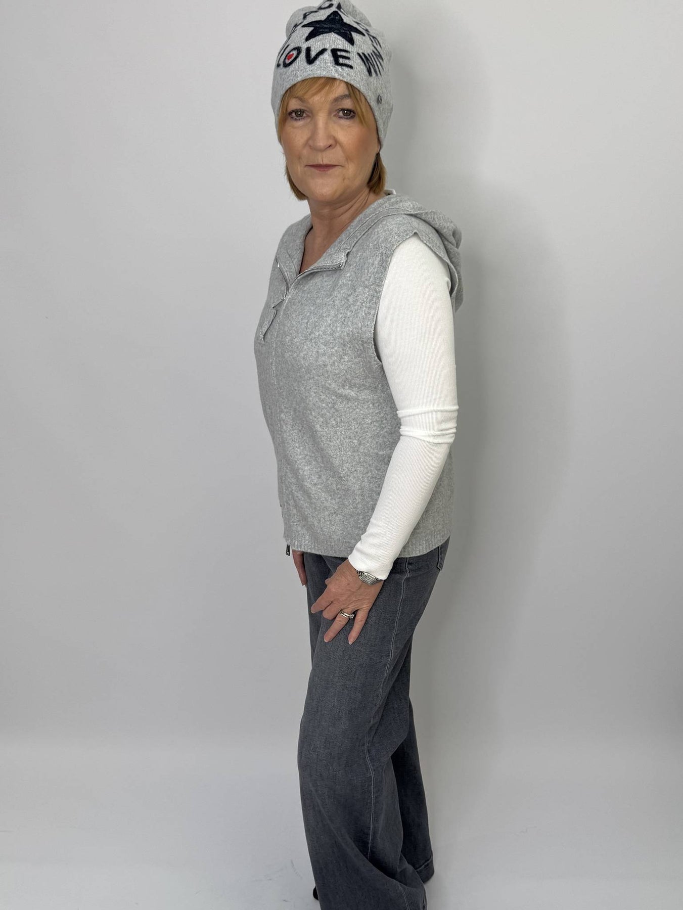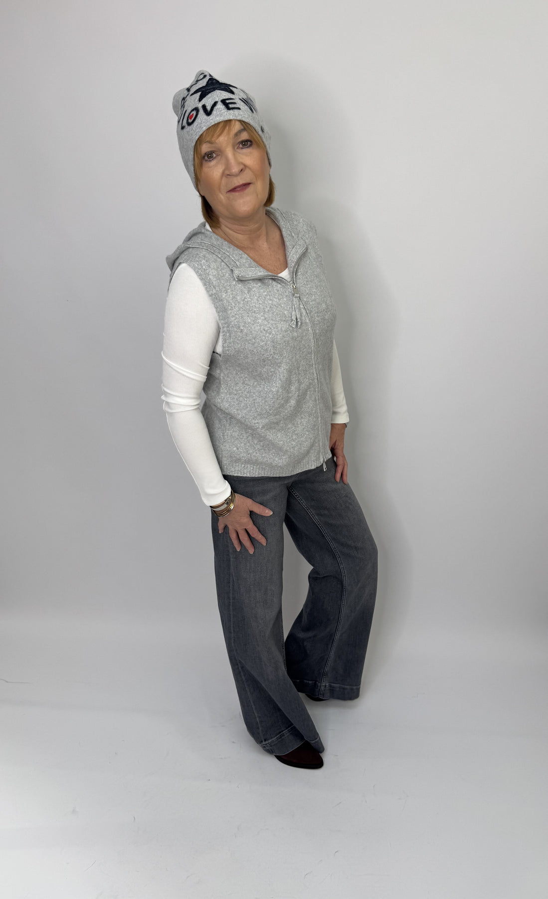 Grace sleeveless, hooded zip-up sweater. Grace was writing on the back. Perfect for layering over a crisp white shirt.