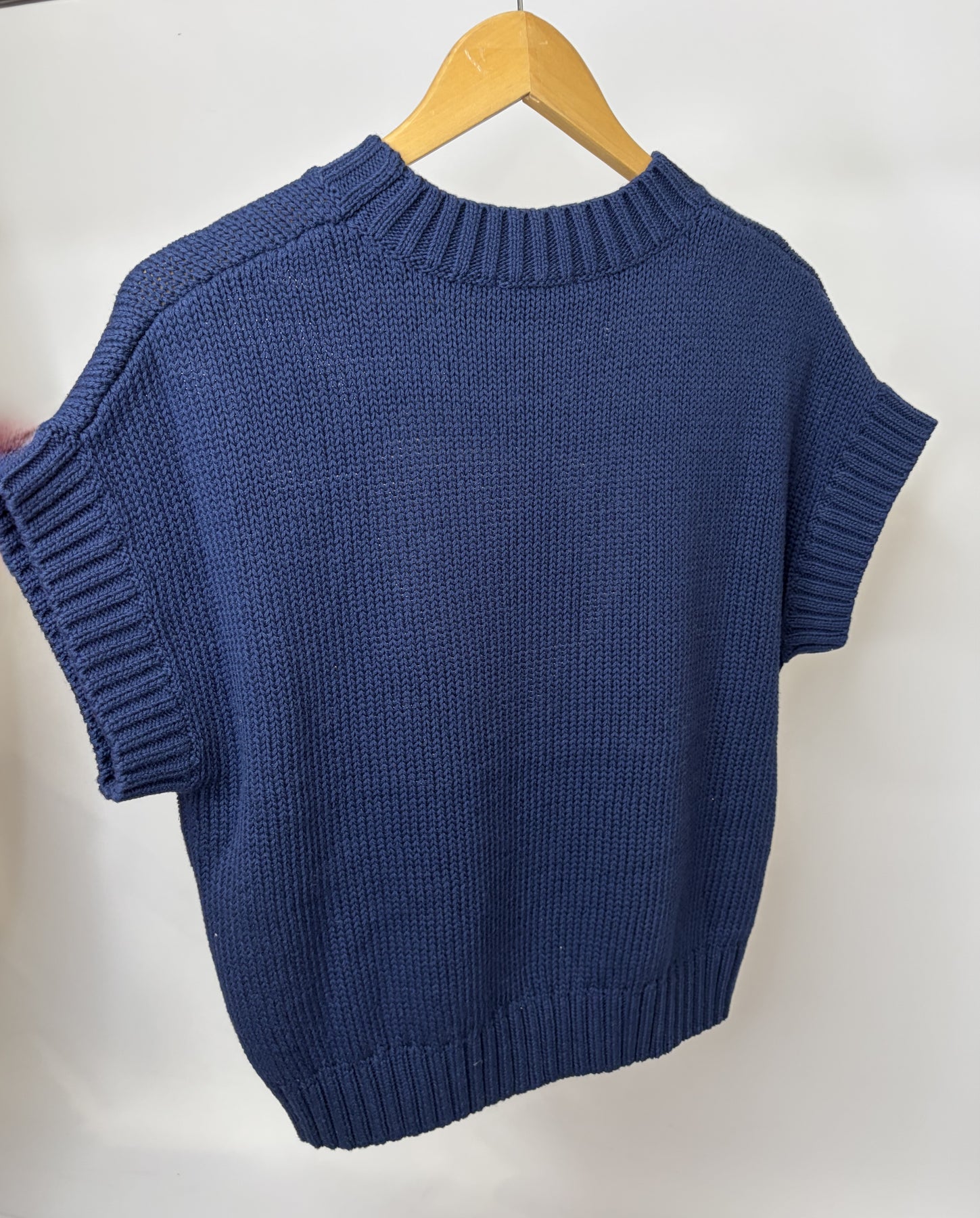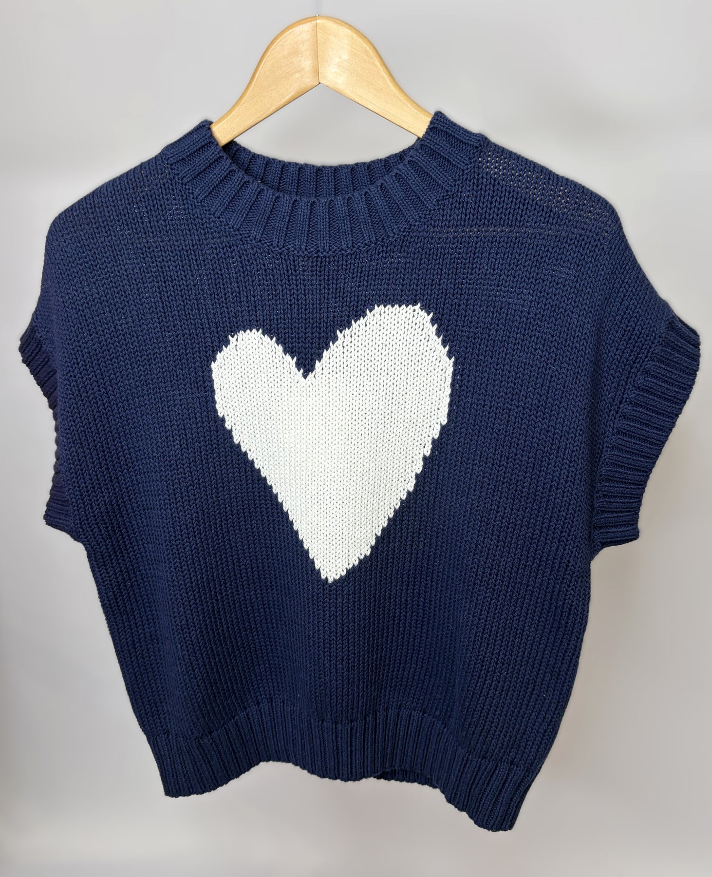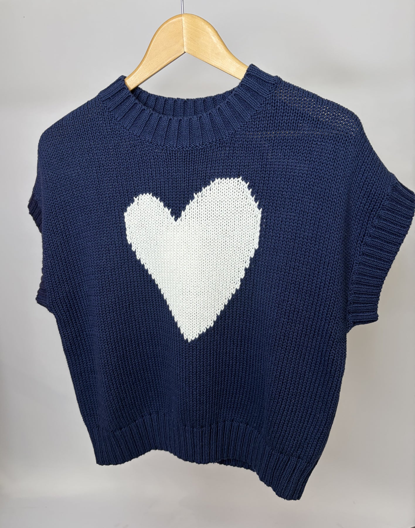 Regular price £124.95This is a gorgeous Jeff navy vest sweater with a white heart on the front. This is a very cute piece, perfect to transition you into your spring wardrobe.