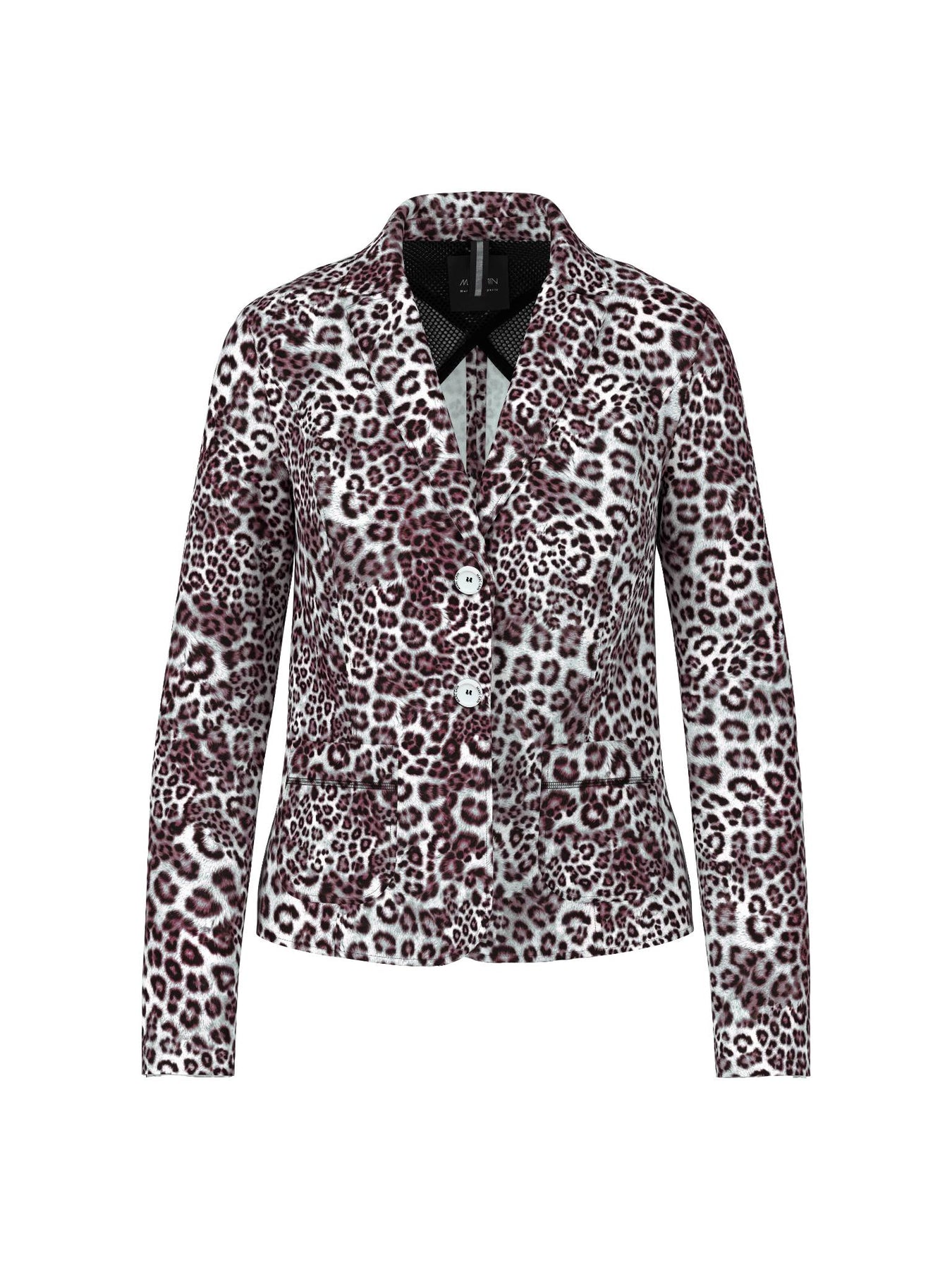 Regular price £365.00Blazer with leopard print, Sporty blazer made from pleasantly soft jersey material. The blazer has a loose, slightly tailored shape. The design features small side pockets and dividing seams. The sleeves are slit. Other classic details include the lapel and the single-breasted buttoning with Marc Cain logo buttons. This blazer is unlined. Fitted, With lapel, Leopard print pattern, Unlined. The model is 179 cm tall and wearing size N3 / UK 12.
