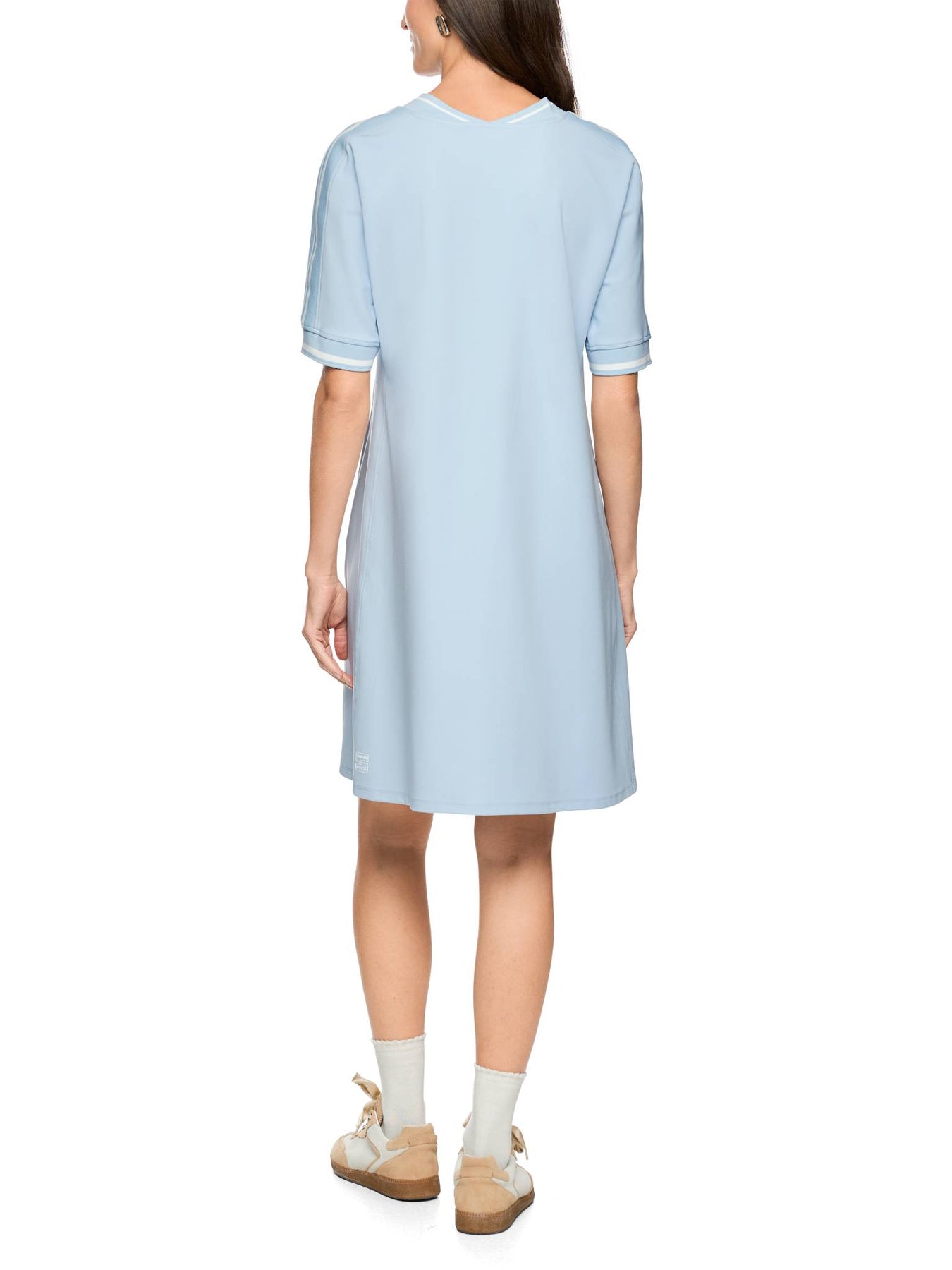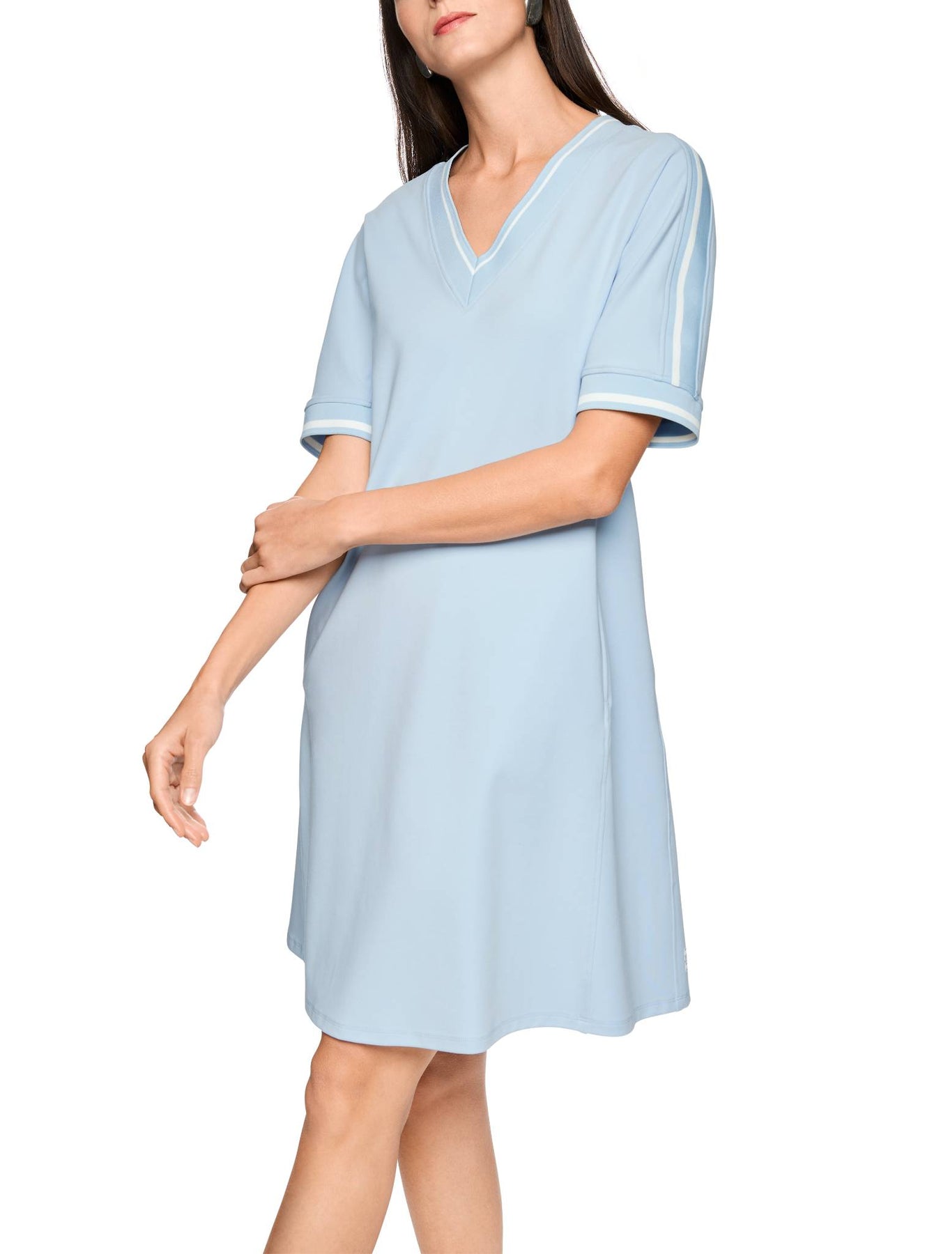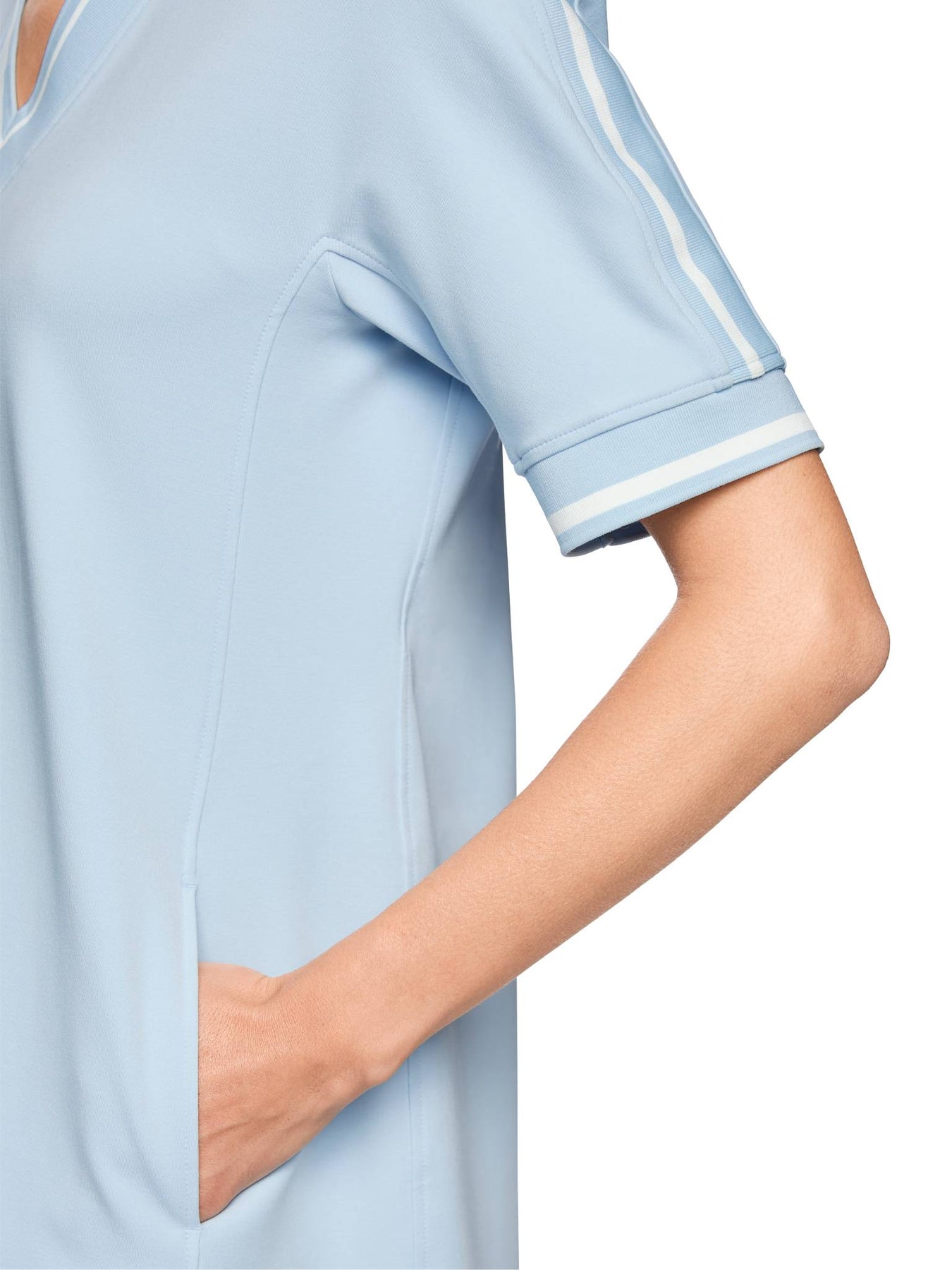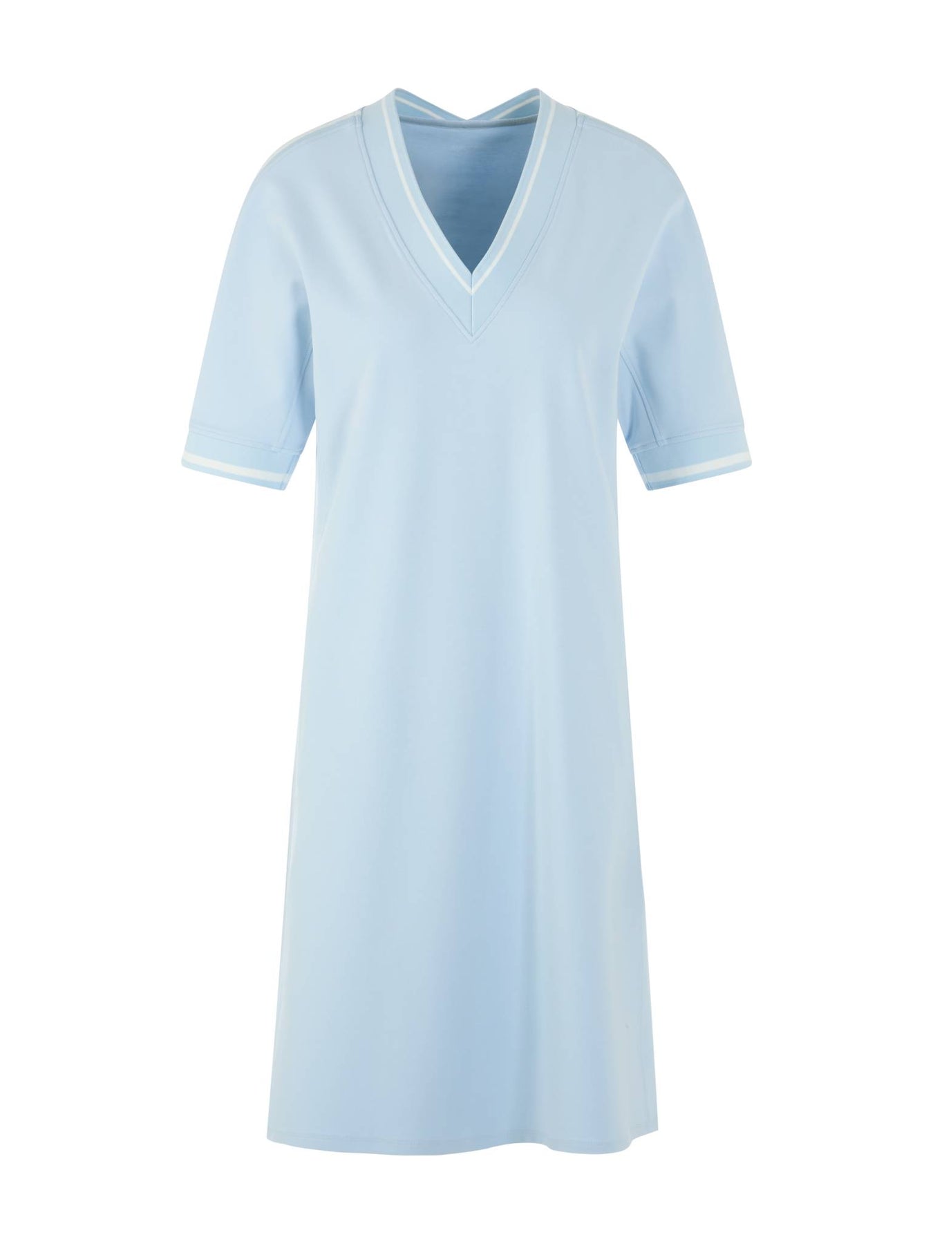 Regular price £275.00This is gorgeous light blue slip on dress. This is perfect if you are looking for dress to slip on and still look great. Which will be perfect for warmer weather. This dress features short sleeves, V-neck line, pockets and sits just above the knee.