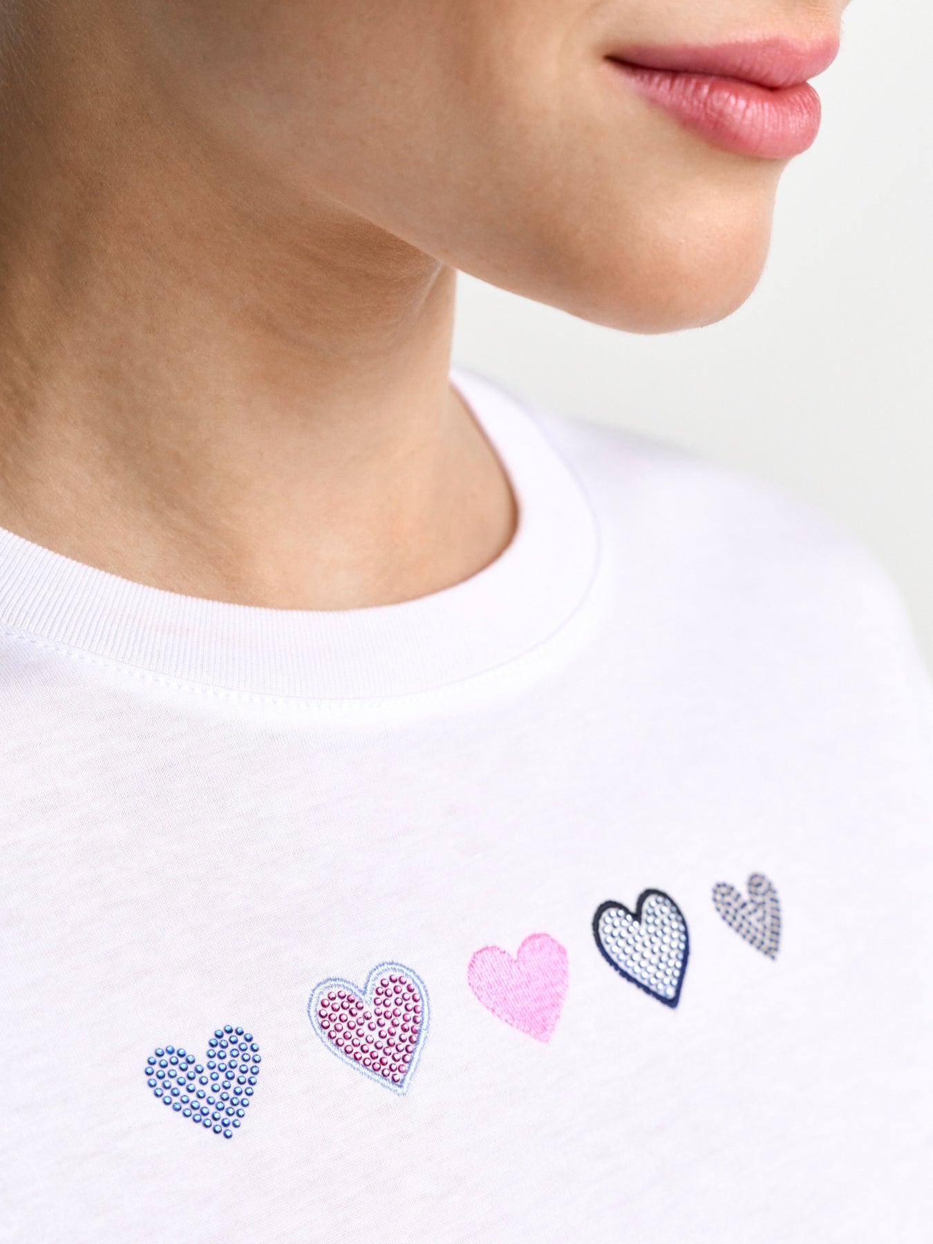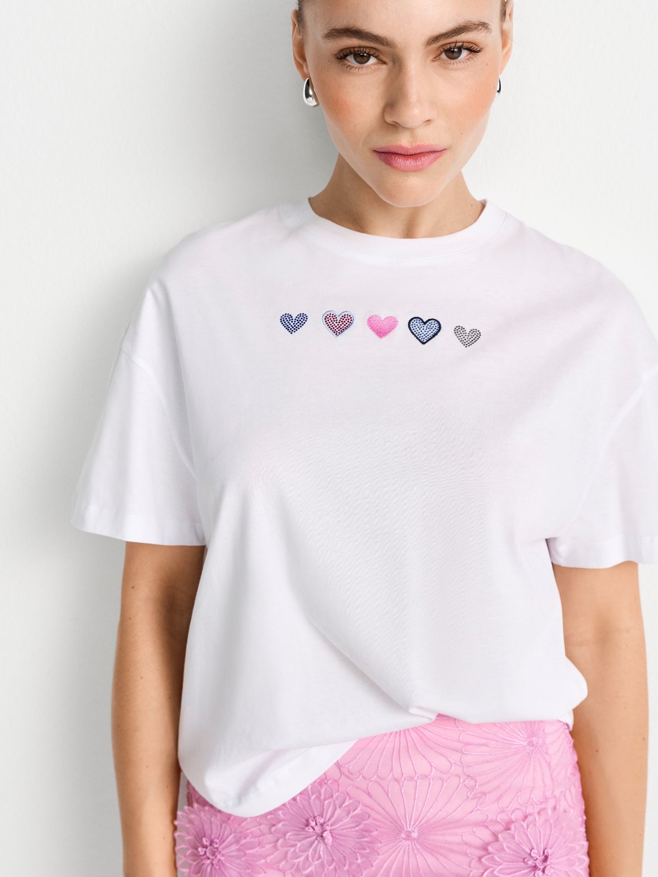 Regular price £52.95This is a lovely white Rich & Royal t-shirt with a heart design on the front. This is the perfect t-shirt if you are looking for a t-shirt with a bit of colour. This t-shirt features a round neckline, short sleeves, a slight boxy fit.