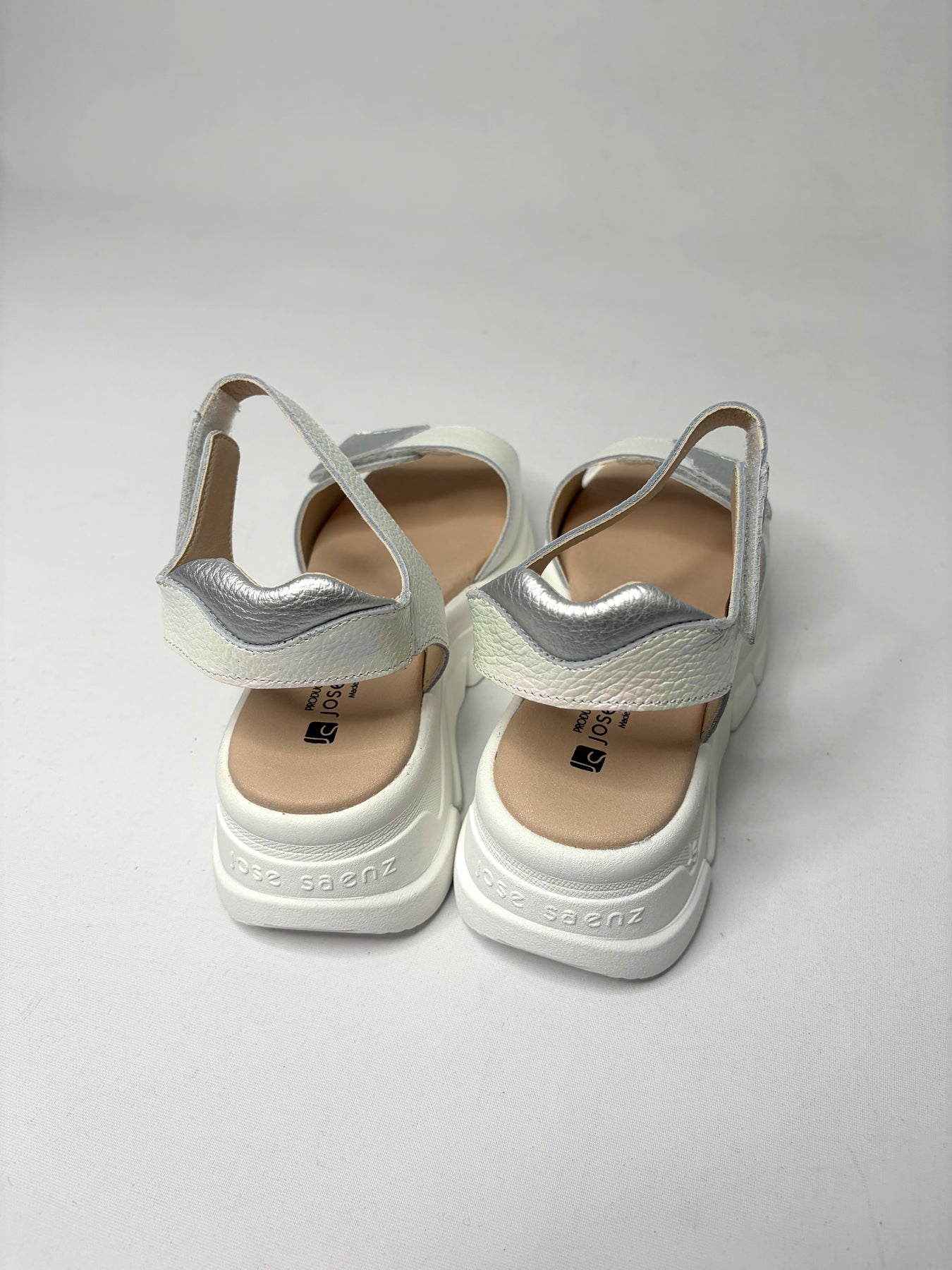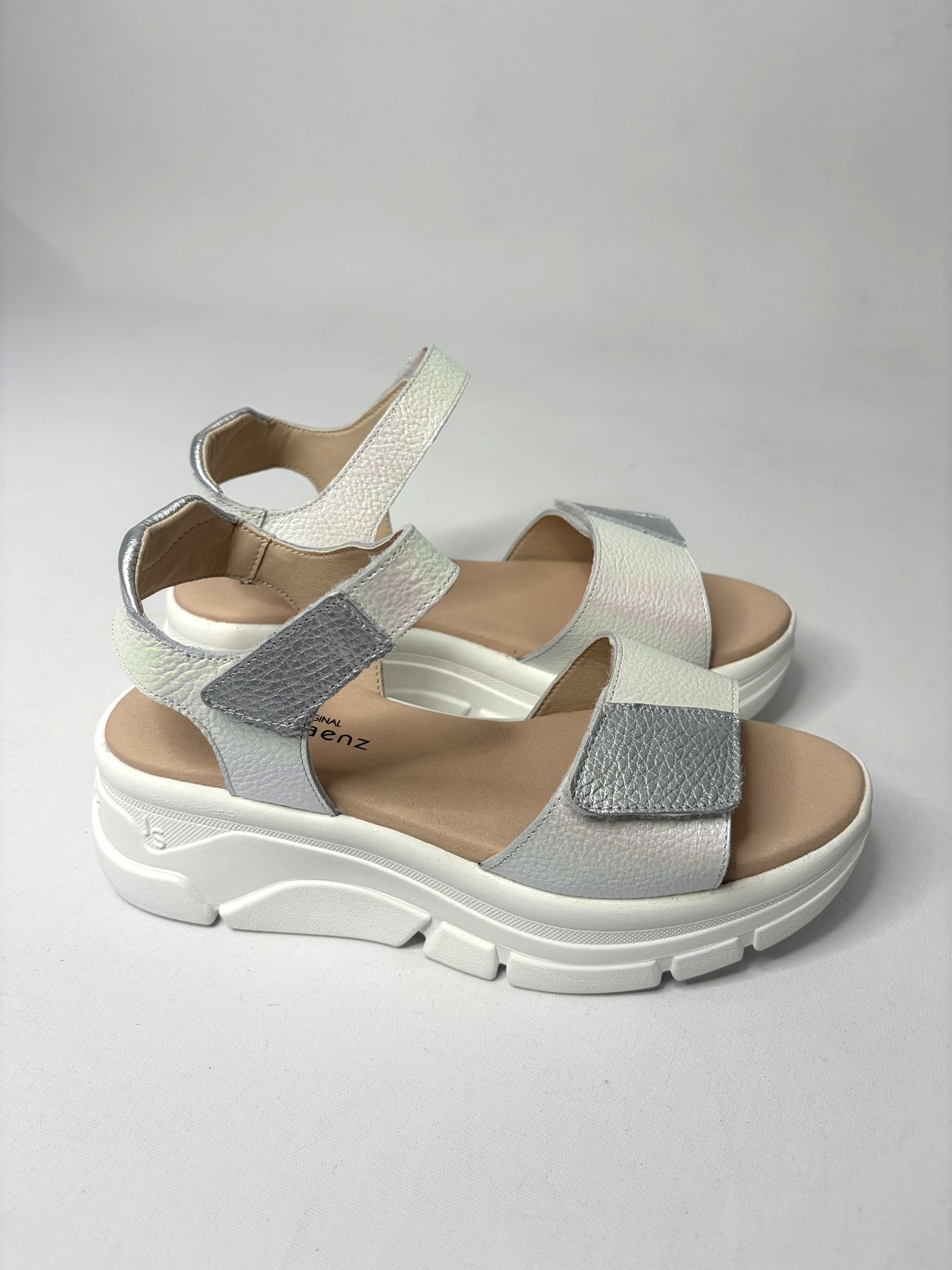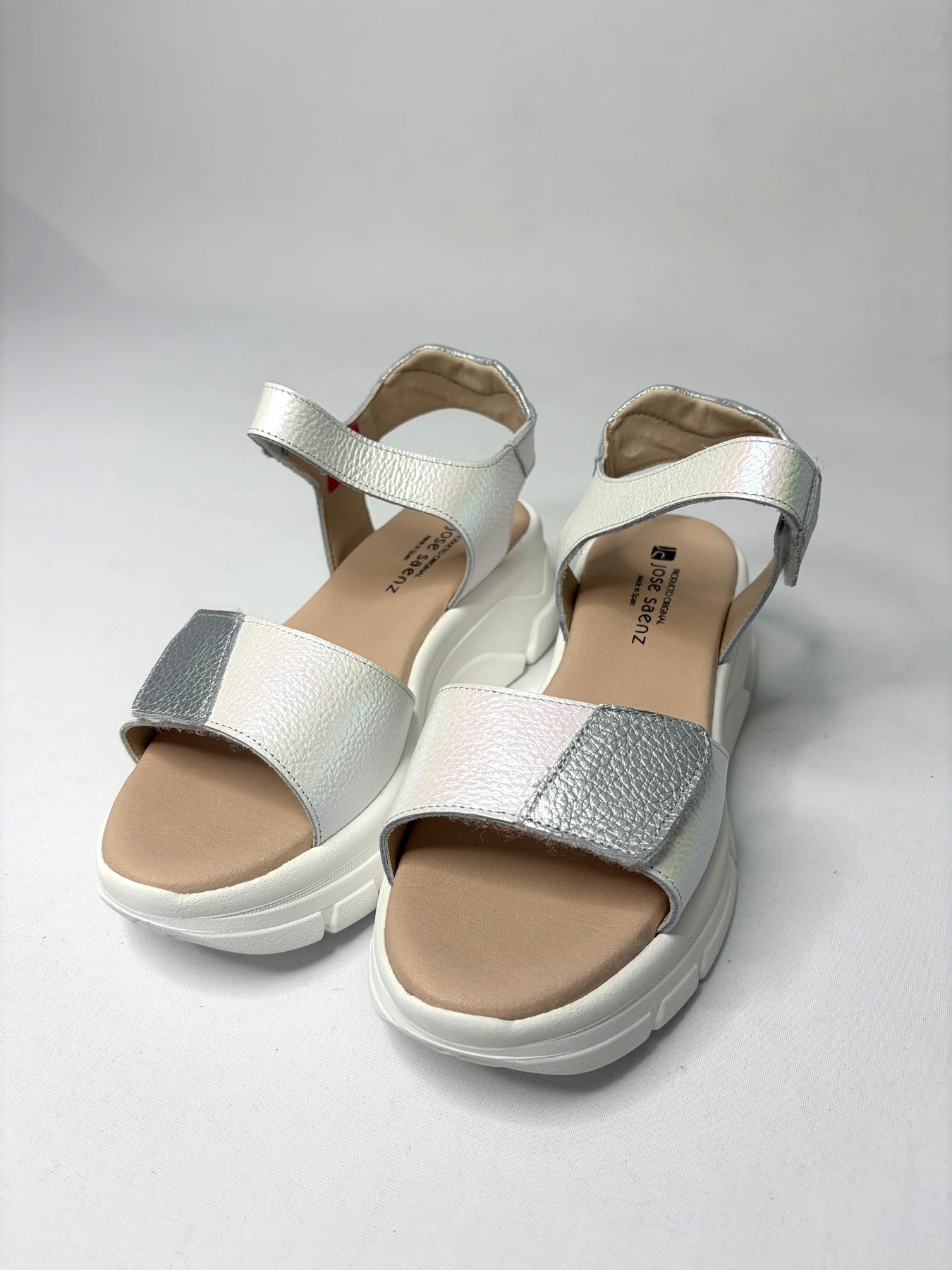 Regular price £105.00This is a gorgeous silver and white strap sandal, these are perfect as they will go with all your spring/summer outfits.