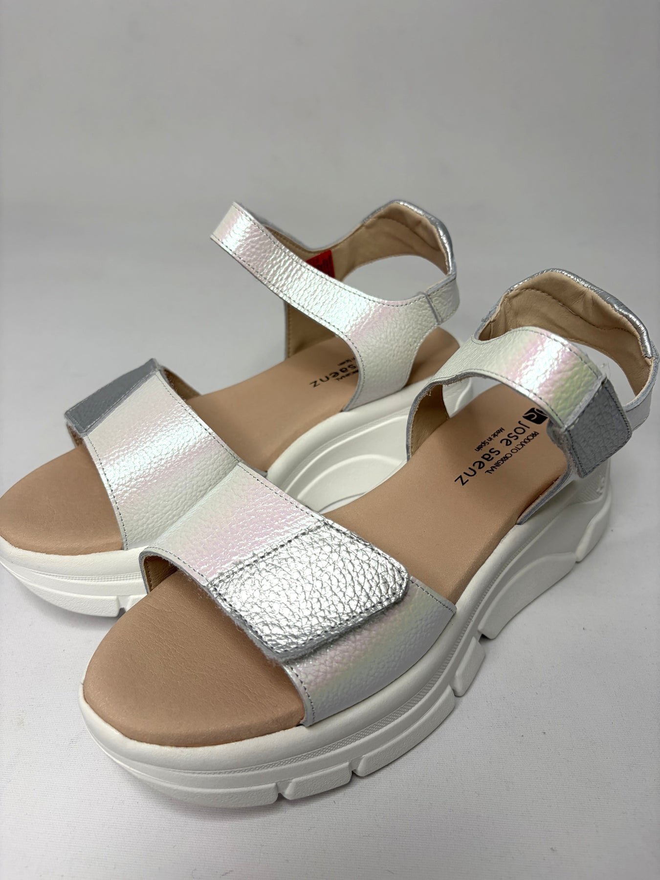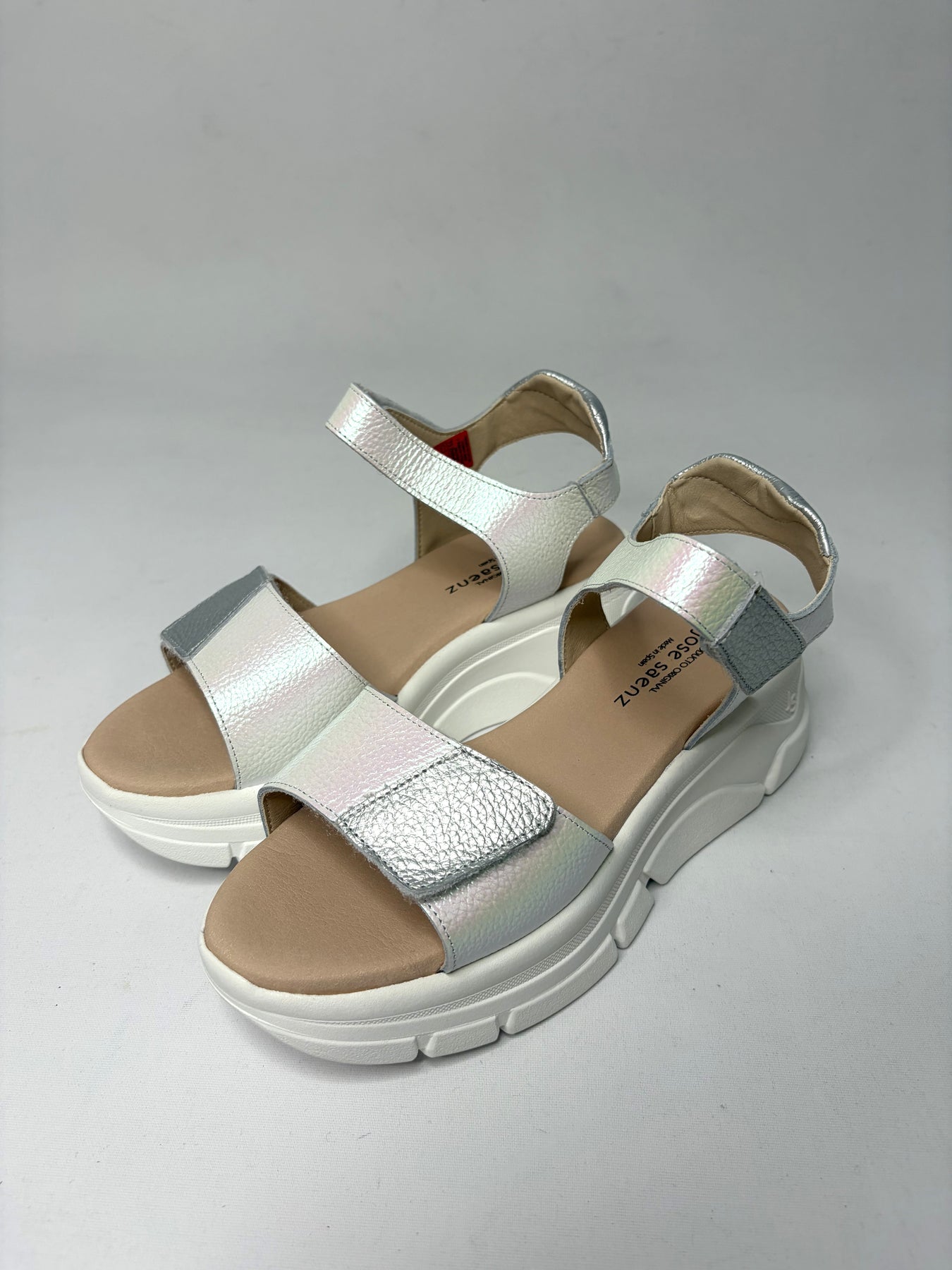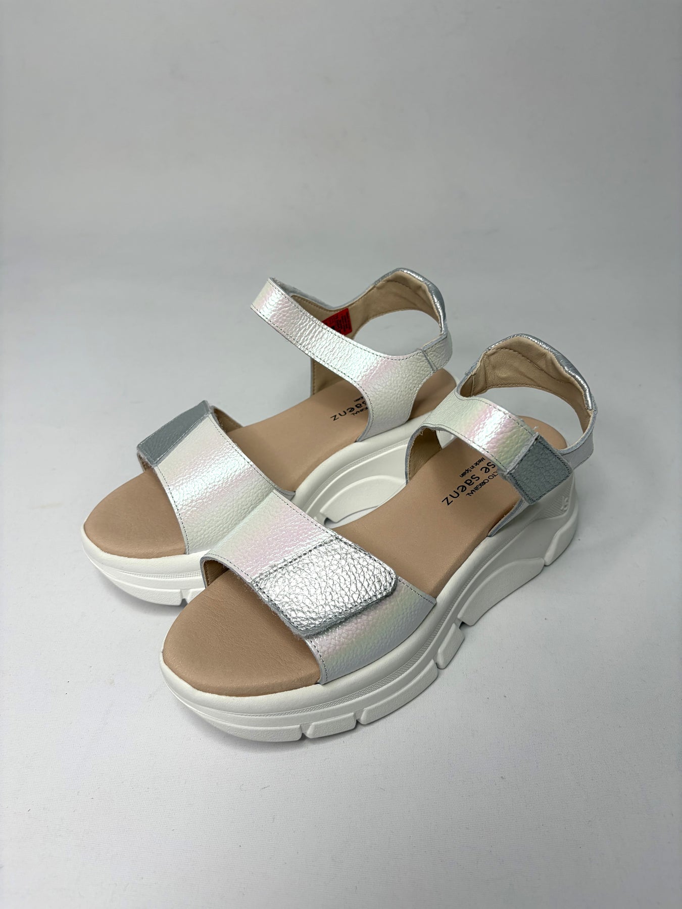 Regular price £105.00This is a gorgeous silver and white strap sandal, these are perfect as they will go with all your spring/summer outfits.