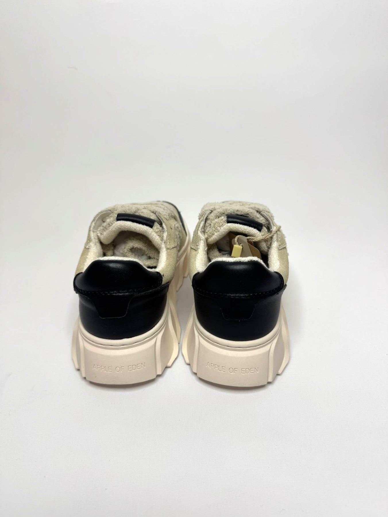 APPLE OF EDEN Black & Cream Fluffy Trainers