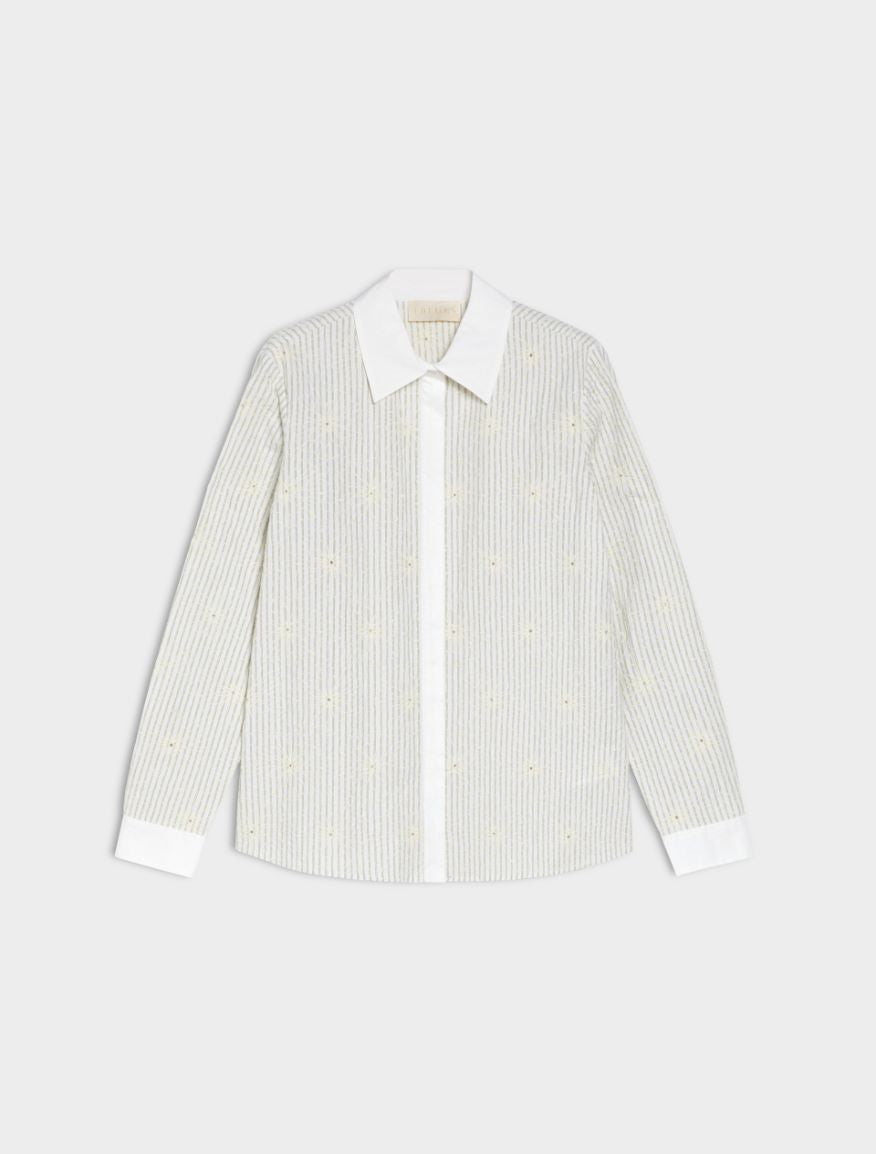 Regular price £135.00This is a fabulous green striped shirt with embroidered flowers throughout the shirt. This shirt is perfect if you are looking for a shirt with lots of detail to add to an outfit. This shirt features , embroidered cotton poplin shirt, straight fit, collar and long cuffed sleeves, button fastening and regular cut