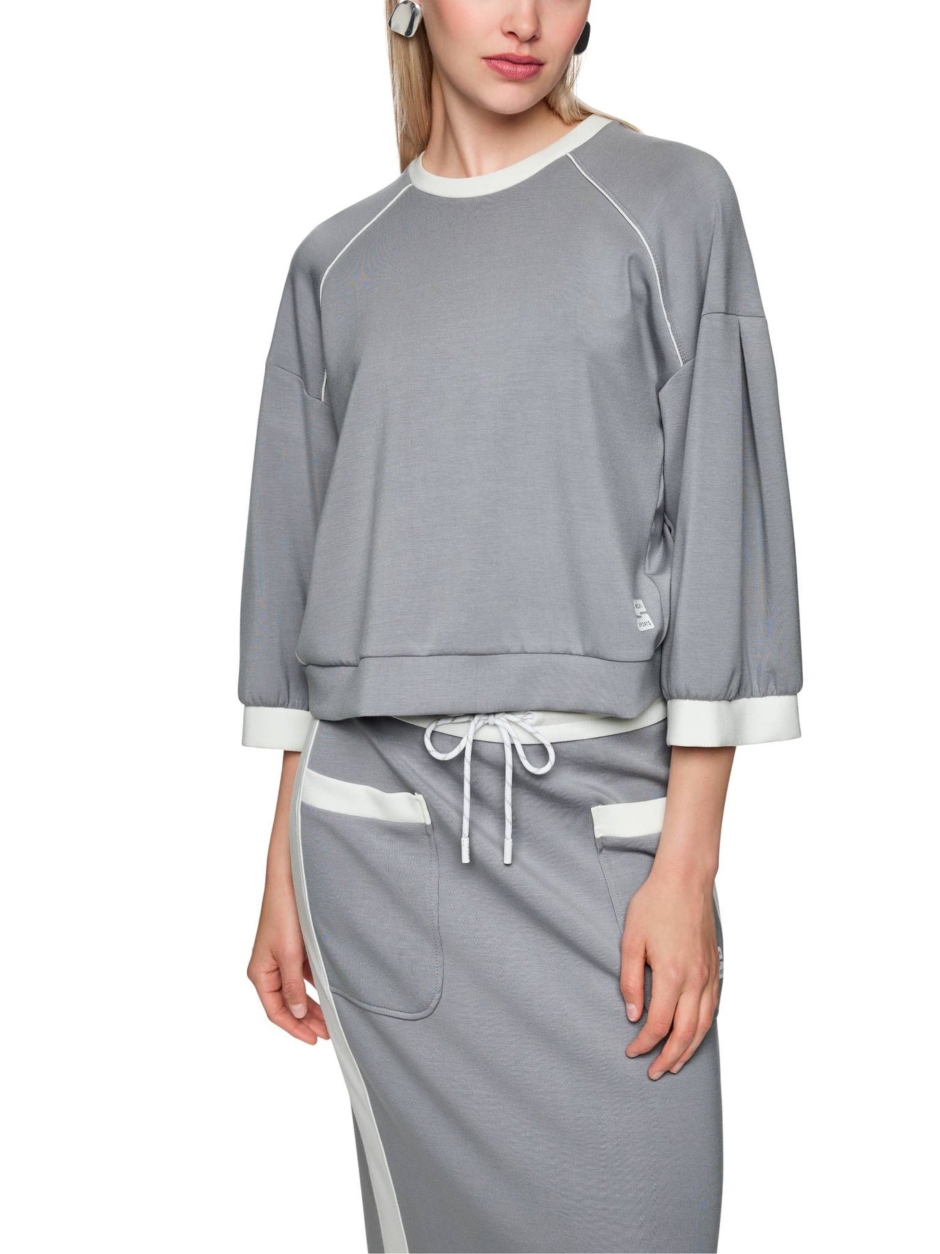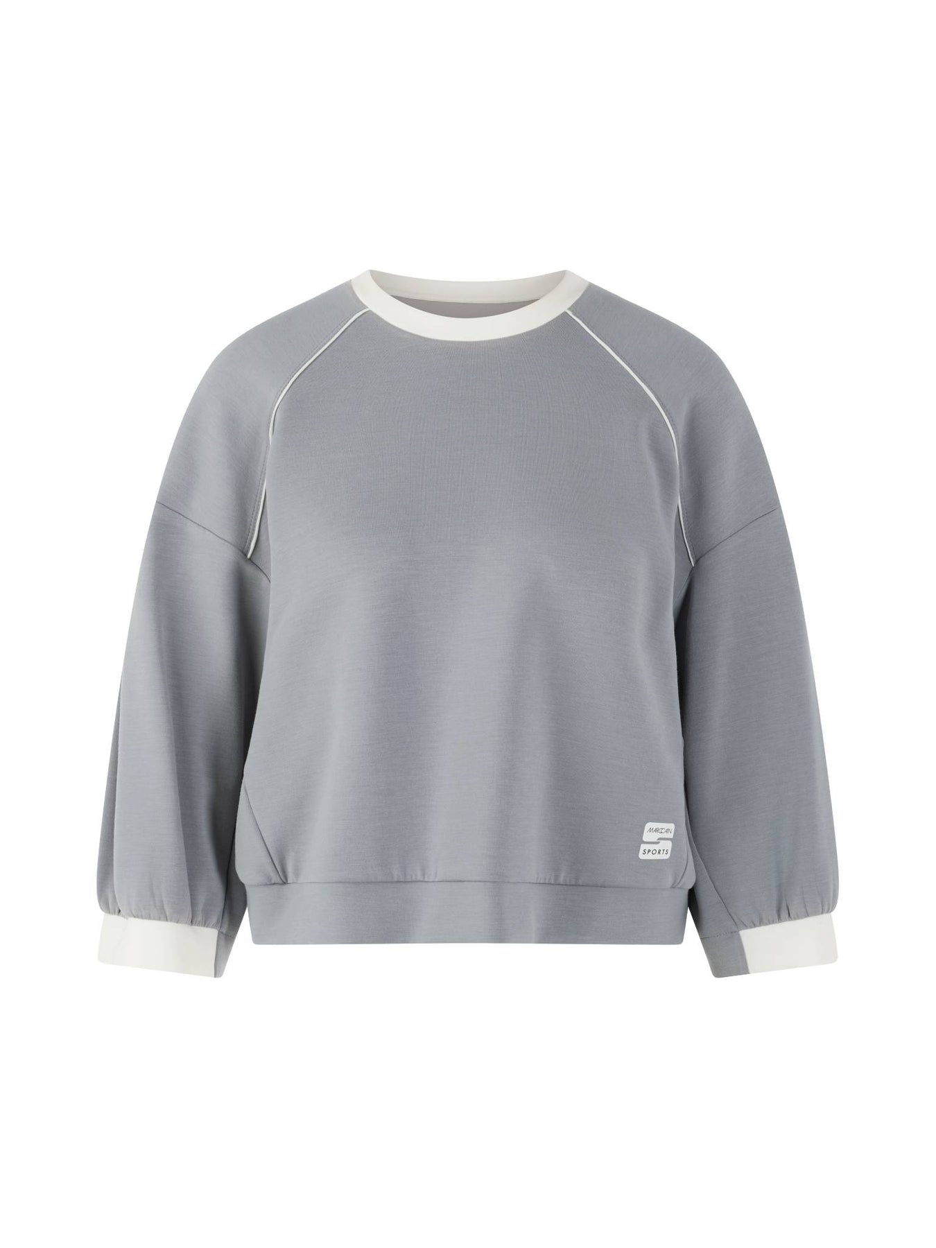 Casual sweatshirt, This sweatshirt impresses with its ultra-soft material blend, which feels pleasantly soft against the skin. It has a loose fit and wide sleeves, which are slightly cropped to a casual 3/4 length. The boxy cut and pleats give the sleeves a balloon-like effect. The shoulders are dropped and the sweatshirt is embellished with contrasting stitching and a Marc Cain Sports logo. The perfect companion for relaxed days. Loose cut, 3/4 sleeves, Contrast stripes, Soft feel. The model is 179 cm tall and wearing size N3 / UK 12.