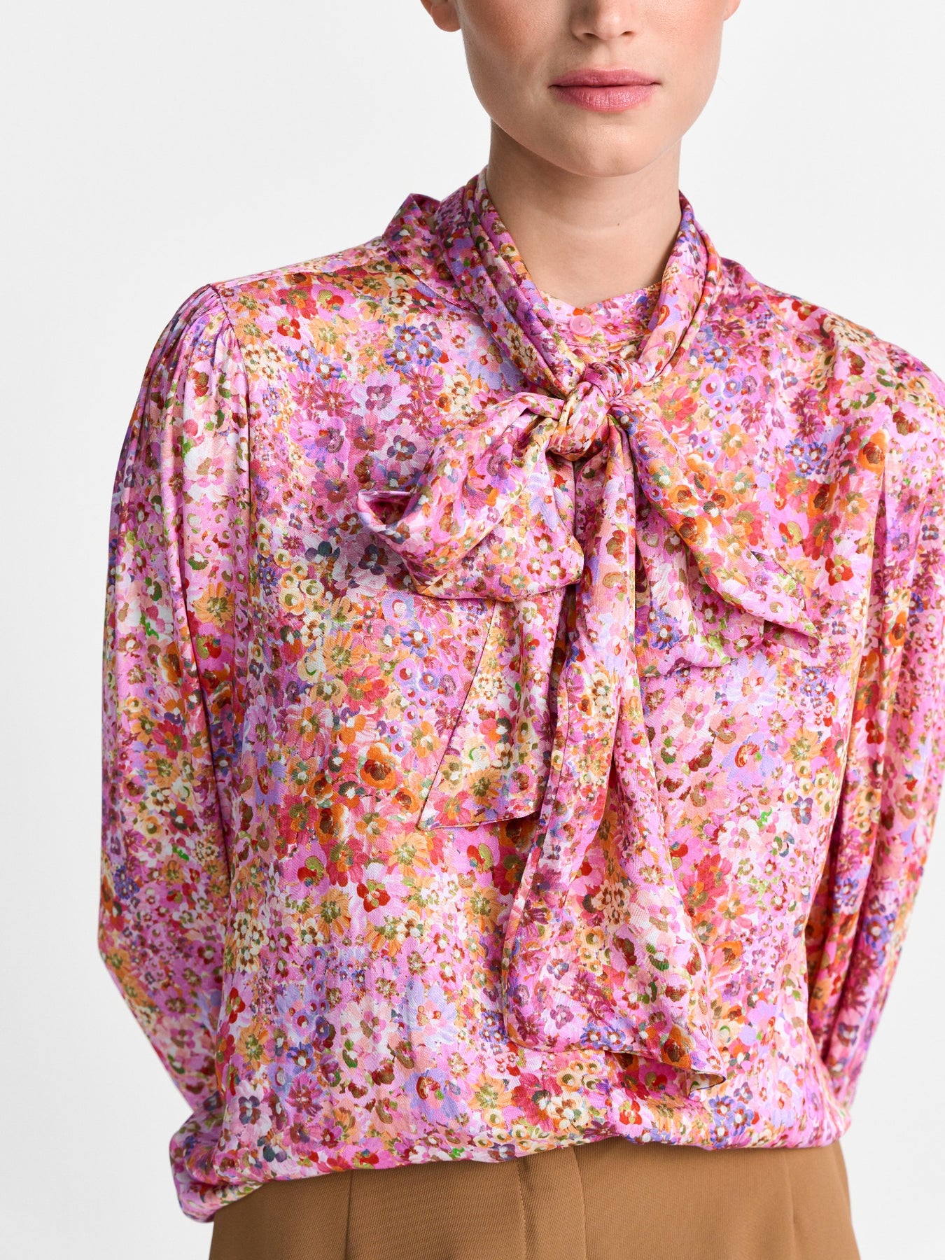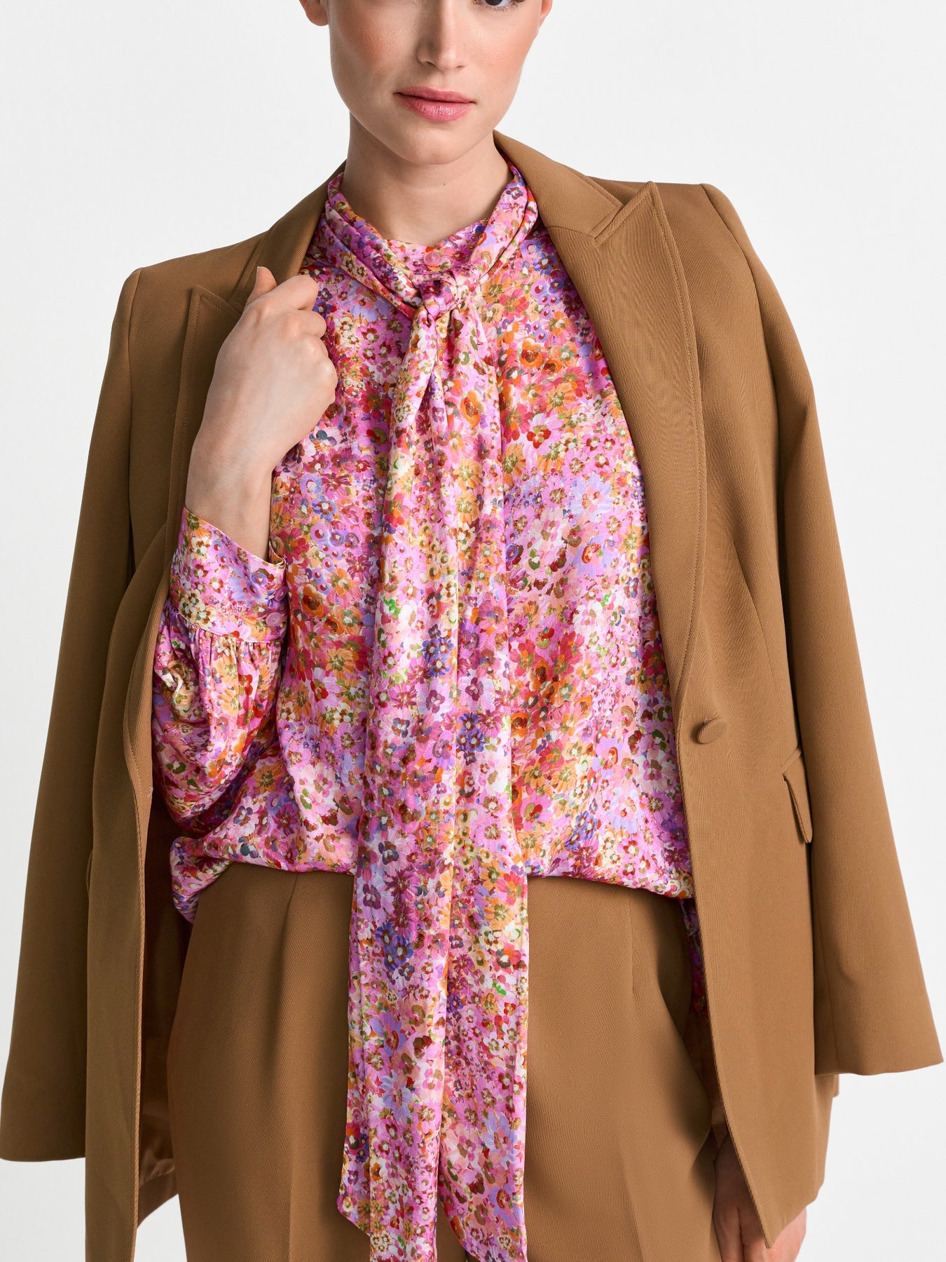 Regular price £159.95This is a stunning pink floral blouse with a bow. This is a great blouse to add colour to an outfit. This blouse features a bow tie, long sleeves, flowy style, buttons to fasten and regular fit.