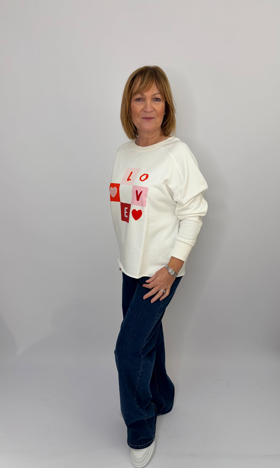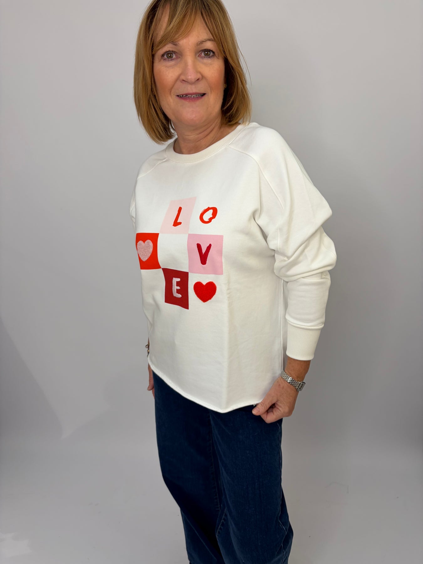 Regular price £96.00This is a cute little LOVE sweater, beautiful white with the detail on the front, which looks good.