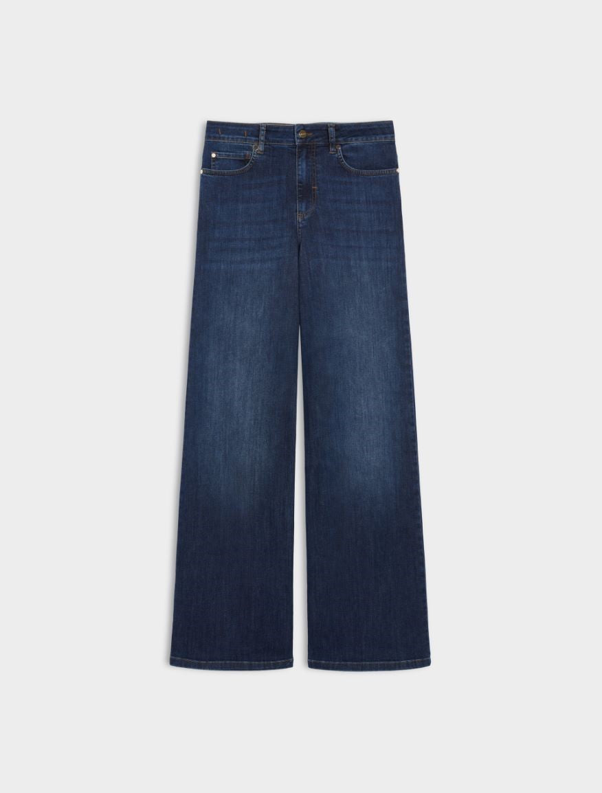 These are a lovely pair of navy jeans in a fabulous wide leg style. Wide-leg cut and maximum versatility: the perfect base for your daytime looks. These jeans feature a stretch cotton denim jeans, fly-covered zip and button fastening, five pockets and wide-leg cut.