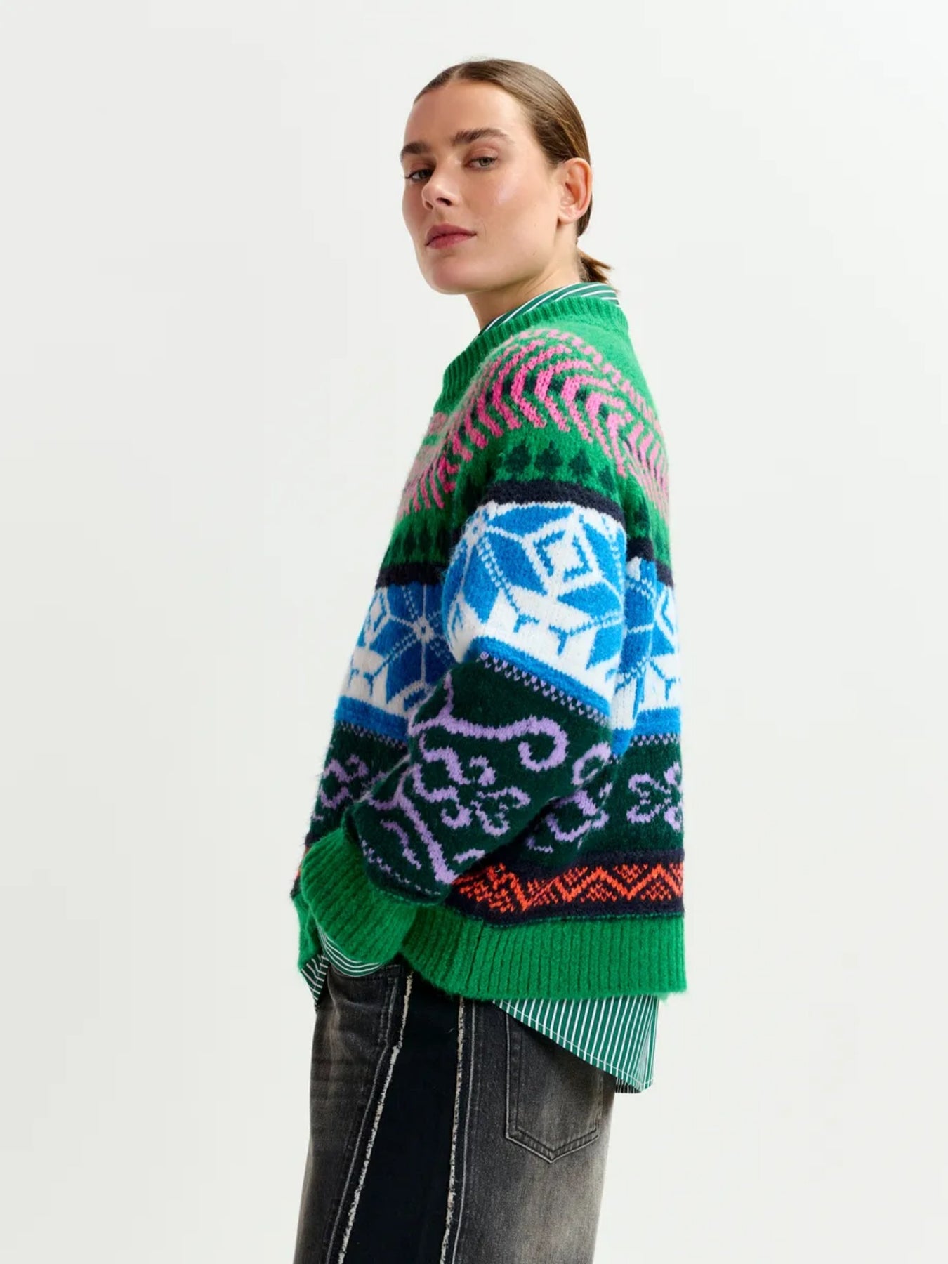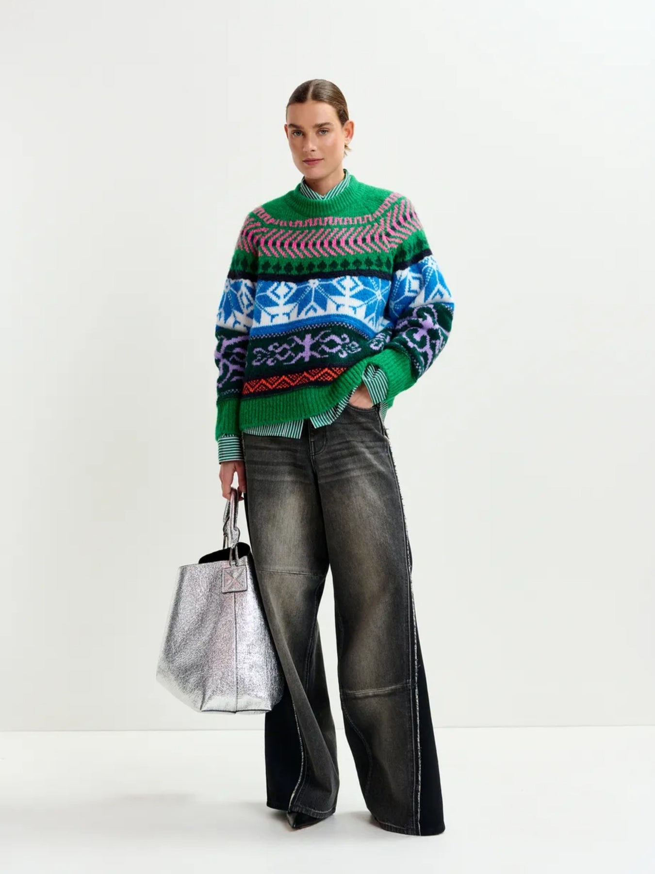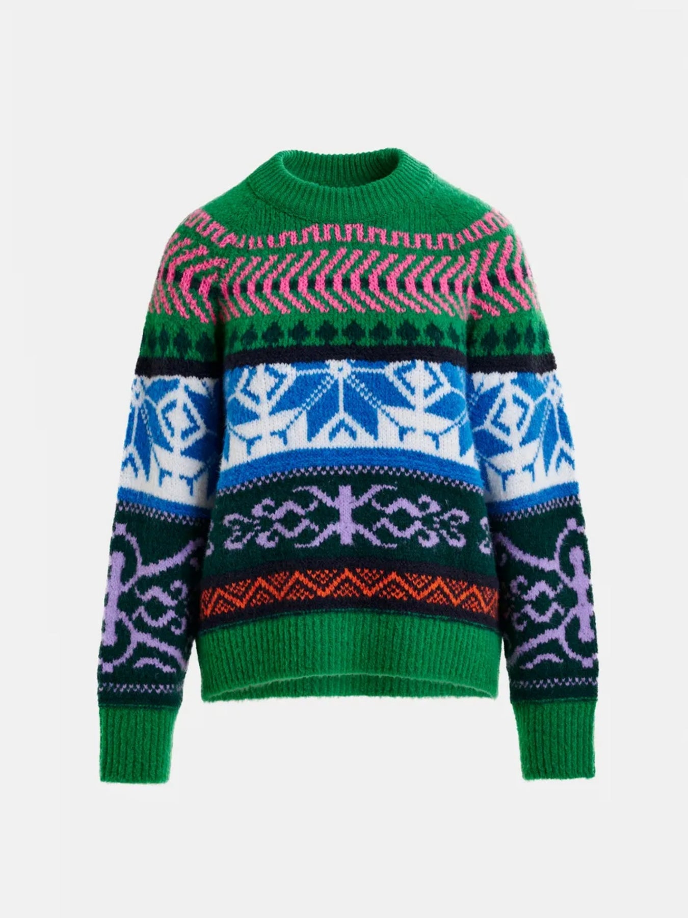 Brighten up your wardrobe with this eye-catching jacquard sweater, crafted in a mélange knit for cozy warmth and rich texture. Designed with a relaxed fit and a modern boxy cut, it offers effortless comfort. The bold, multicolour pattern adds a playful twist, while ribbed trims at the collar, cuffs, and hem provide a clean, structured finish.
