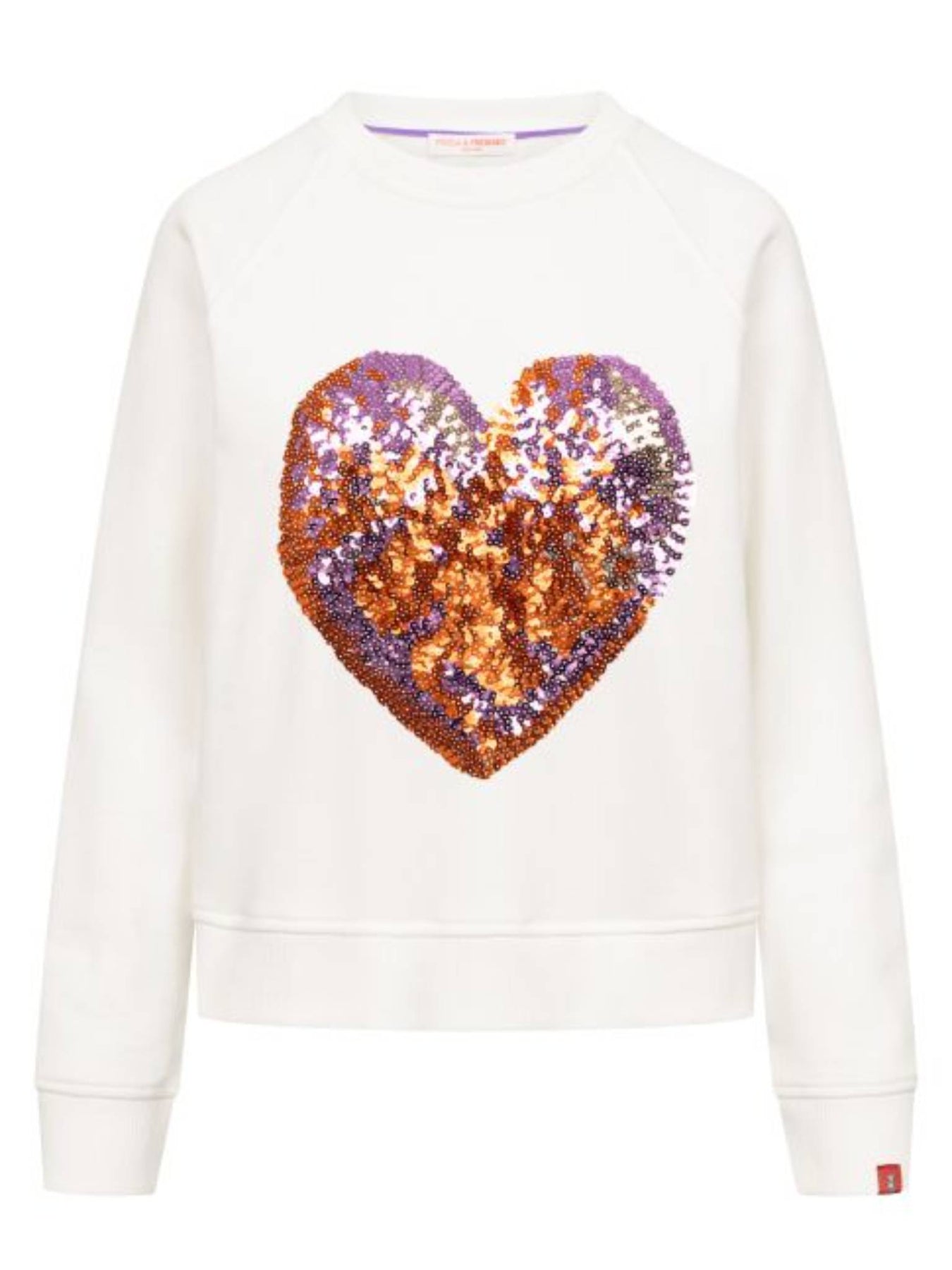 Regular price £104.95This beautiful Frieda & Freddies sequin heart white jumper. Super cute under a navy or beige jacket with denim jeans. Super chic!