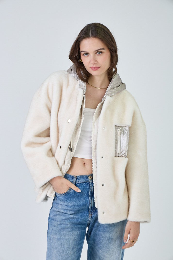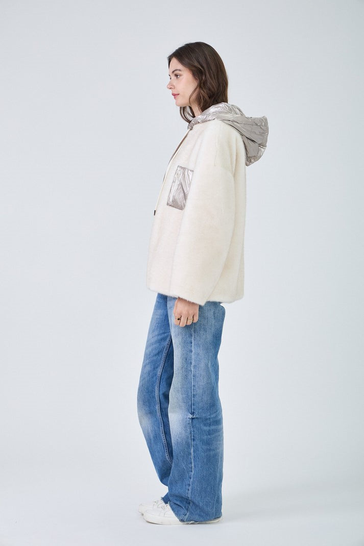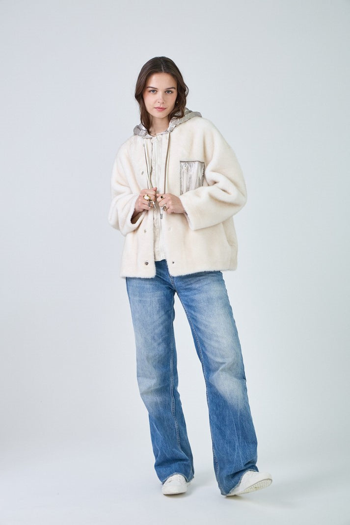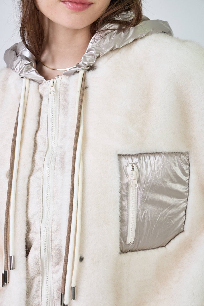 With its blend of soft faux fur and technical details, the Kayra jacket combines elegance and comfort. Its loose fit and quilted lining make it the perfect ally for facing chilly days in style. This jacket features a zipper for closure, hood with an adjustable drawstring, two side pockets, contrasting quilted lining and a removable hood.