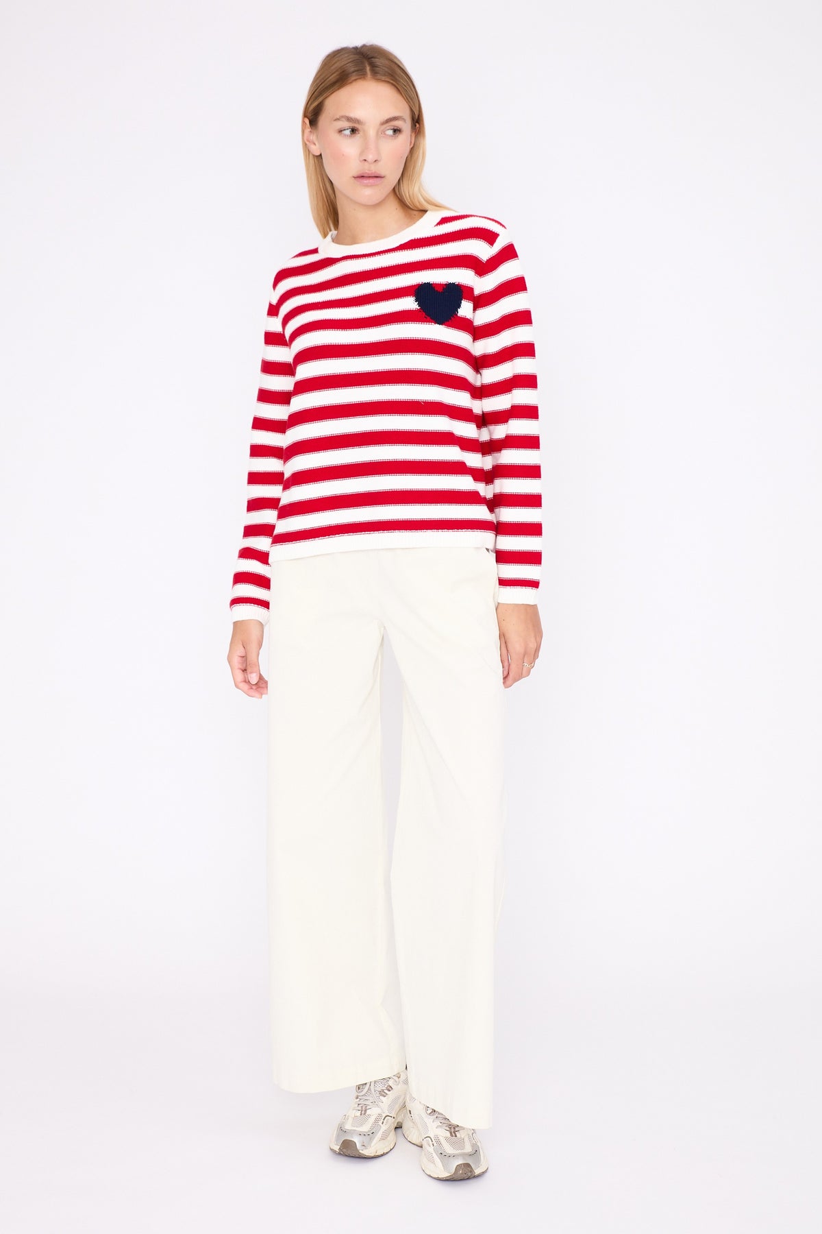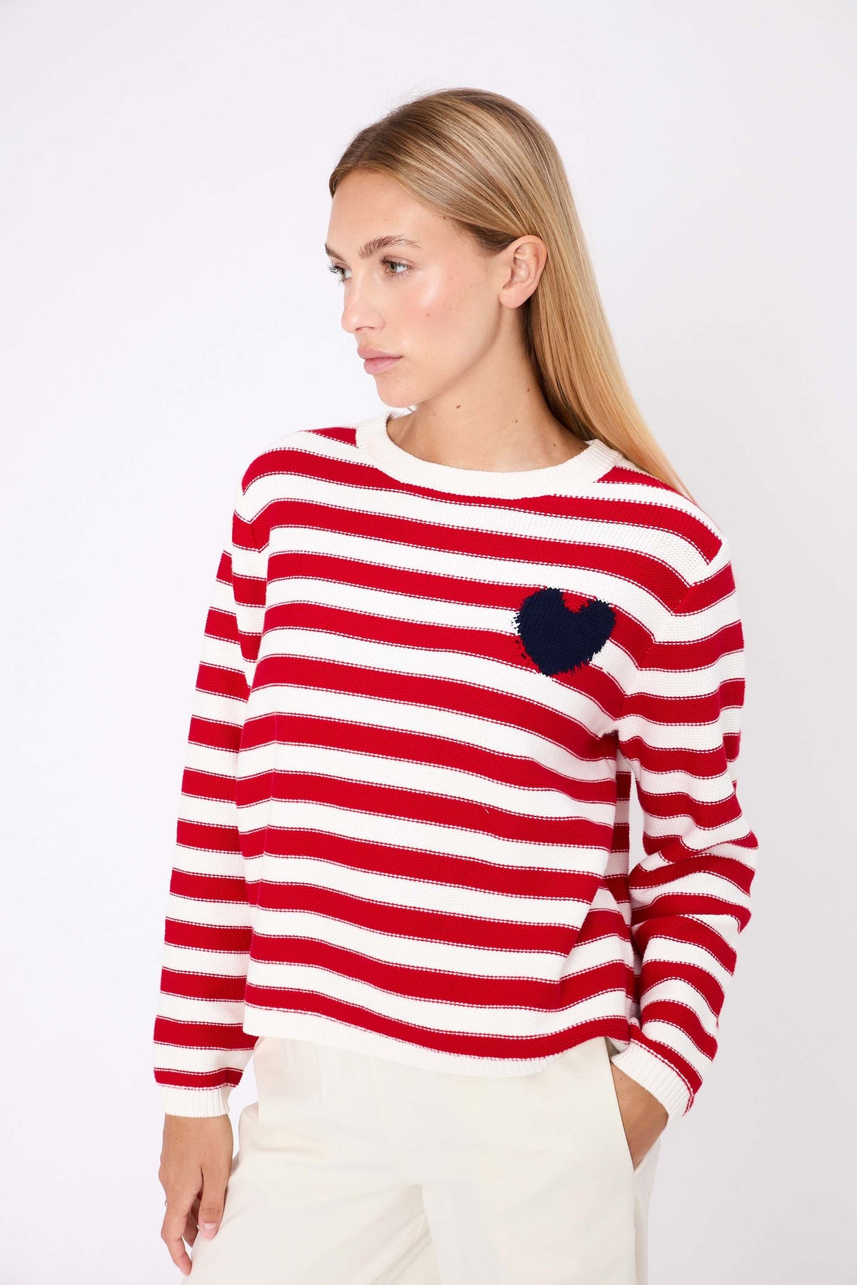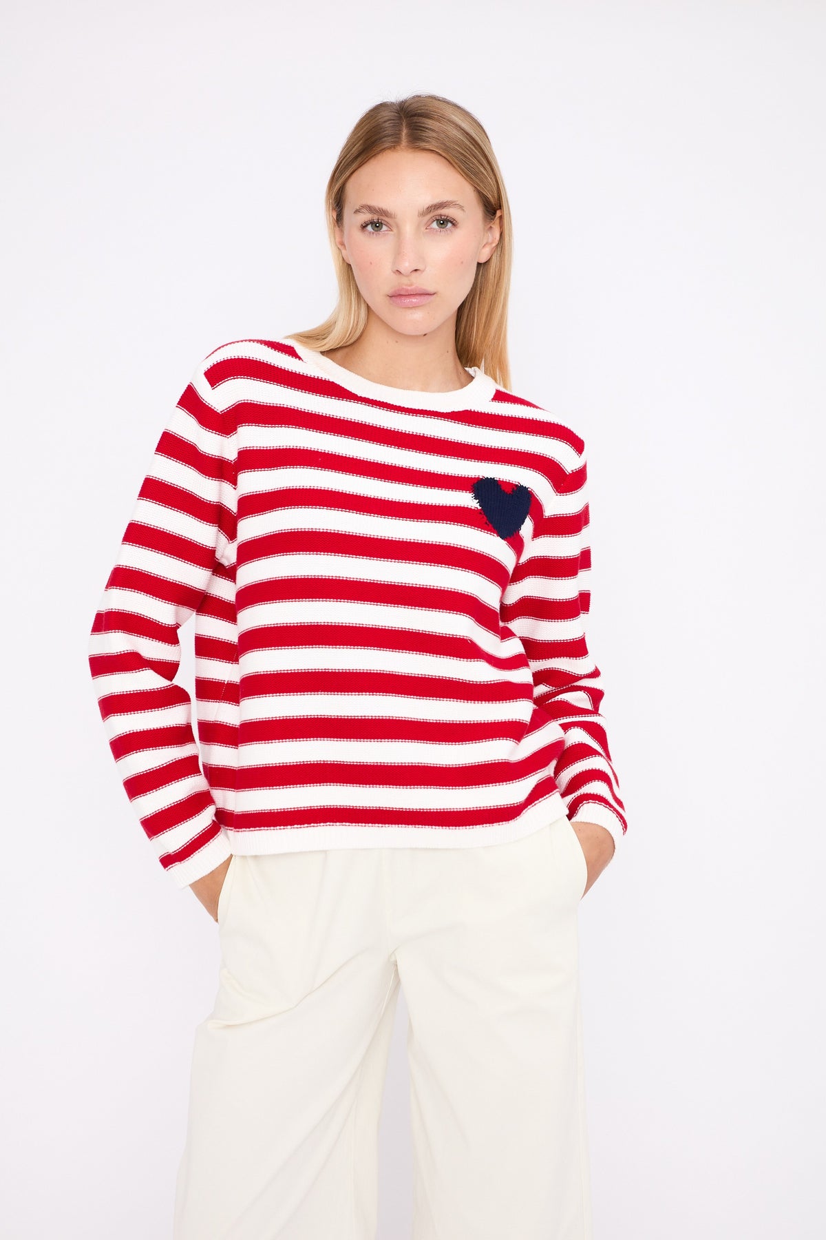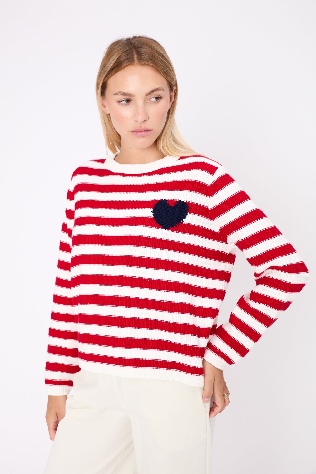 Its timeless stripes are enhanced with a small contrasting heart, adding a fresh and feminine touch.