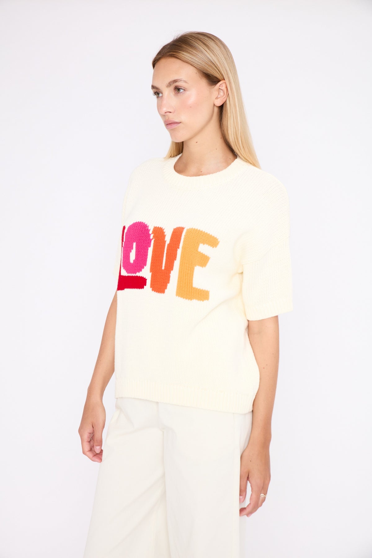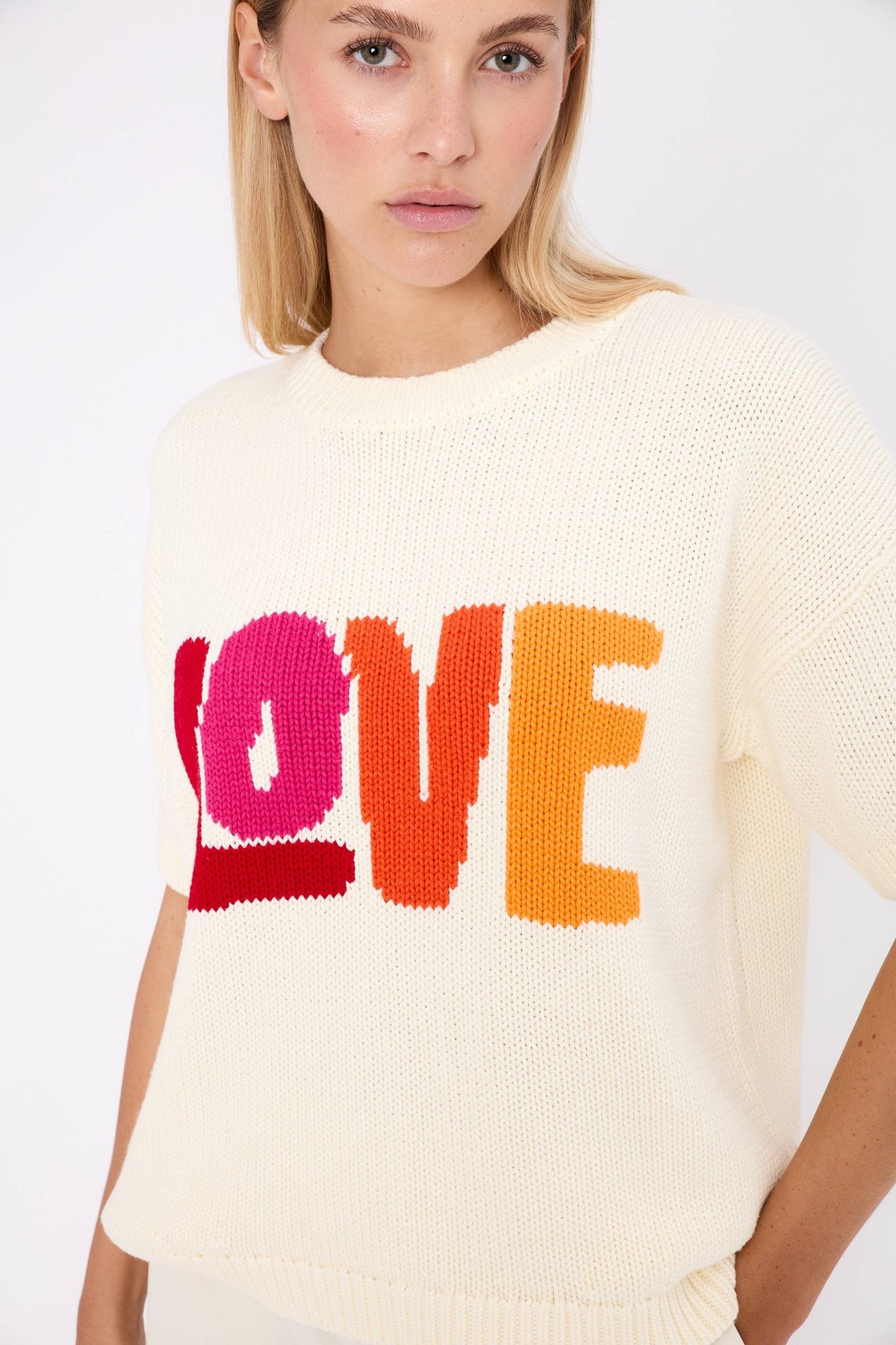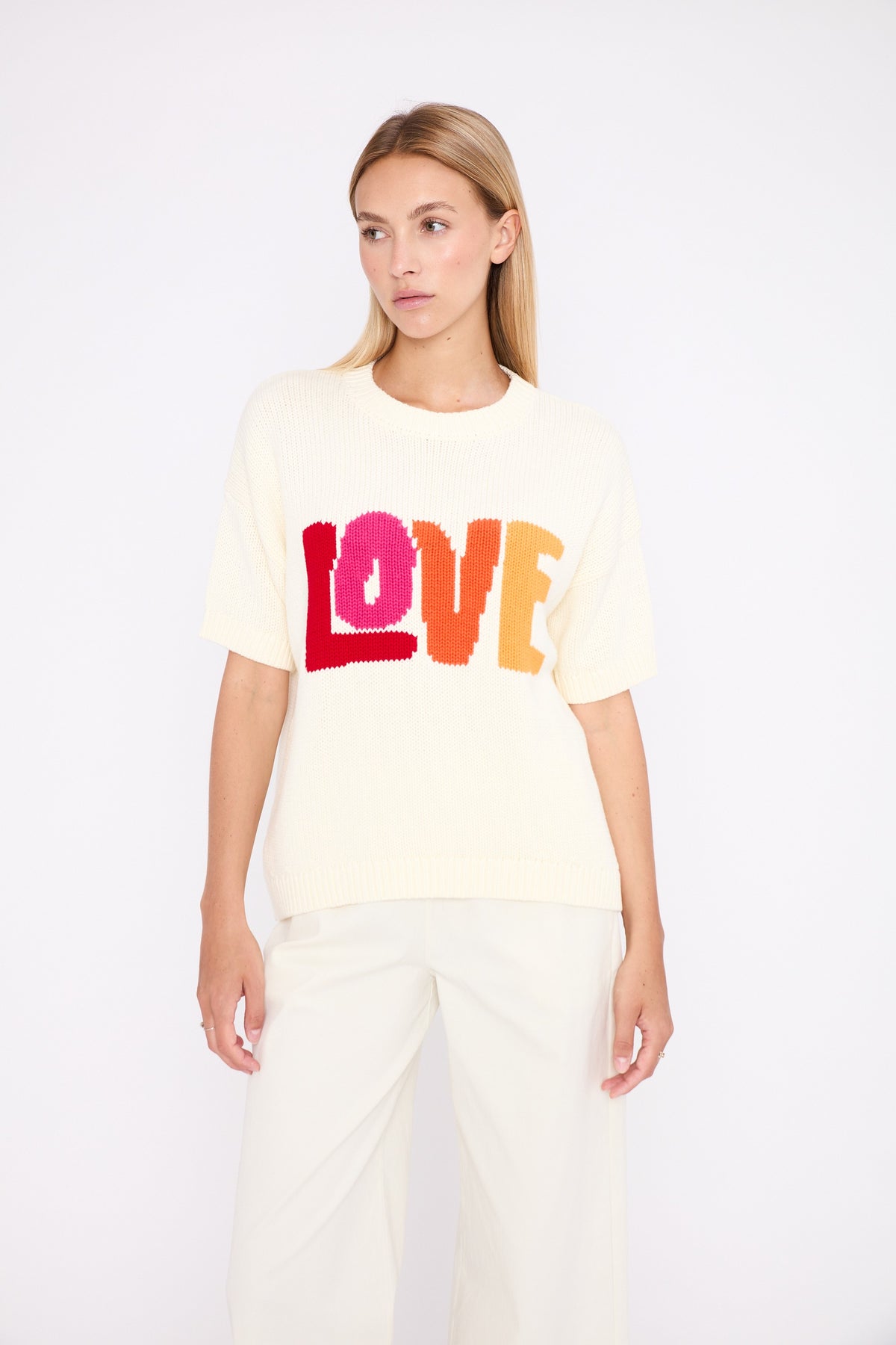 The colourful LOVE slogan adds a pop and positive touch, designed to brighten everyday looks.