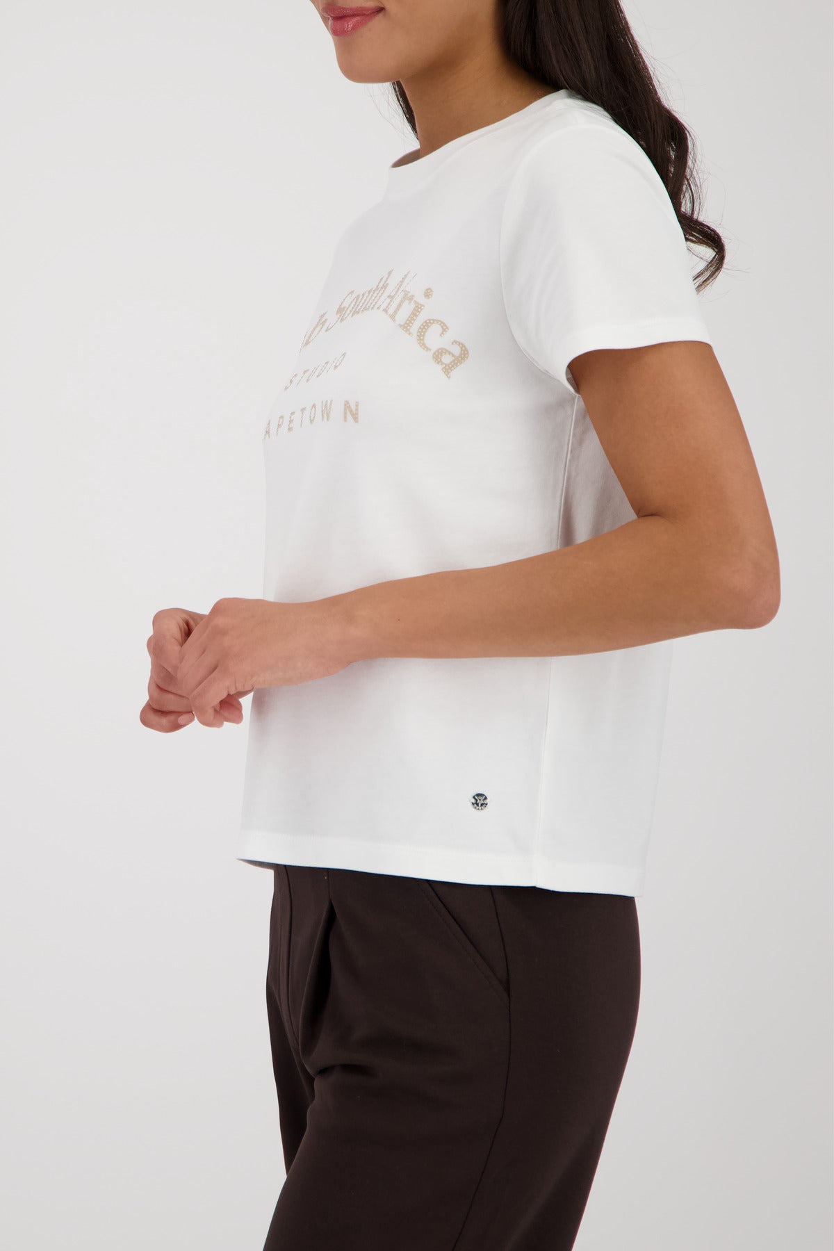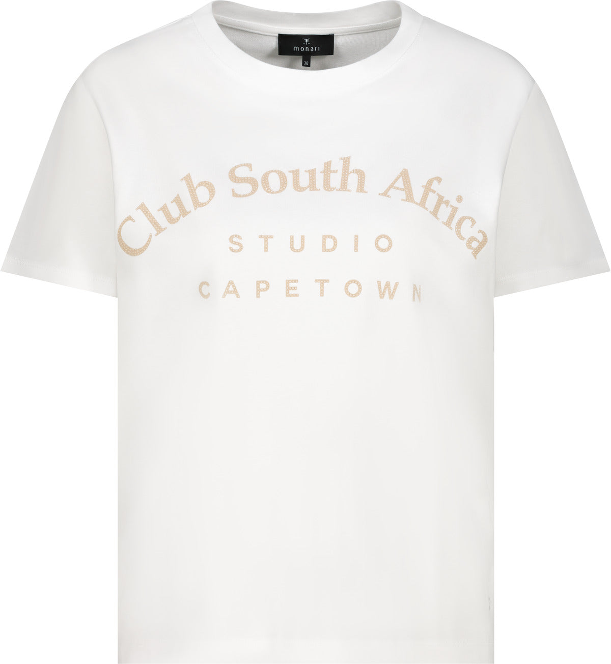 Regular price £65.00This is a gorgeous Monari white t-shirt with writing on the front. This is a classic basic by Monari, which is just perfect for layering up.
