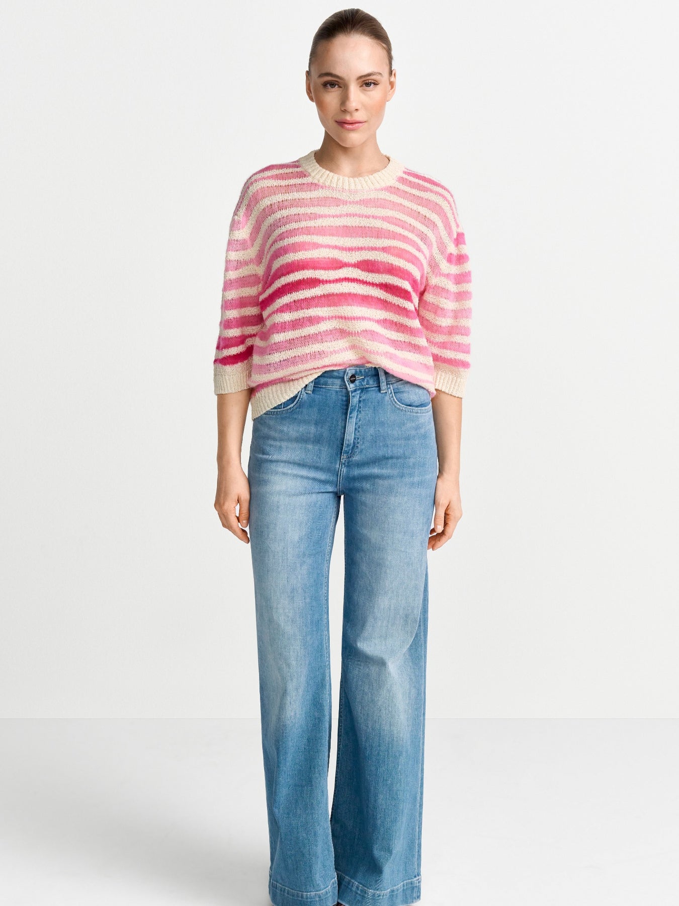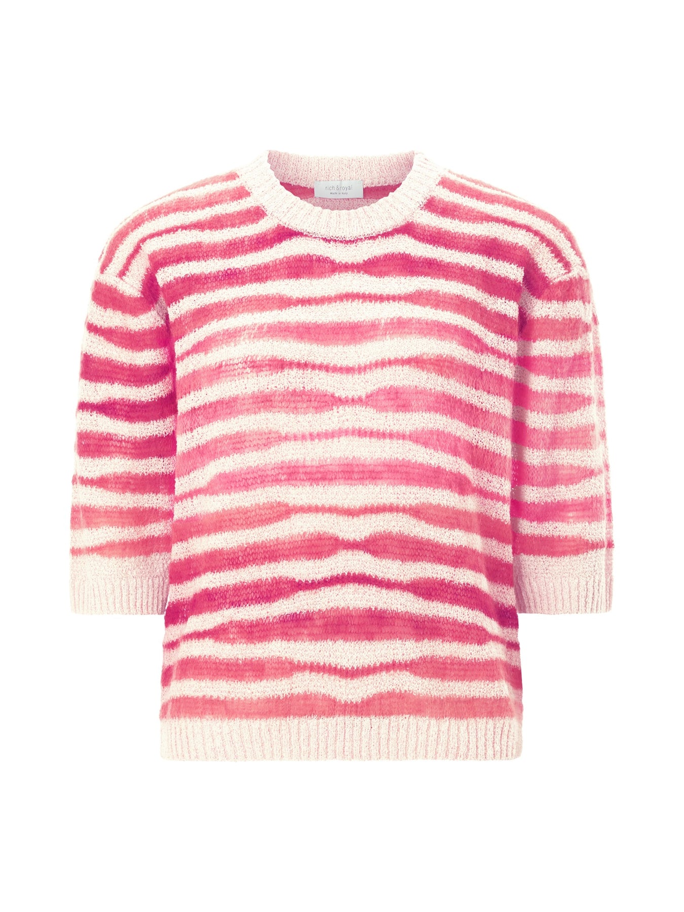 Regular price £159.95This is a lovely pink and cream zebra print knitted sweater. This is the perfect layer to add heat and to add a pop of colour to an outfit. This sweater feature a round neckline, 3/4 length sleeves, cuffed neckline a sleeves and regular fit.