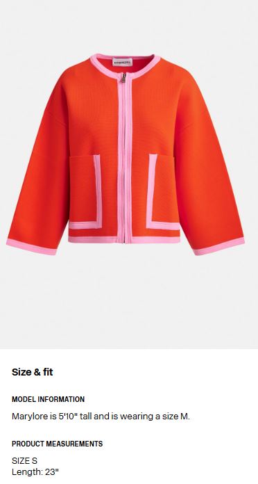 Regular price £220.00This is a fabulous orange cardigan with contrasting trims and zip fastening in pink. Boxy cardigan is designed with dropped shoulders and a relaxed silhouette. It features a front zip fastening, patch pockets, and contrasting trims. Double stitching outlines the garment, adding definition to the design. This cardigan is a Fine knit, designed for a relaxed fit, dropped shoulders, boxy fit.