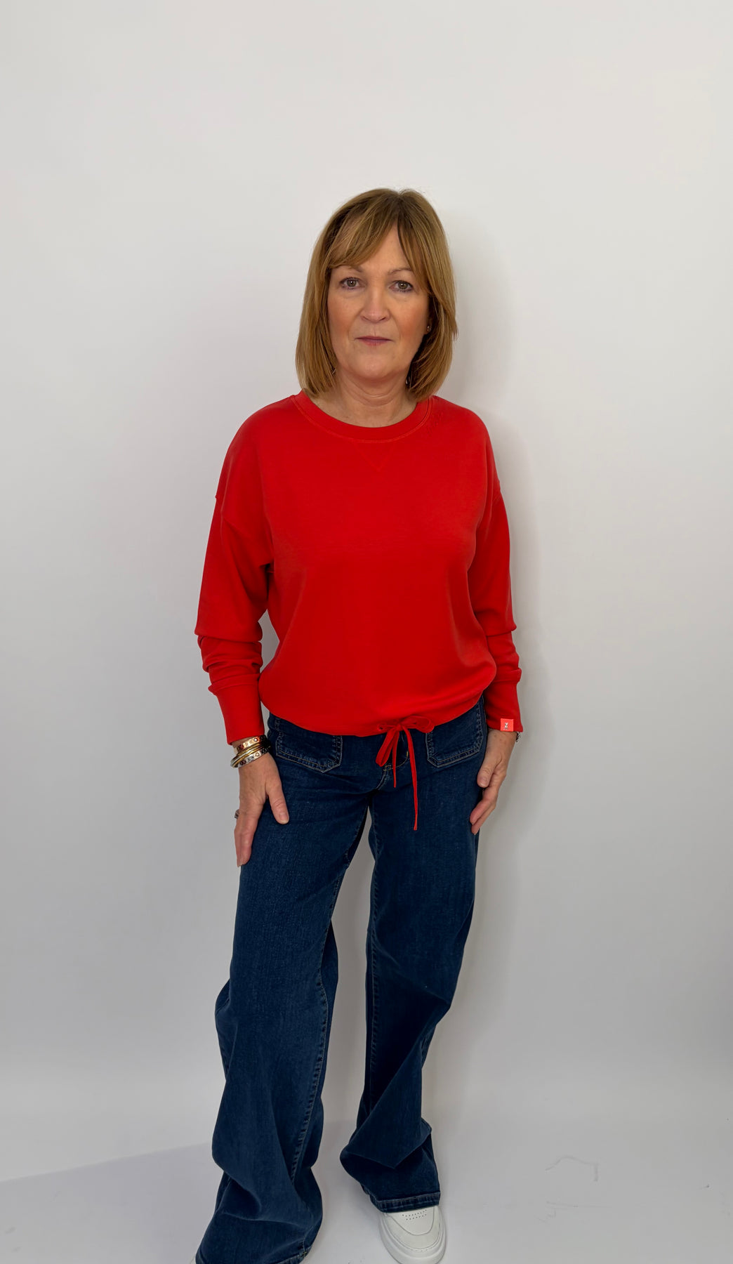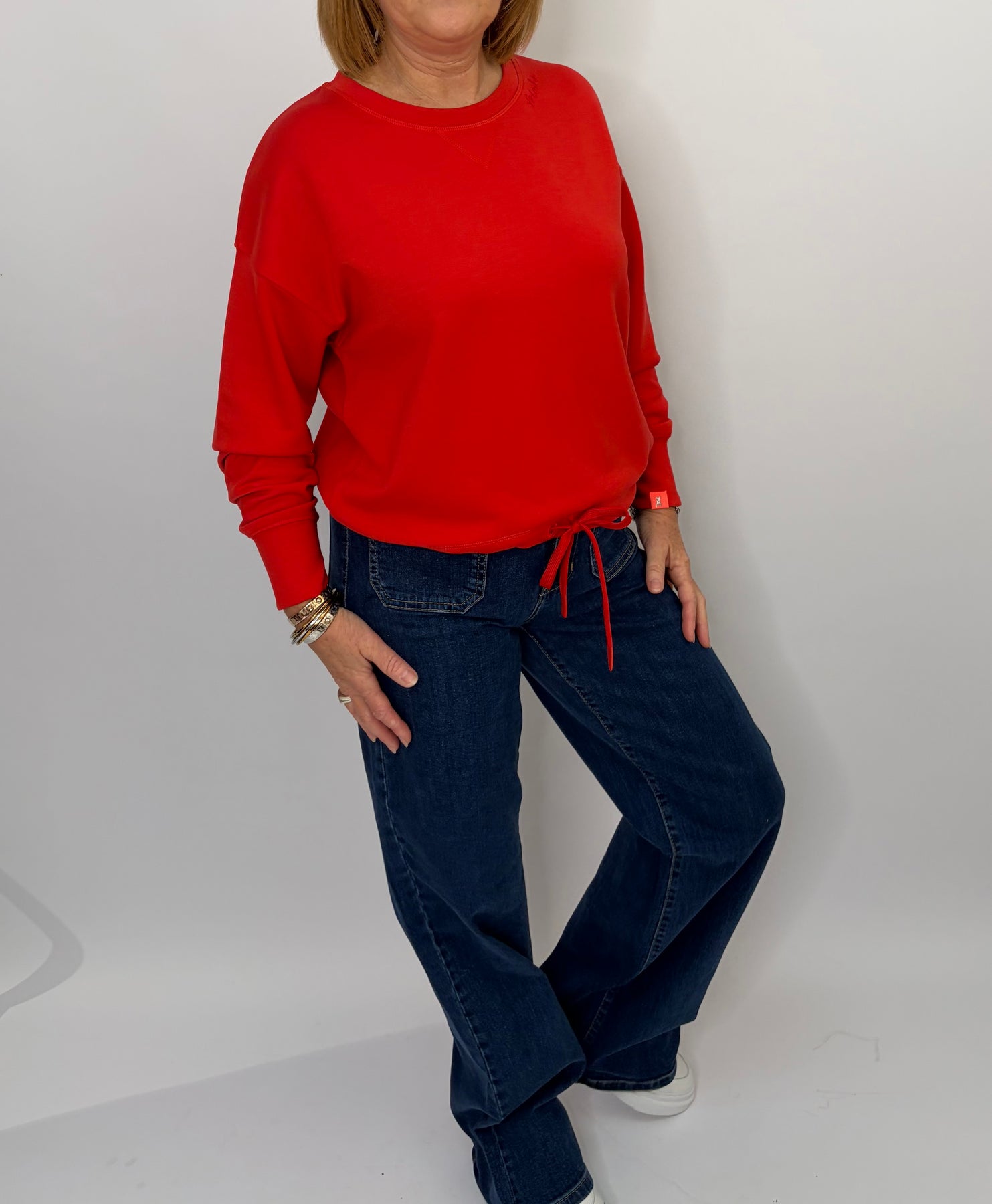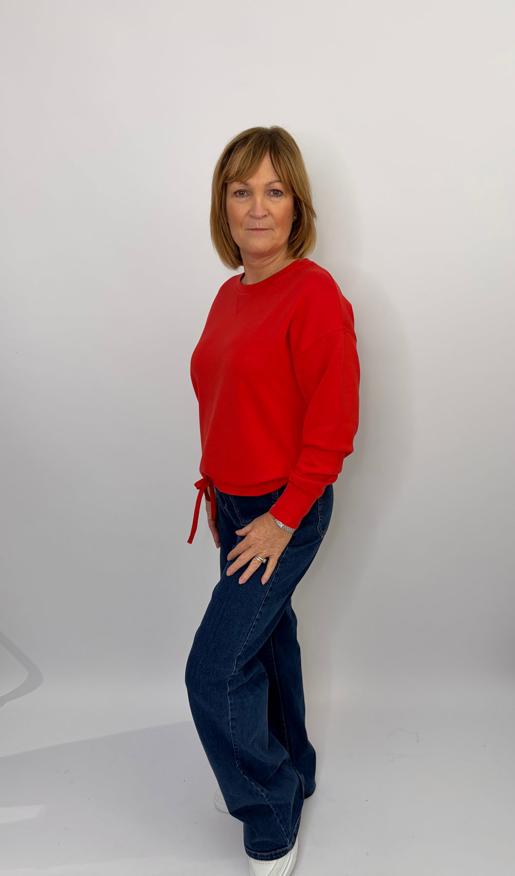 Regular price £86.95This is a fab red jumper with ties around the bottom. This is a perfect layer and adds a pop of colour.
