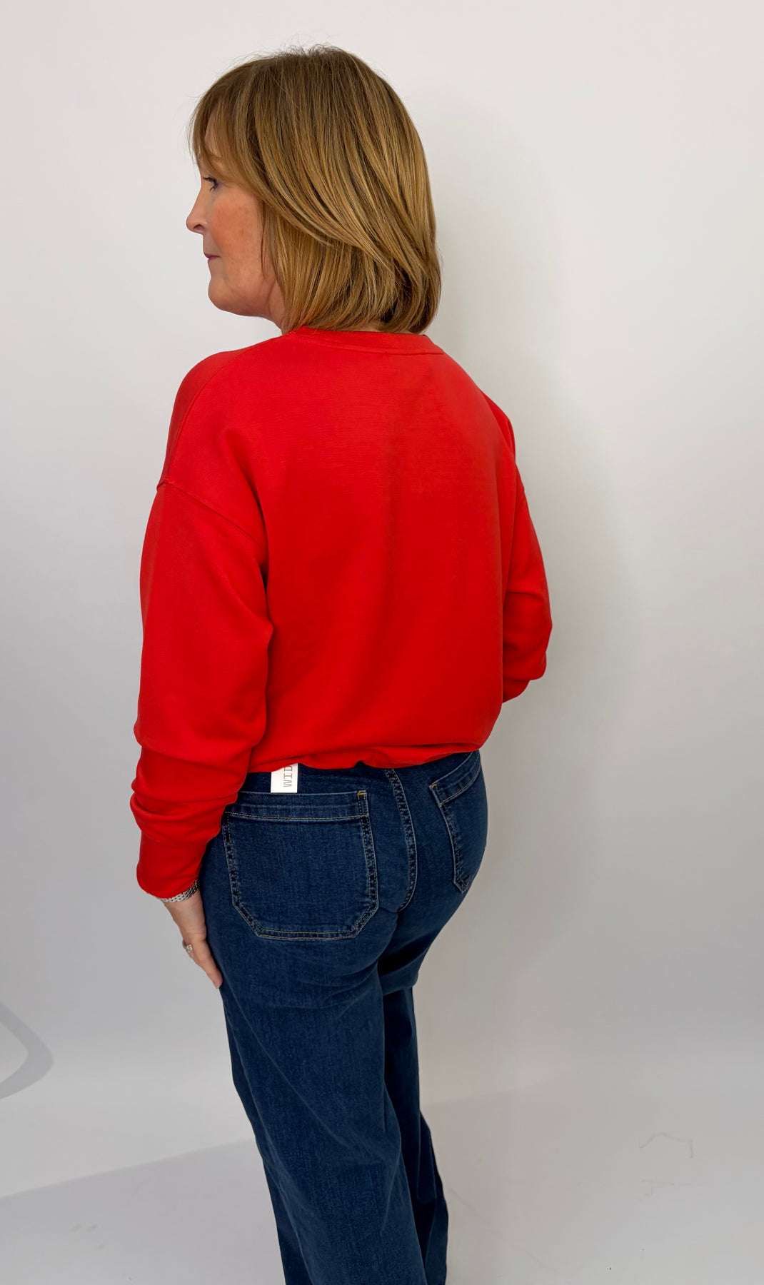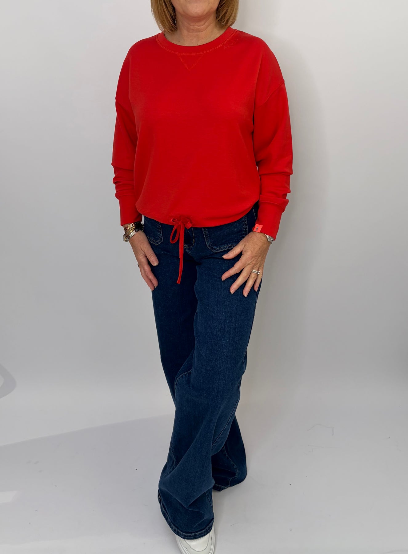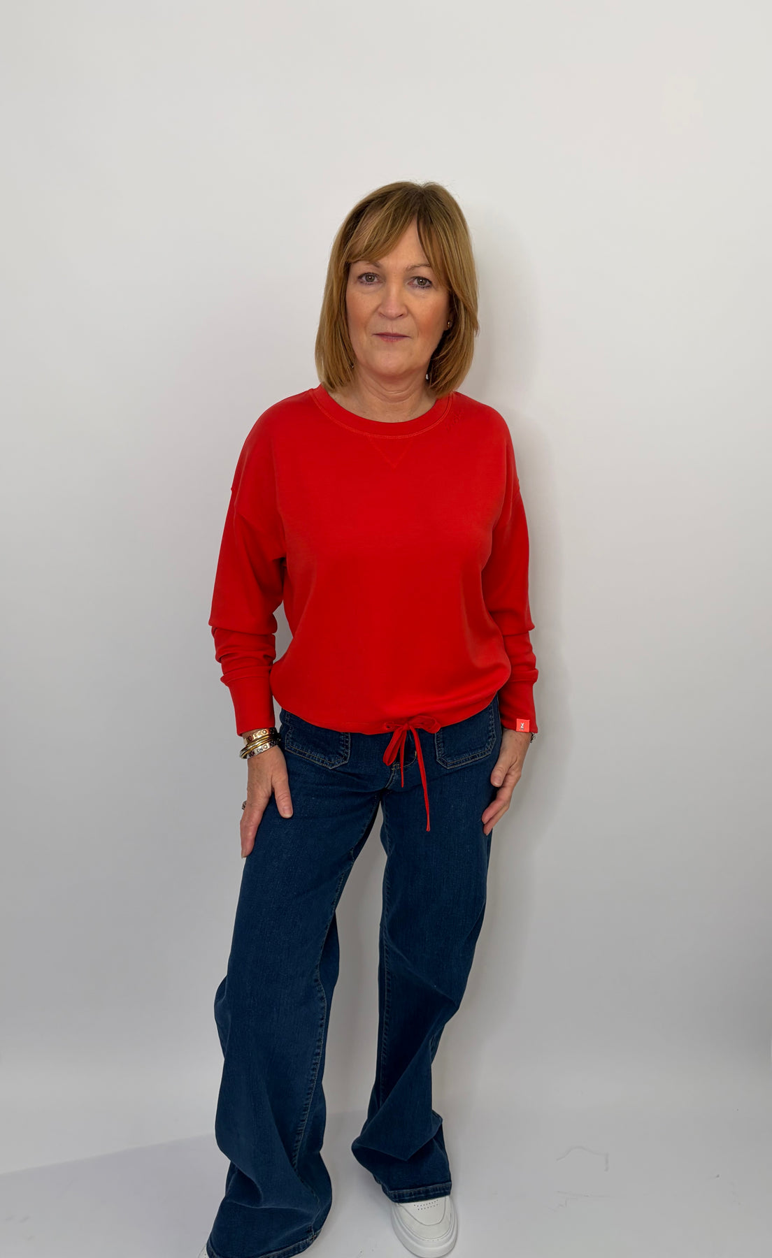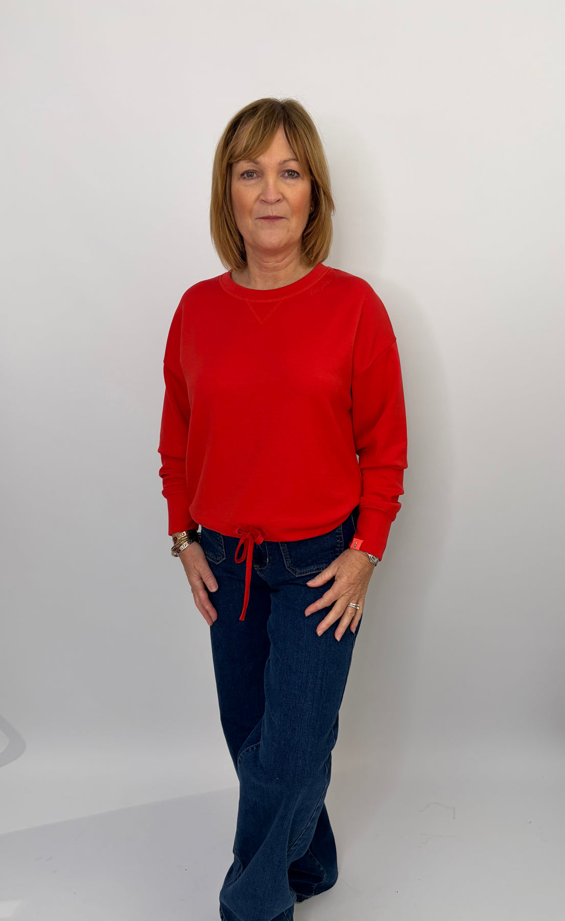 Regular price £86.95This is a fab red jumper with ties around the bottom. This is a perfect layer and adds a pop of colour.