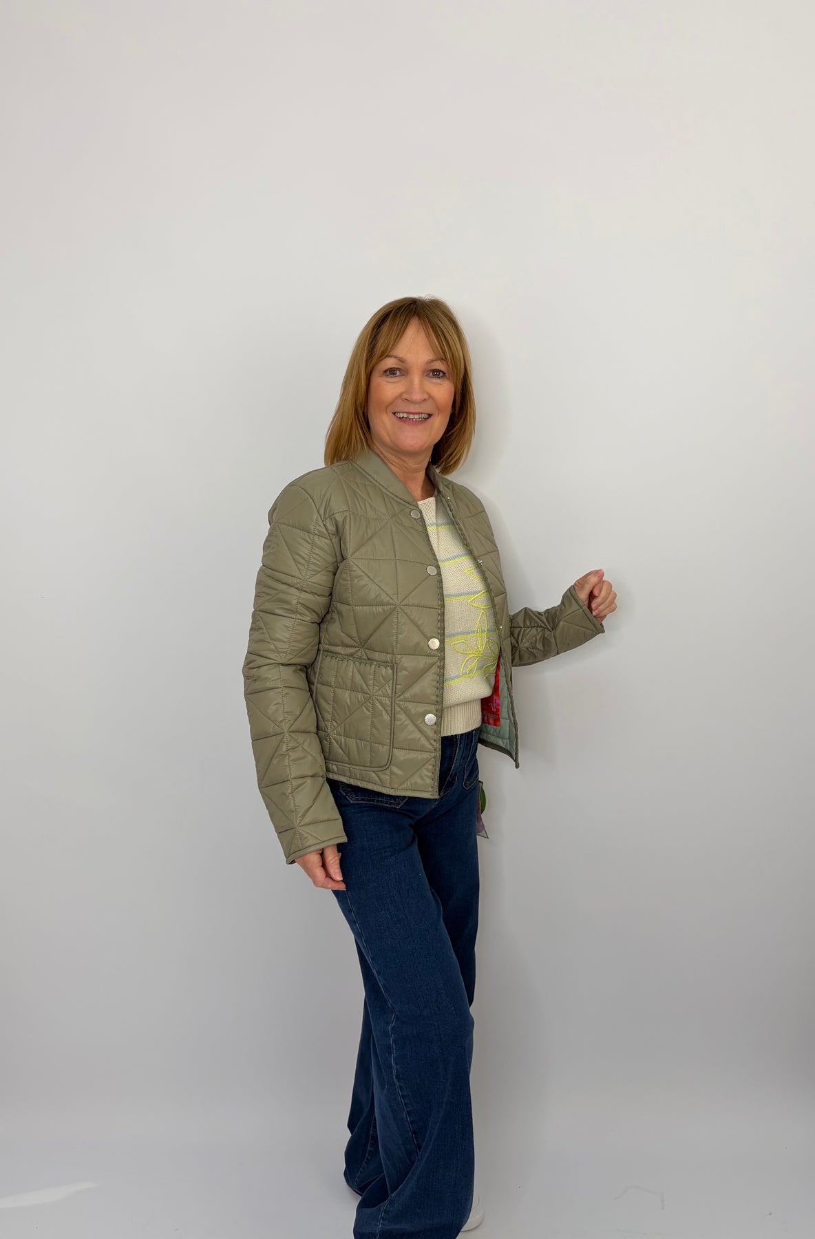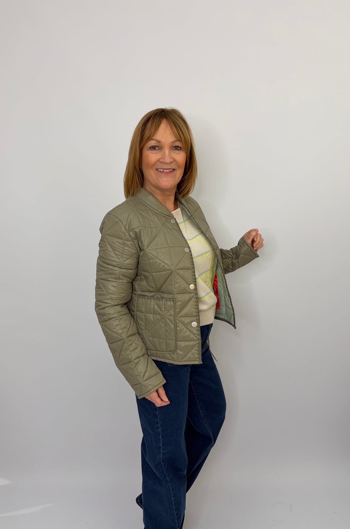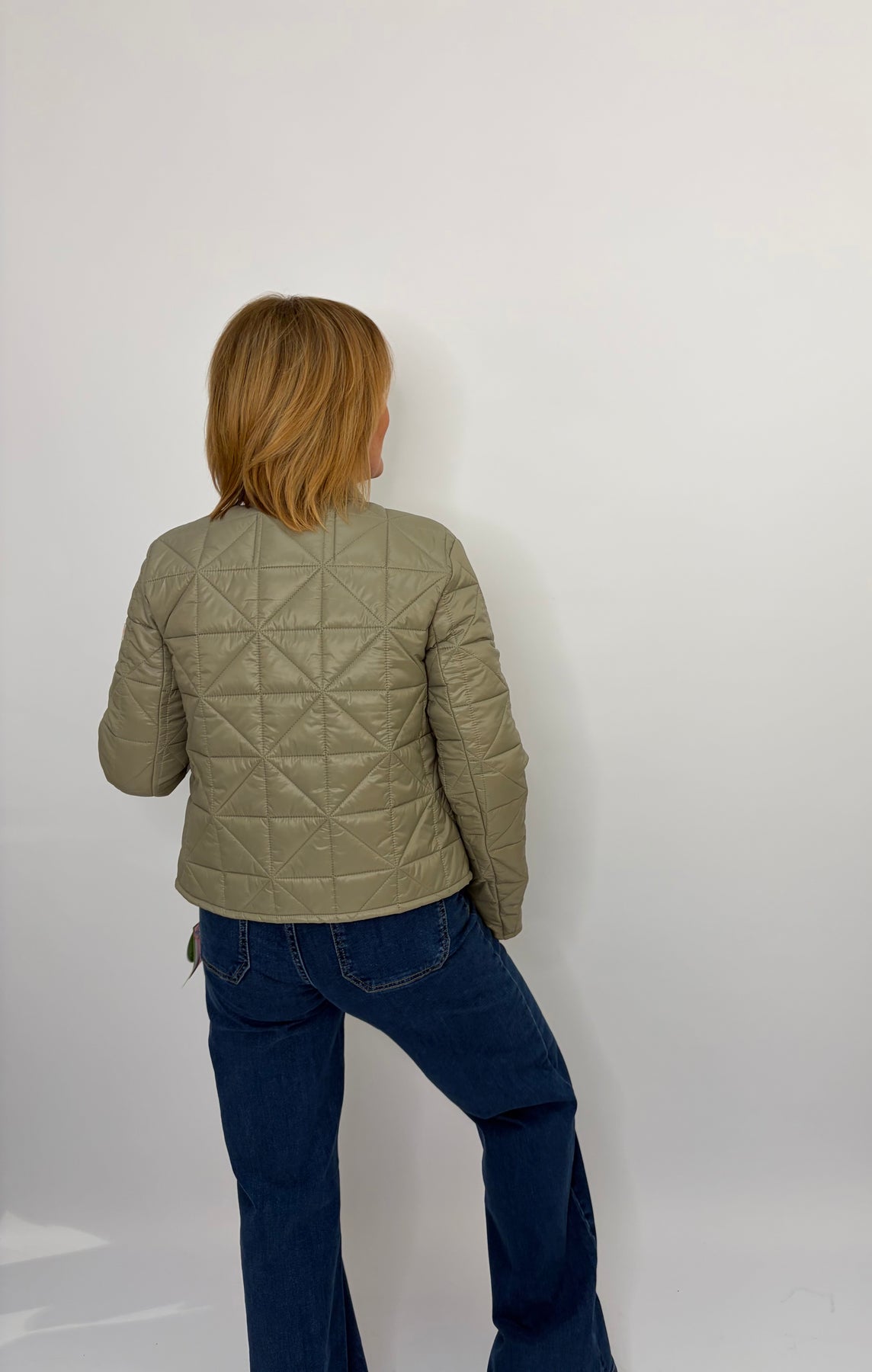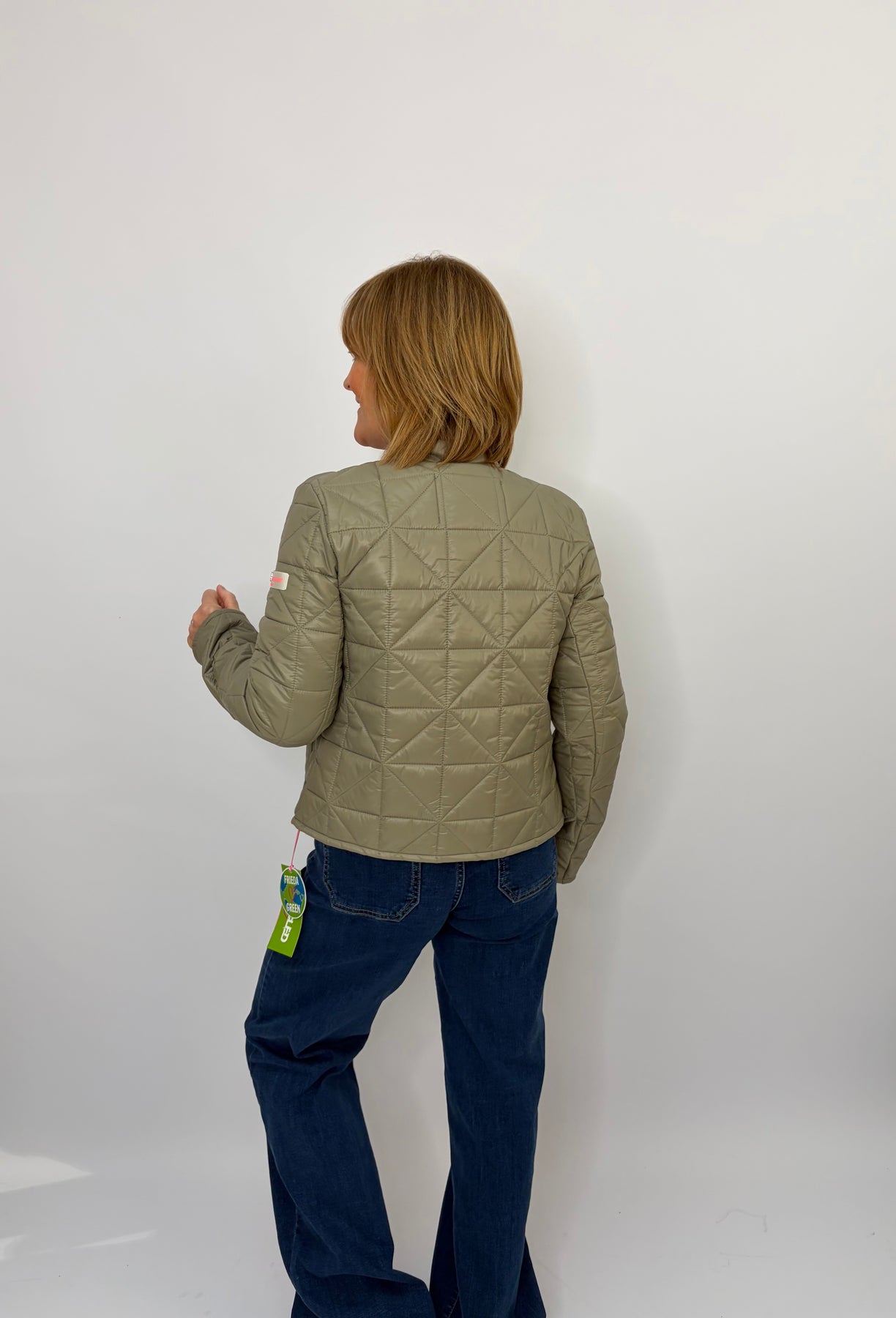 Regular price £199.95This is a beautiful olive green jacket, perfect for layering over an outfit for a bit of heat or a pop of colour. Button up the front, super light and comfortable! Size up in this jacket as they can be a more tight fit.
