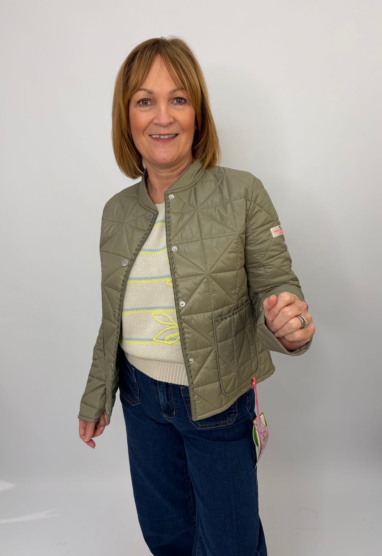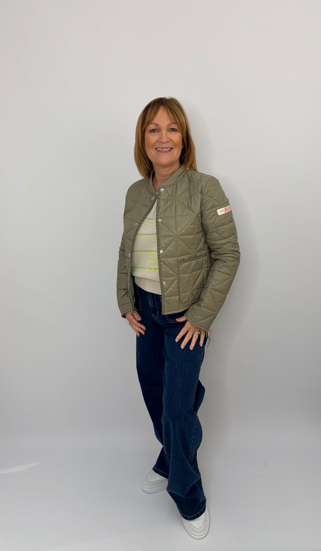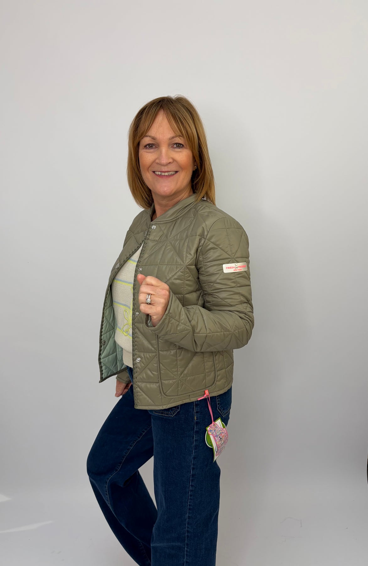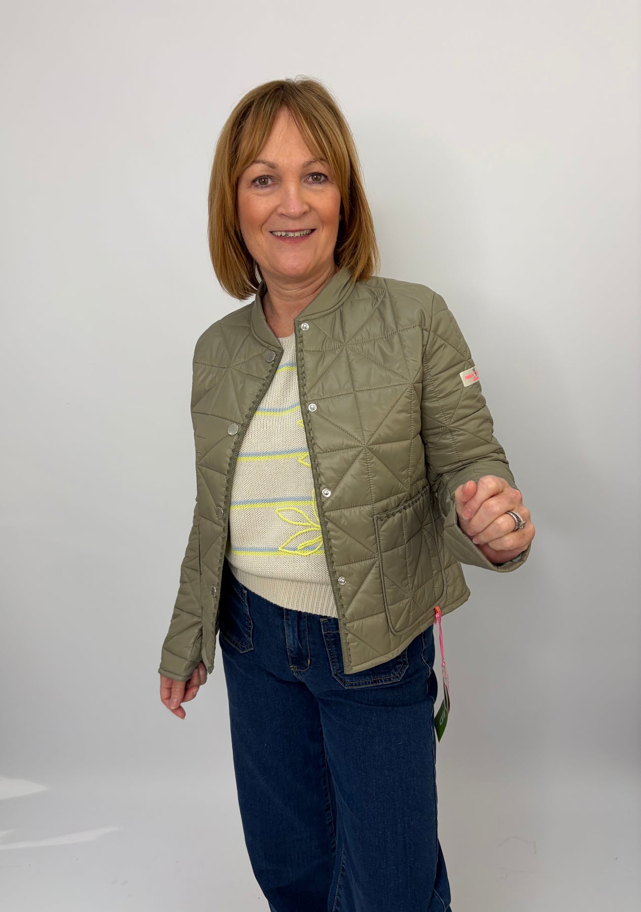 Regular price £199.95This is a beautiful olive green jacket, perfect for layering over an outfit for a bit of heat or a pop of colour. Button up the front, super light and comfortable! Size up in this jacket as they can be a more tight fit.