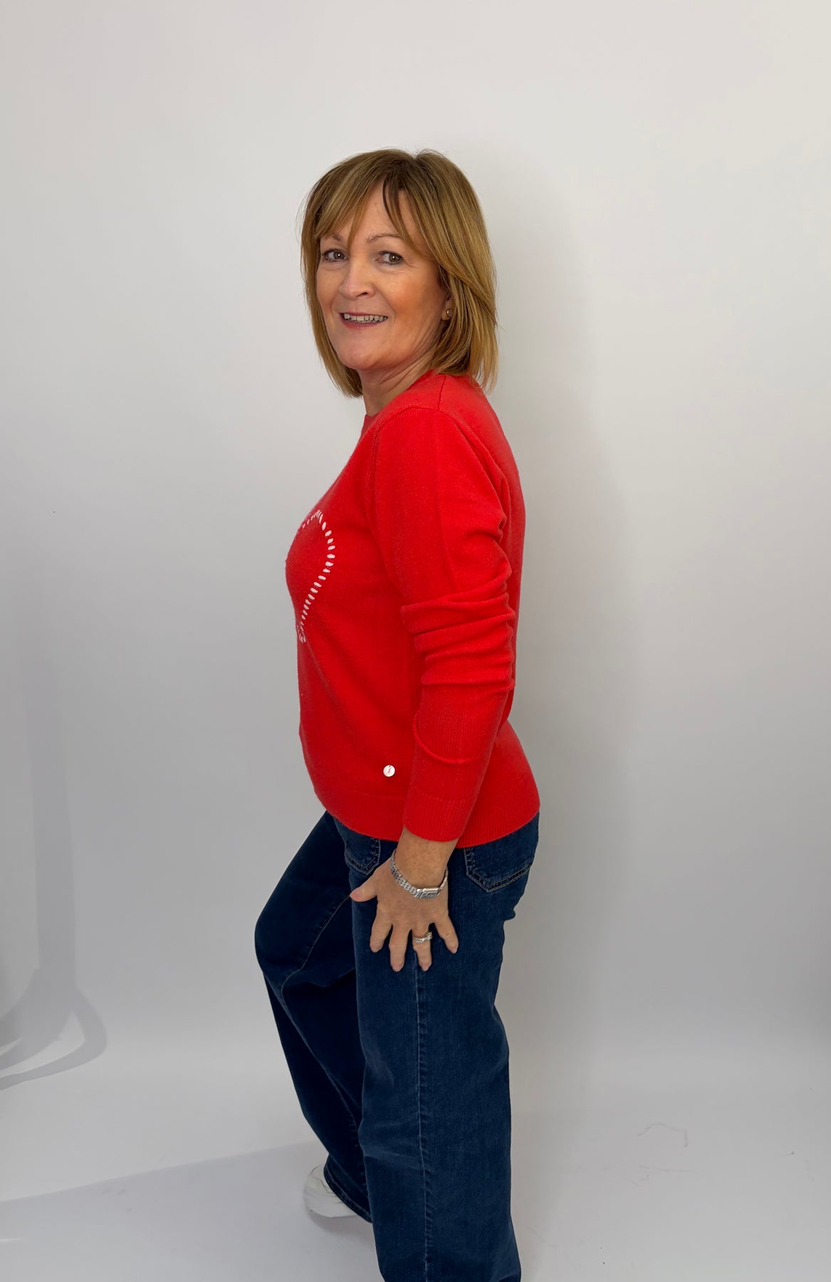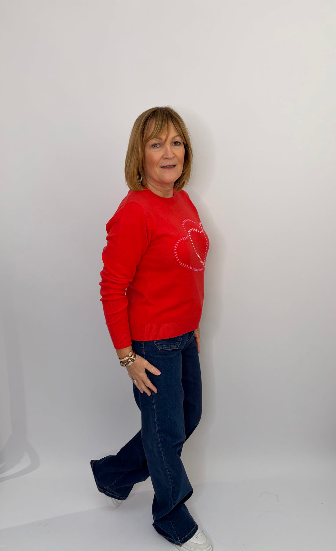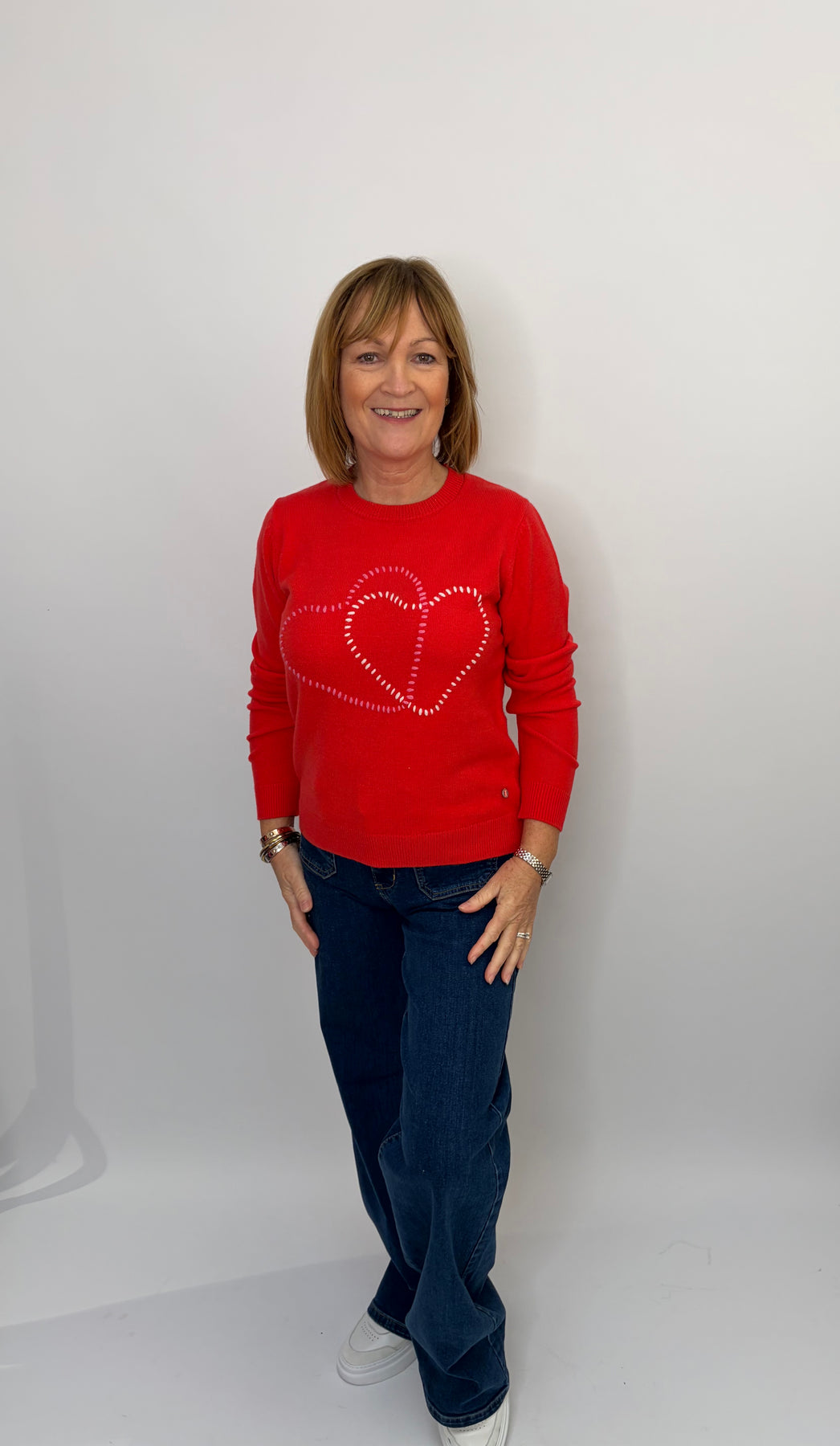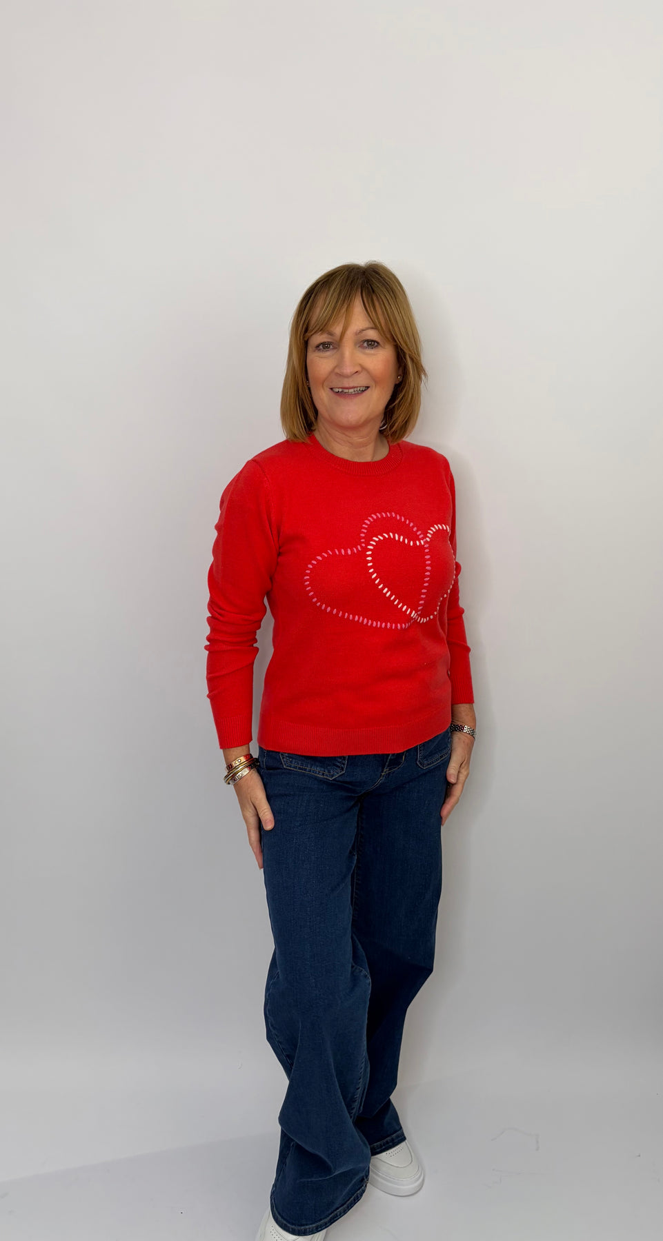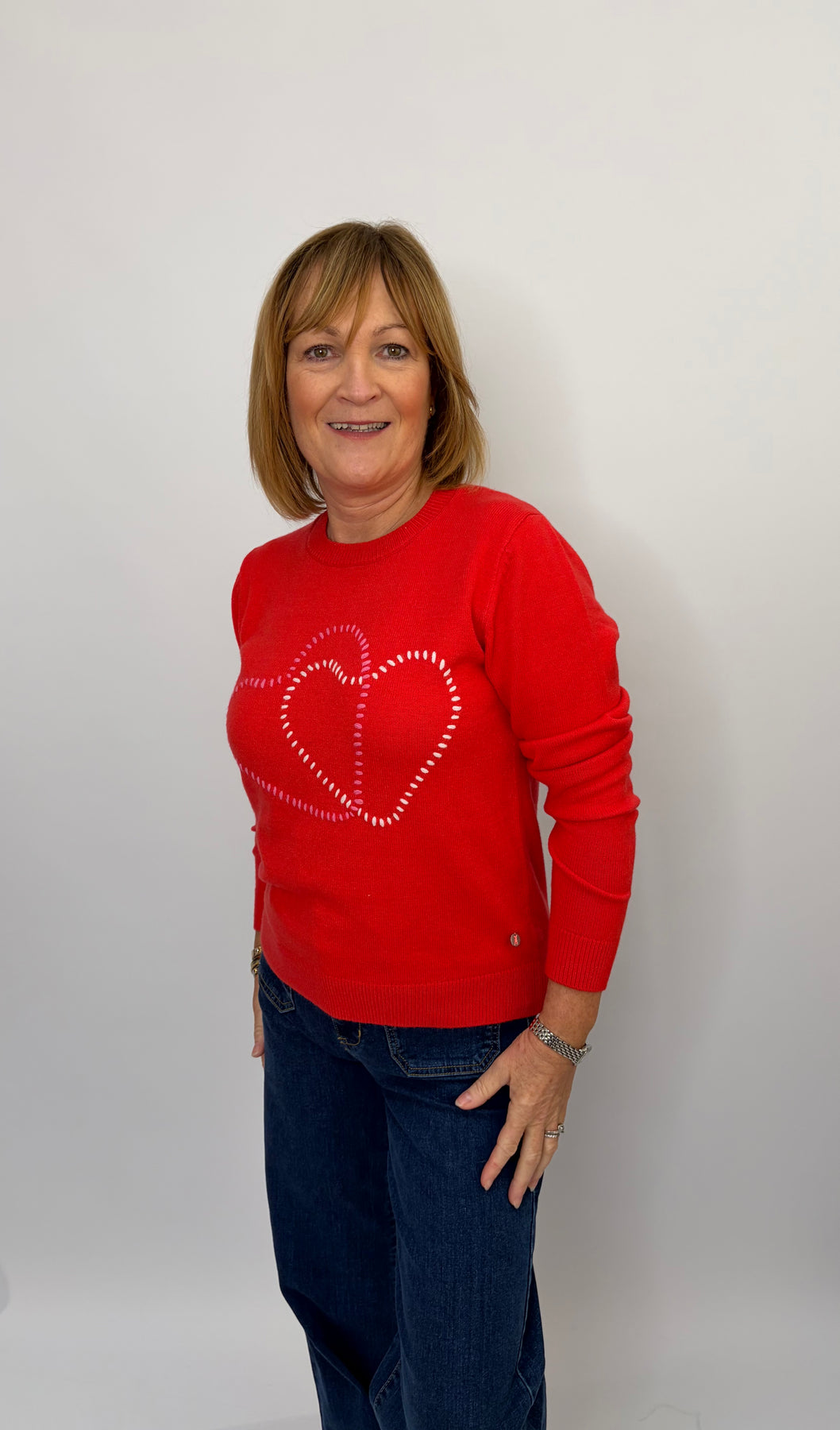 Regular price £96.00This is a lovely red sweater with hearts on the front
