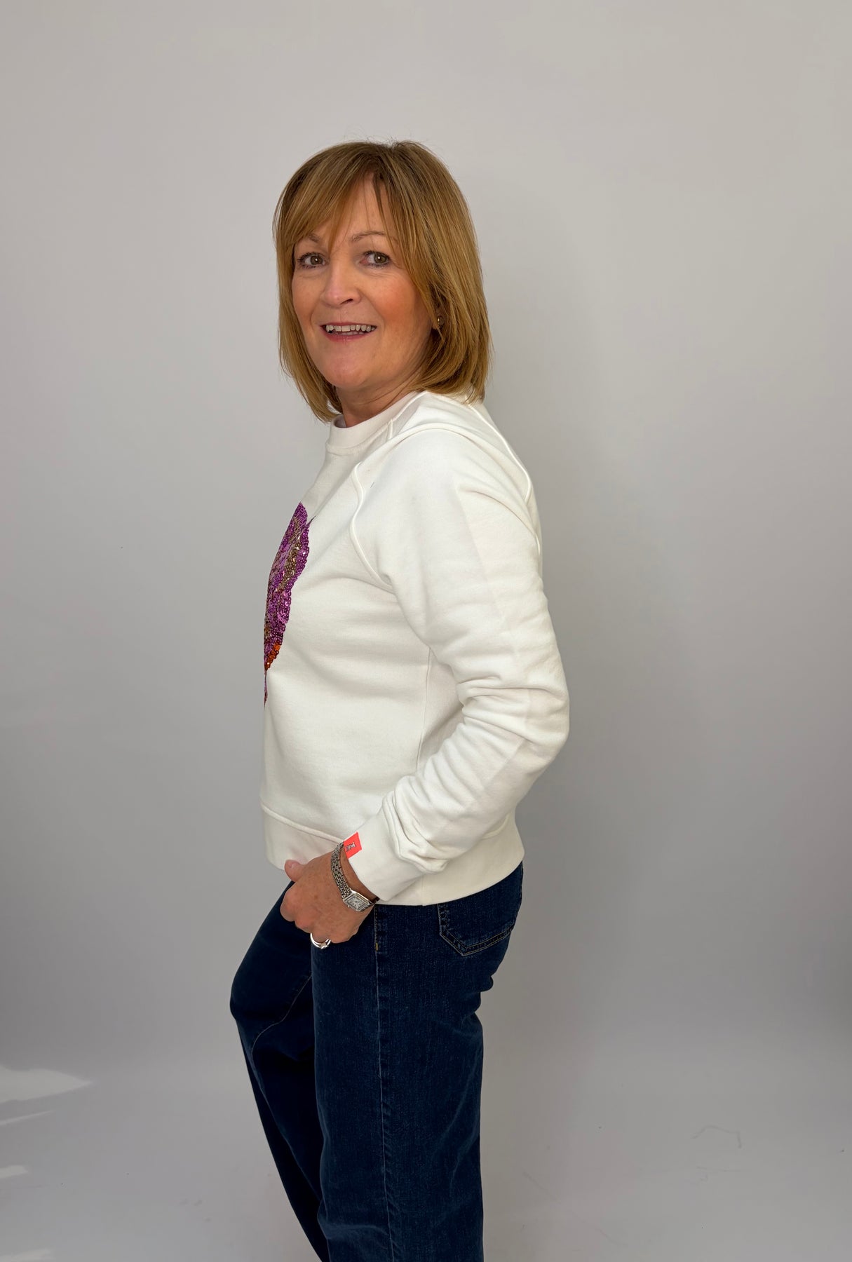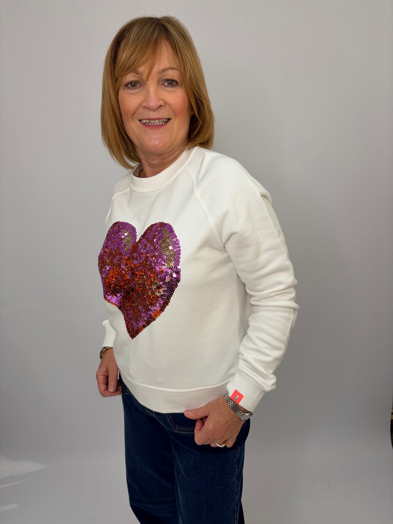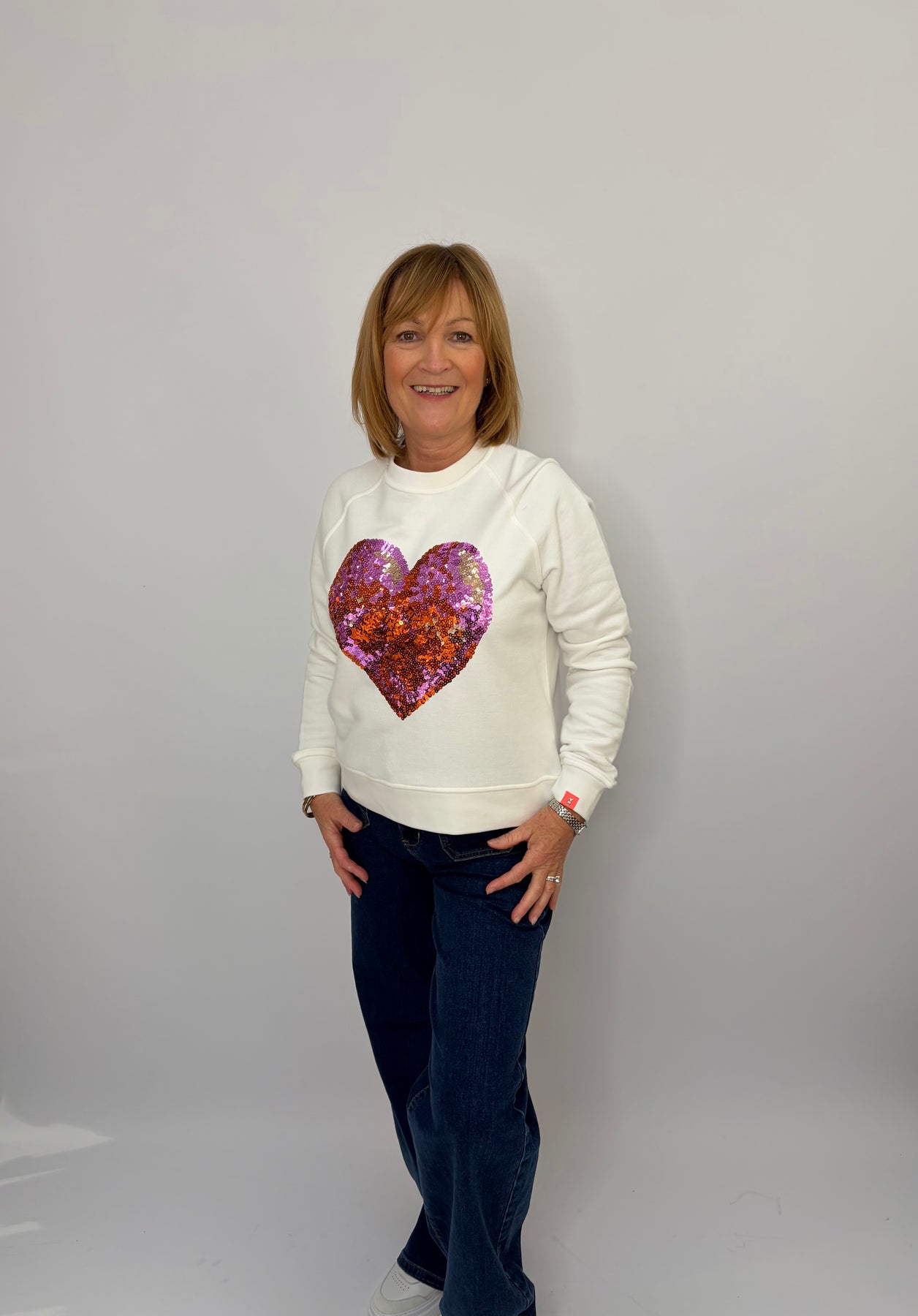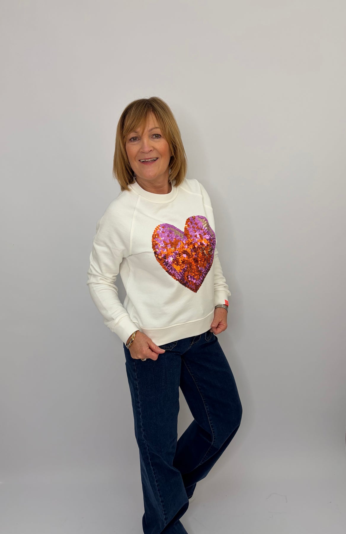 Regular price £104.95This beautiful Frieda & Freddies sequin heart white jumper. Super cute under a navy or beige jacket with denim jeans. Super chic!