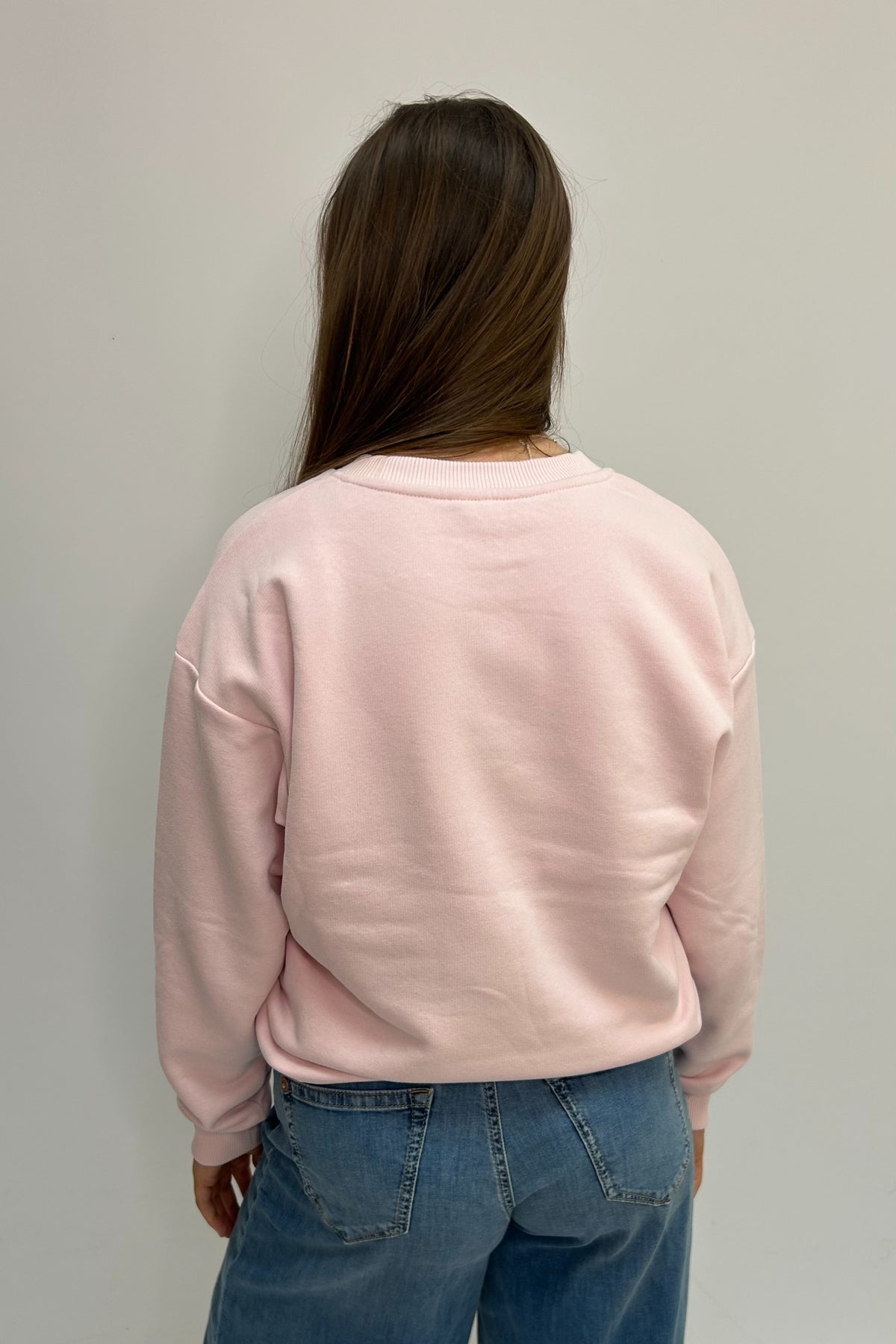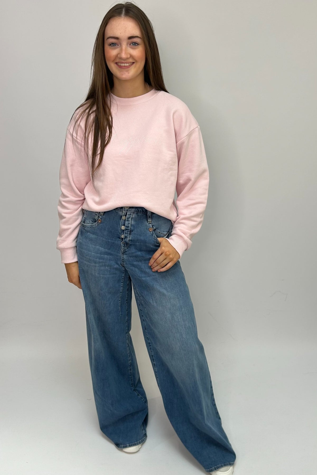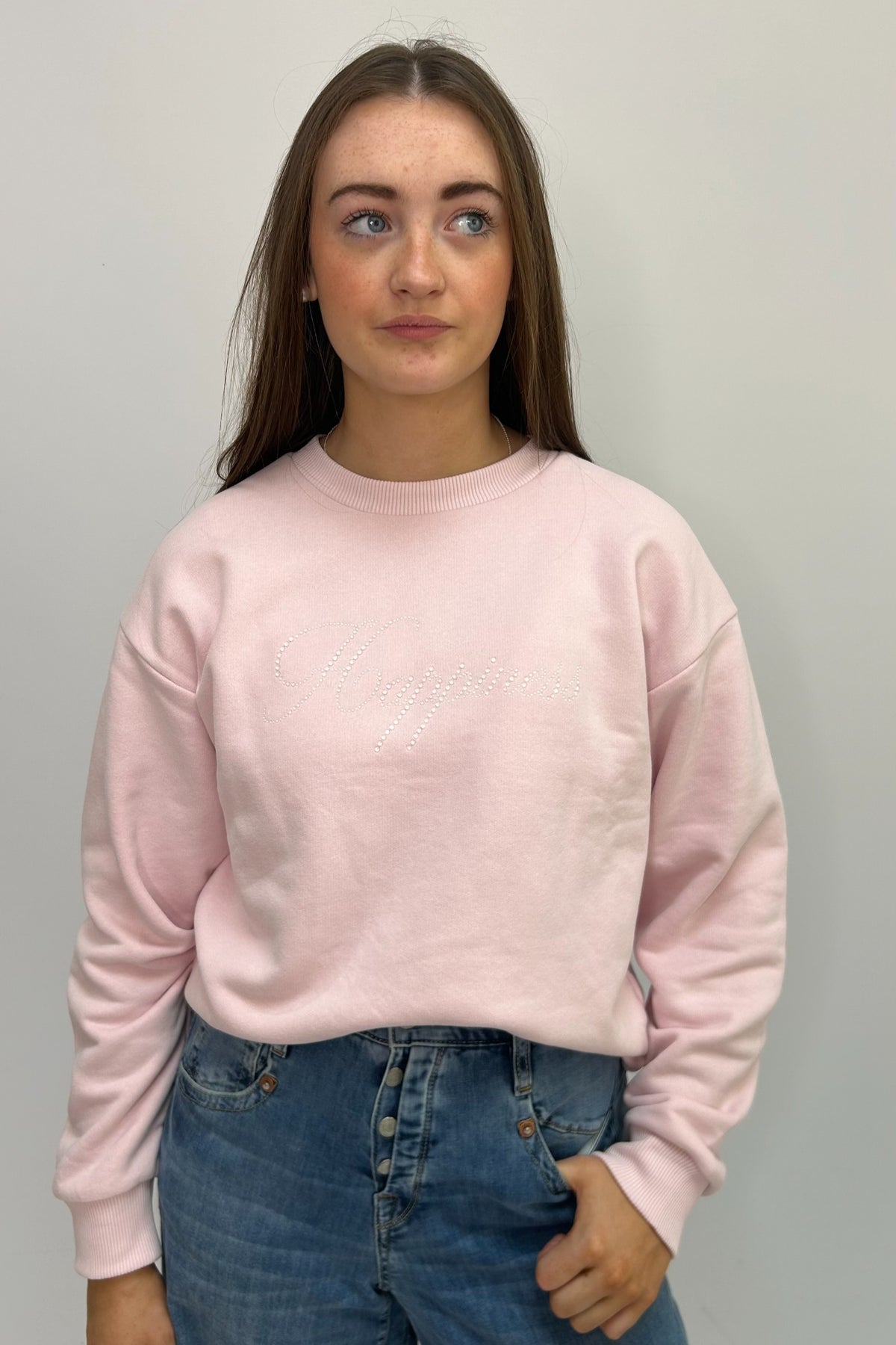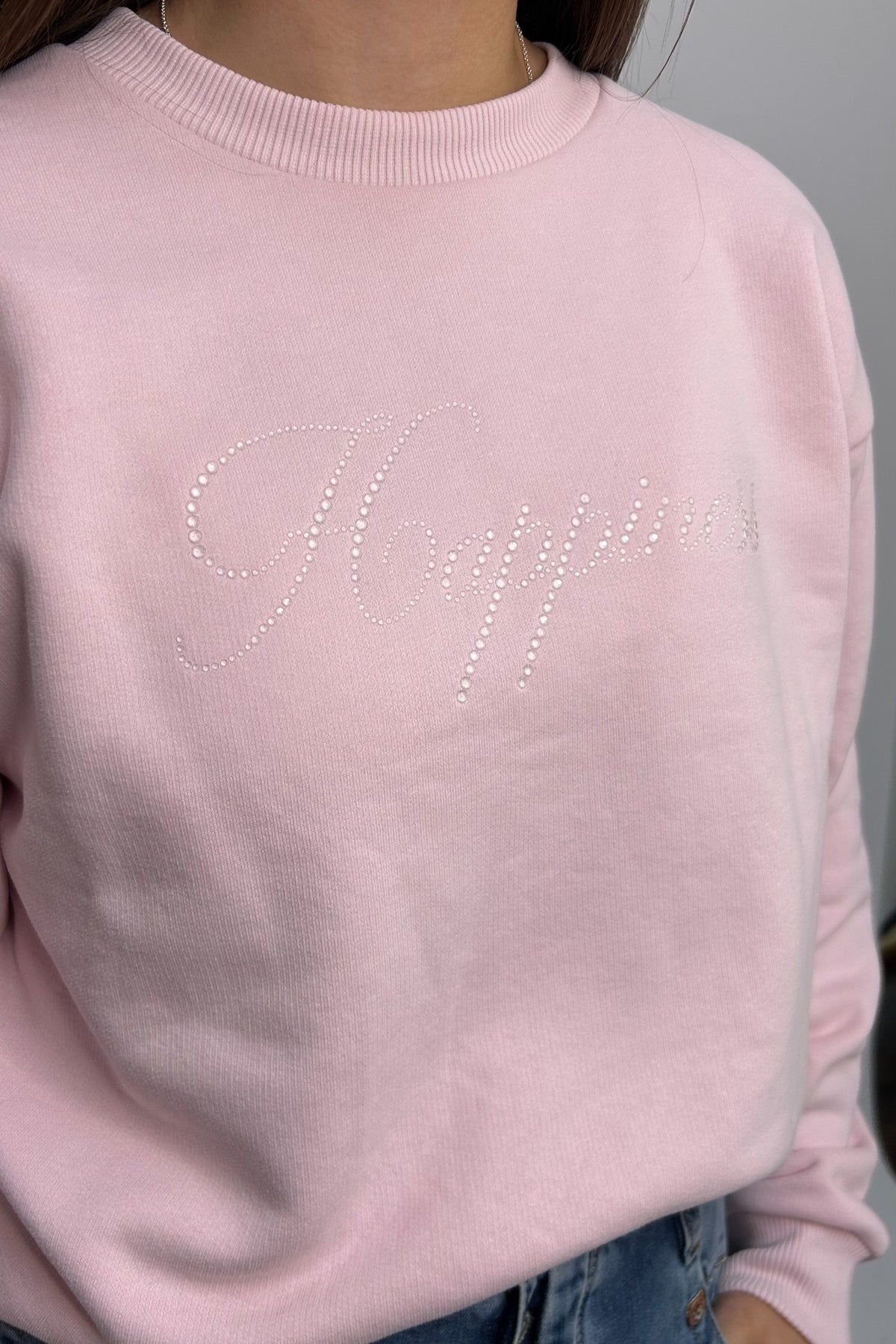 Regular price £99.95This is a gorgeous baby pink sweatshirt, this is perfect as a layer for a colder day. This sweatshirt features a round neckline, long sleeves, happiness on the chest in gem stone and is a regular fit.