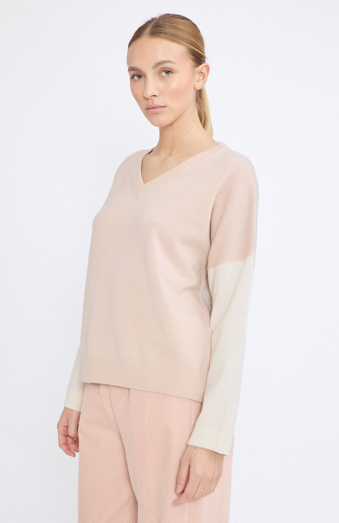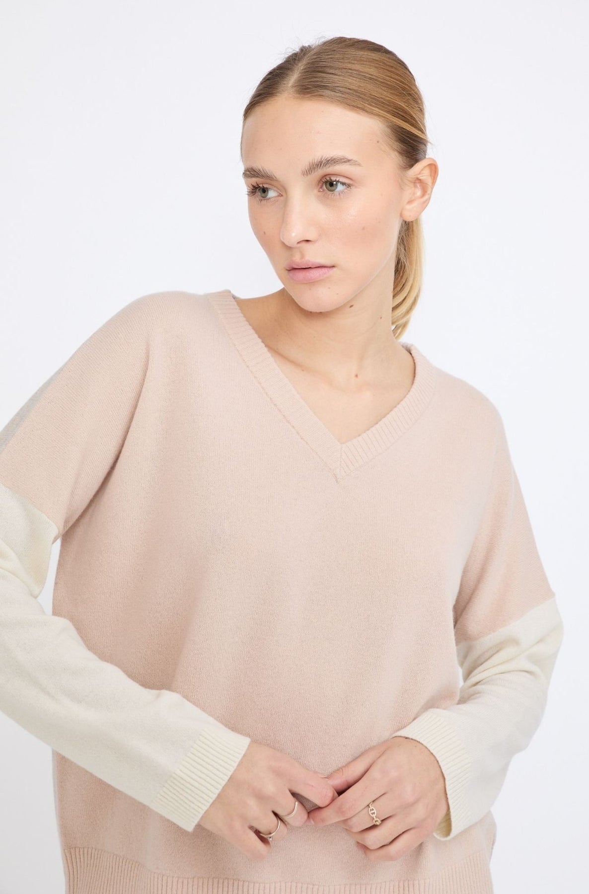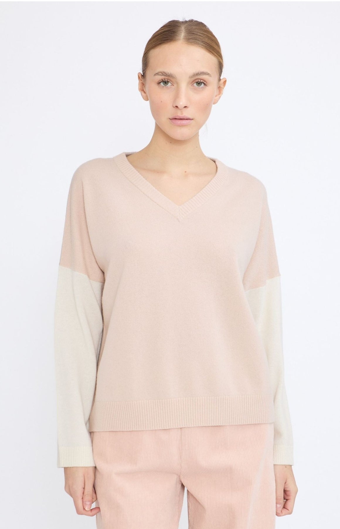 Regular price £149.95This sweater that plays the minimal card with a touch of softness. With its contrast sleeves and clean V-neck, it has a light, feminine feel without trying too hard. Easy to style – pair it casually with denim or dress it up with flowy trousers. The sweater is the cool, timeless knit you’ll want to wear every day. The sweater features soft lightweight knit, V-neckline, long contrast sleeves, Straight fit and ribbed edges.