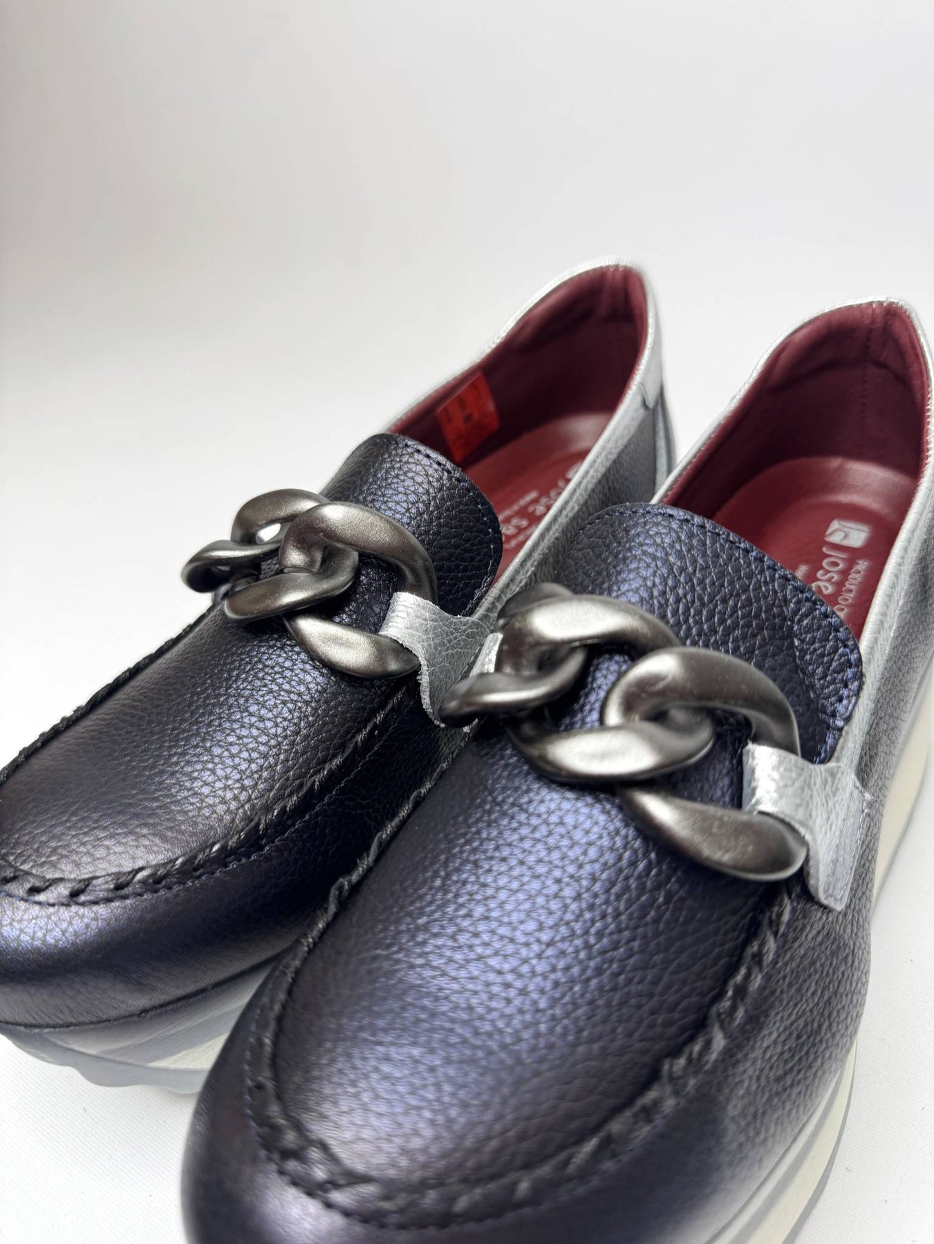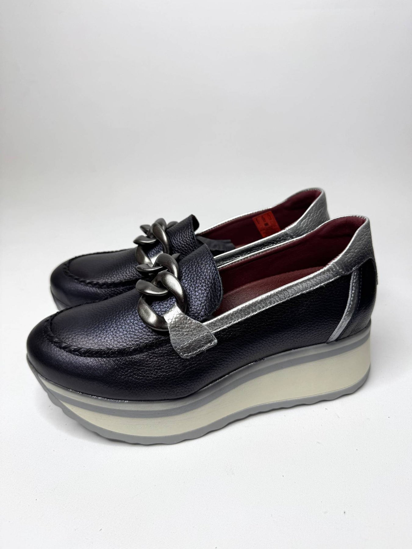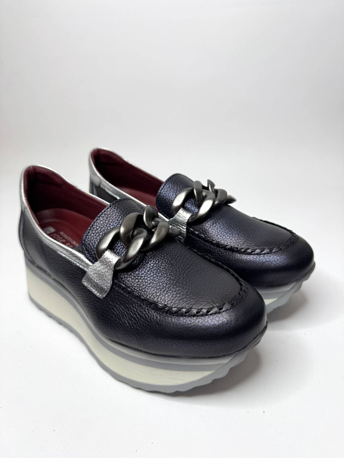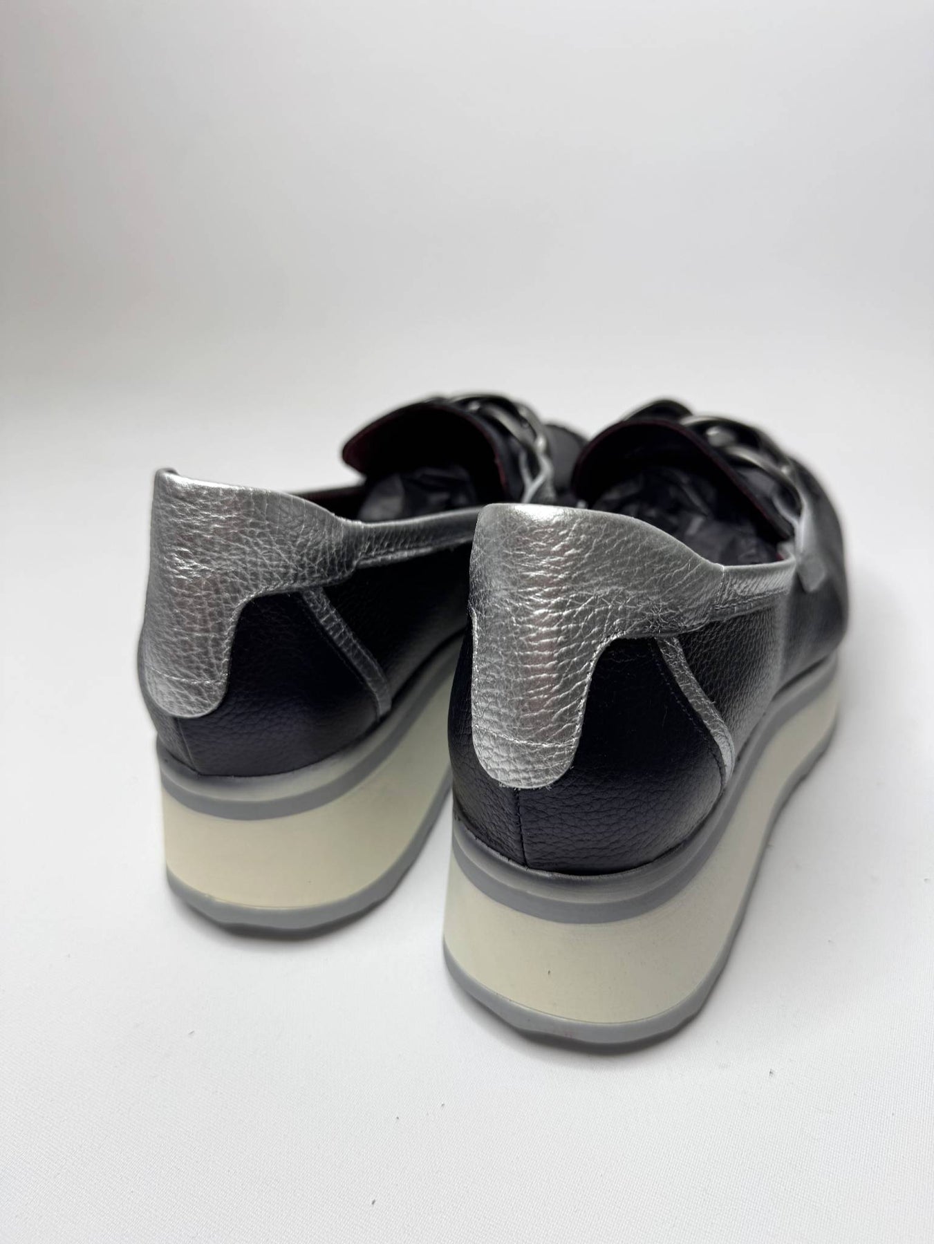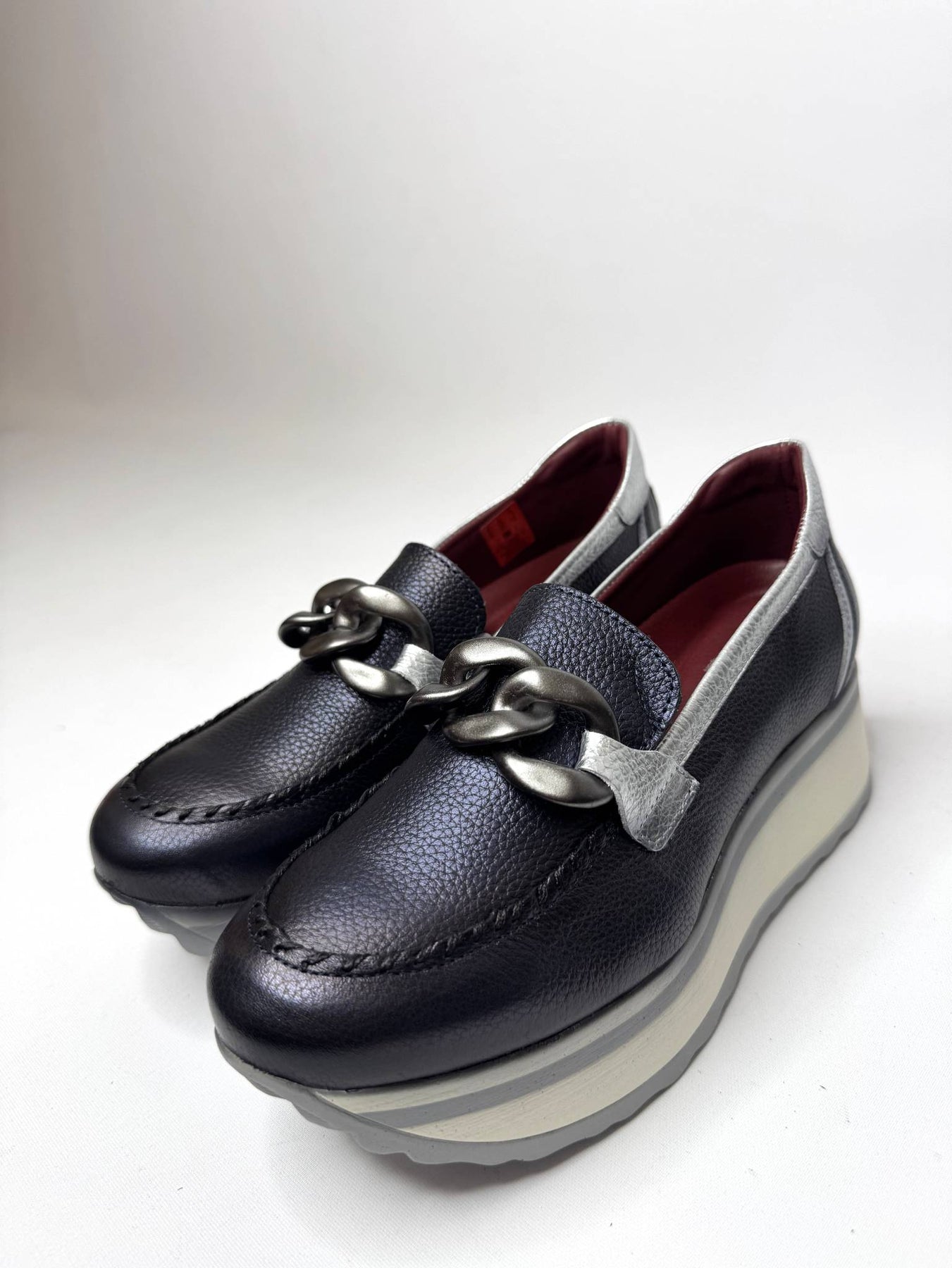 Regular price £130.00These are a gorgeous pair of navy and silver loafer with a buckle on the front. These are a great for of loafers that can be dressed up or dressed down.