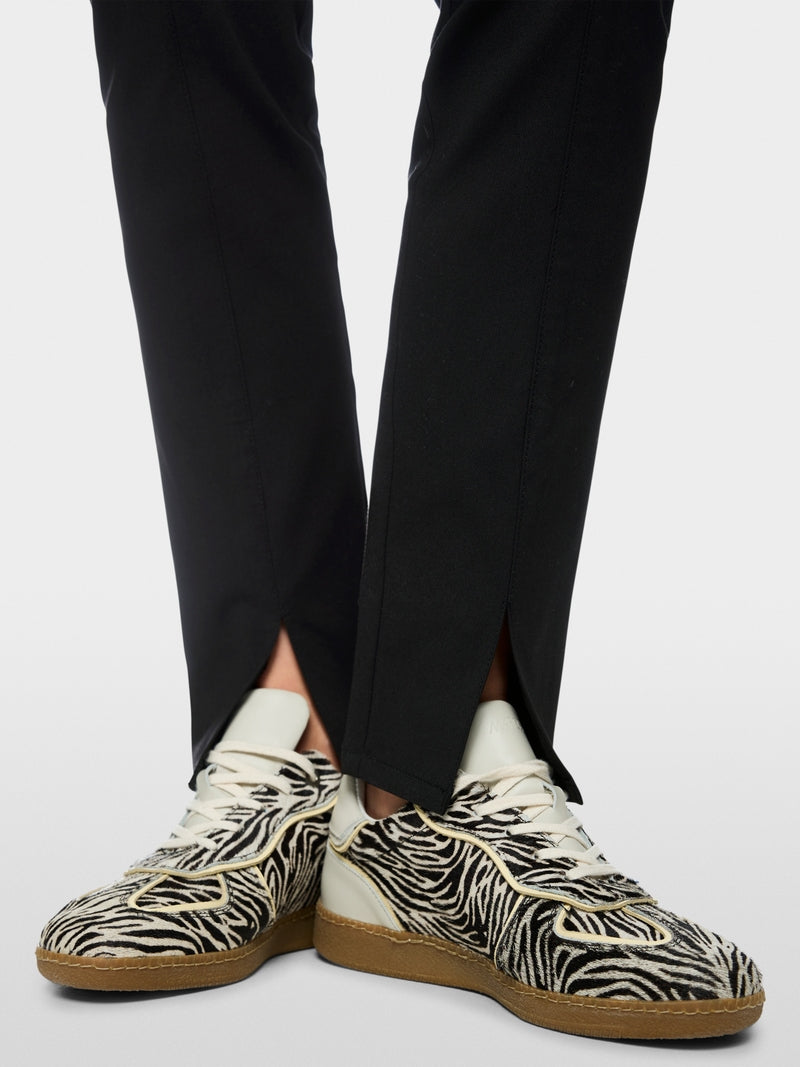 Regular price £165.00The SIENA are a close-fitting pair of pull-on trousers. They have a comfortable elasticated waistband and slightly cropped legs with a small slit at the front. The legs are cut relatively straight and strengthened with a pleat. The material mix is slightly elastic and gives the trousers stability. These trousers feature fitted shape, elasticated waistband, with slit.