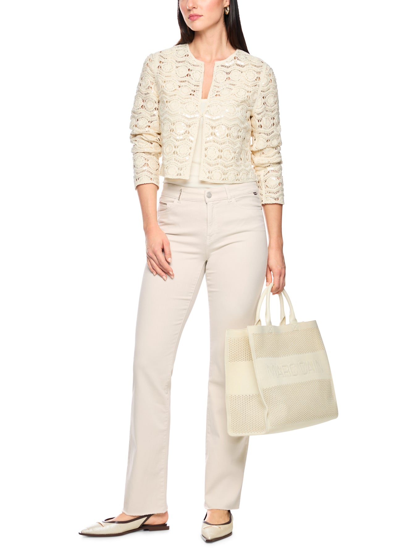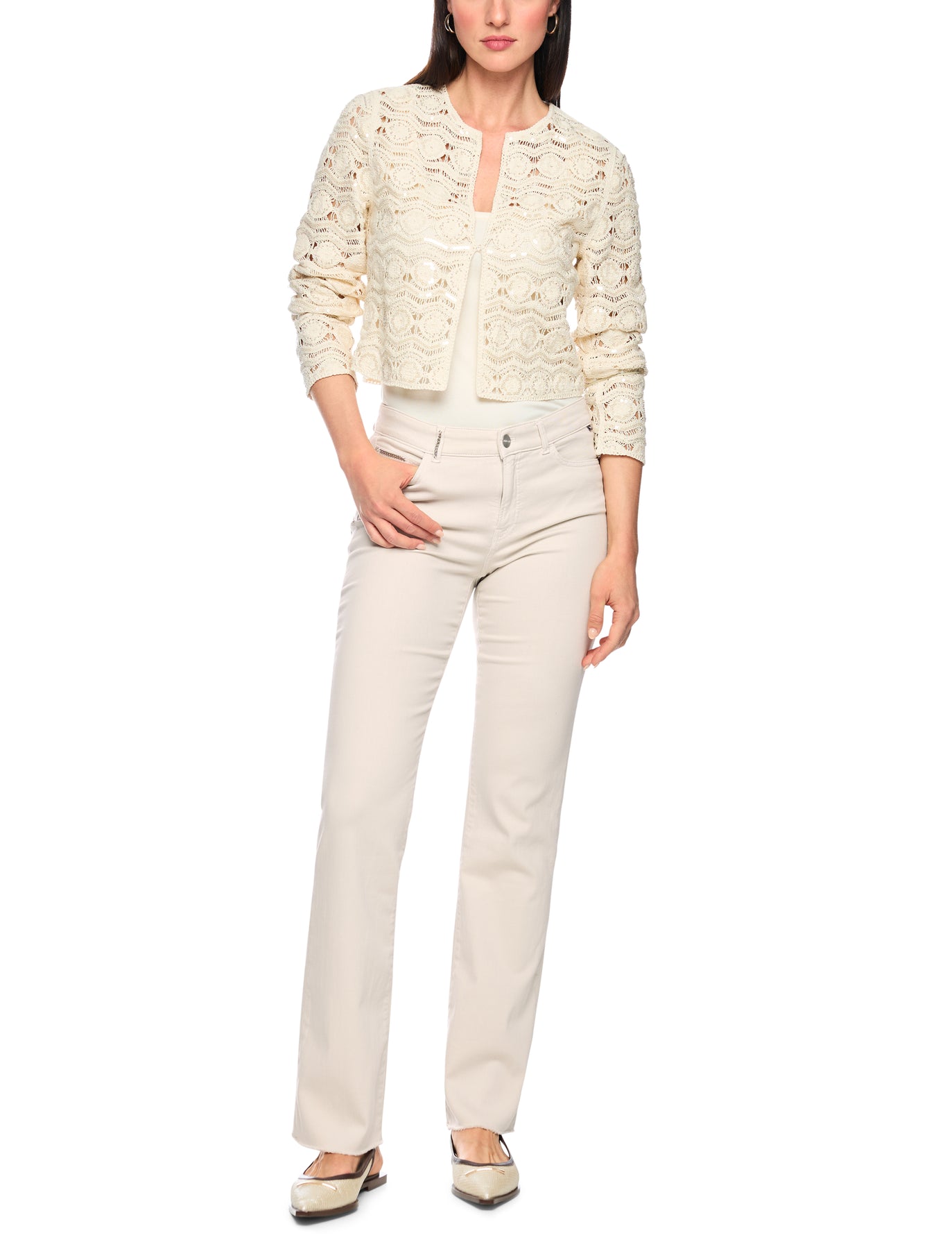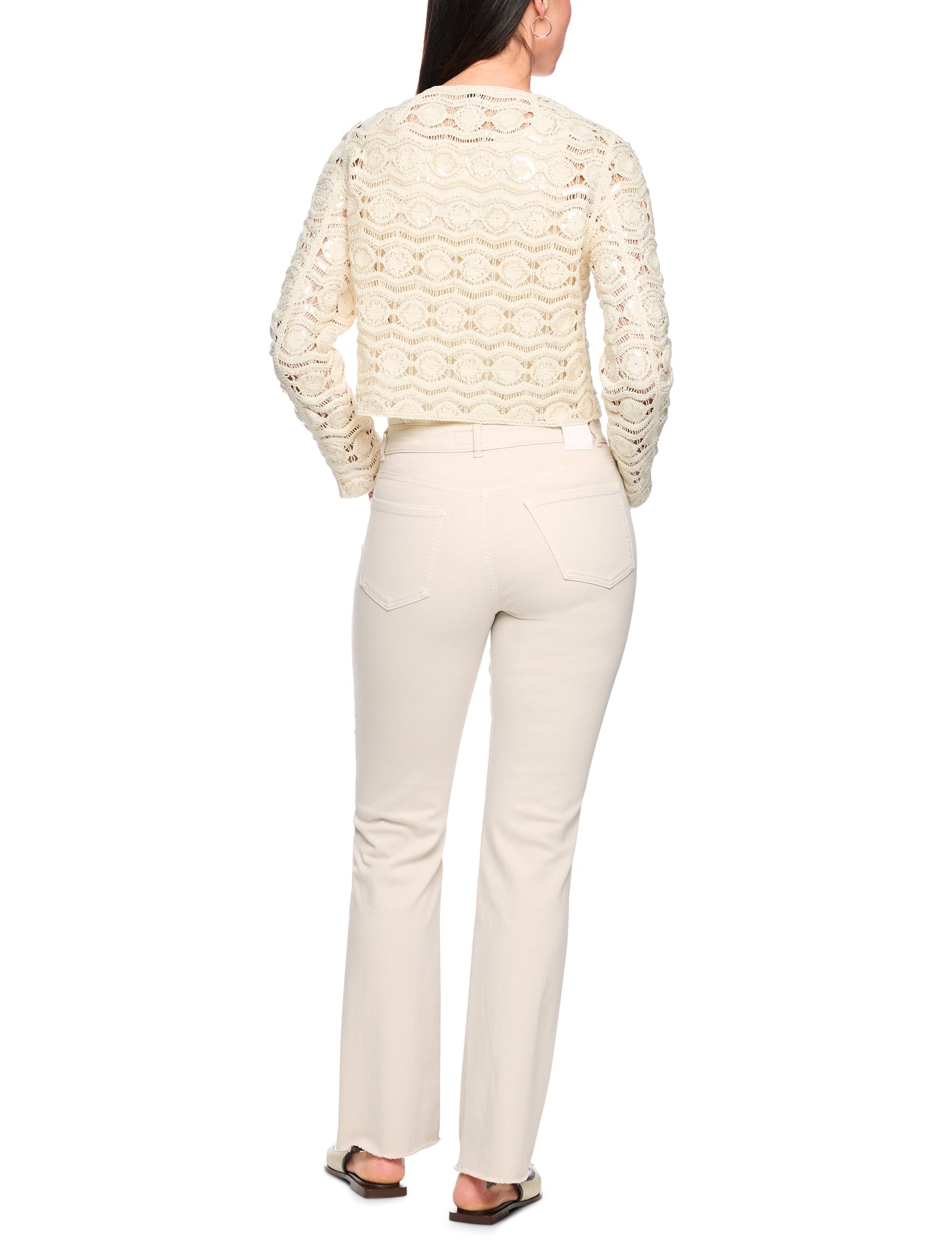 Regular price £179.00FARO ‘Rethink Together’ jeans, The FARO jeans combine a regular waist with a feminine cut for a modern, relaxed look. Made from regenerative cotton with elastane, they are extremely comfortable to wear. Small decorative details add stylish accents, while the open hem creates a casual look. The garment dyeing process gives these jeans a unique look. These jeans are from the ‘Rethink Together’ sustainability label. Feminine cut, Candiani Denim, Button and zip. FARO - FEMININE FIT - REGULAR - Leg: 33‘’. The model is 179 cm tall and wearing size N3 / UK 12.