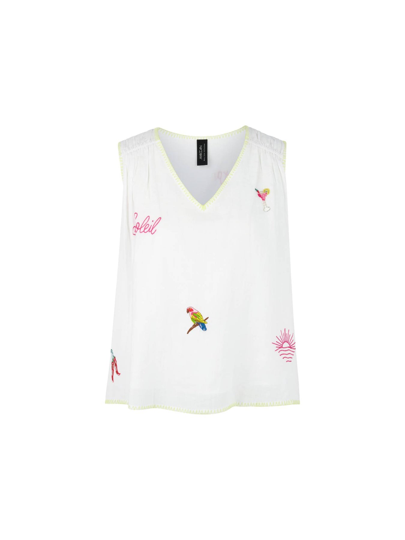 Regular price £209.00Loose top with embroidered patches|Loose top in lightweight ramie with a V-neck. Colourful embroidered patches add a summery accent. Its contrasting decorative stitching at the neckline, armholes and hem lend this top a subtle touch of detail. The light gathering at the shoulder creates a soft, feminine drape. Ideal for summery looks.|Loose cut|With inner lining|V-neck|Airy feel|The model is 179 cm tall and wearing size N3 / UK 12.