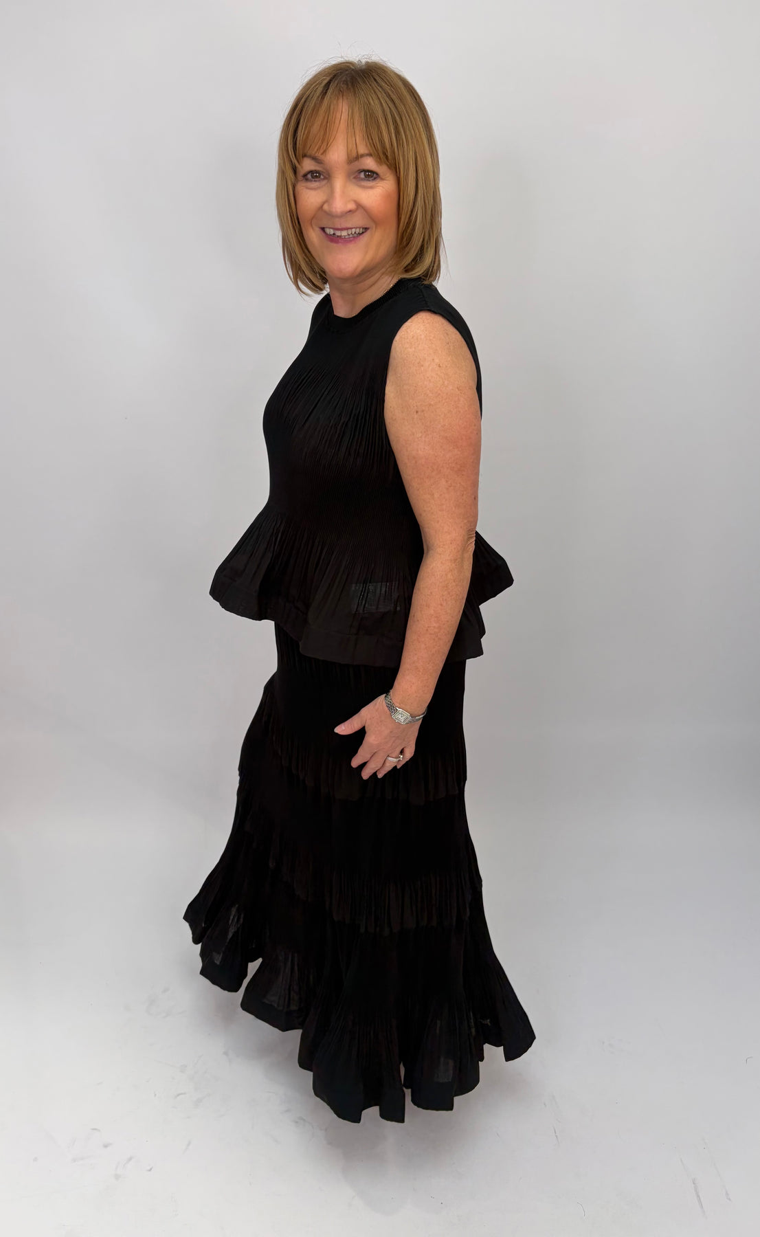 Regular price £181.00This is a lovely black top that can be wore causal or dressed up. This top has a matching skirt to make a full outfit (Sold Seperatley).