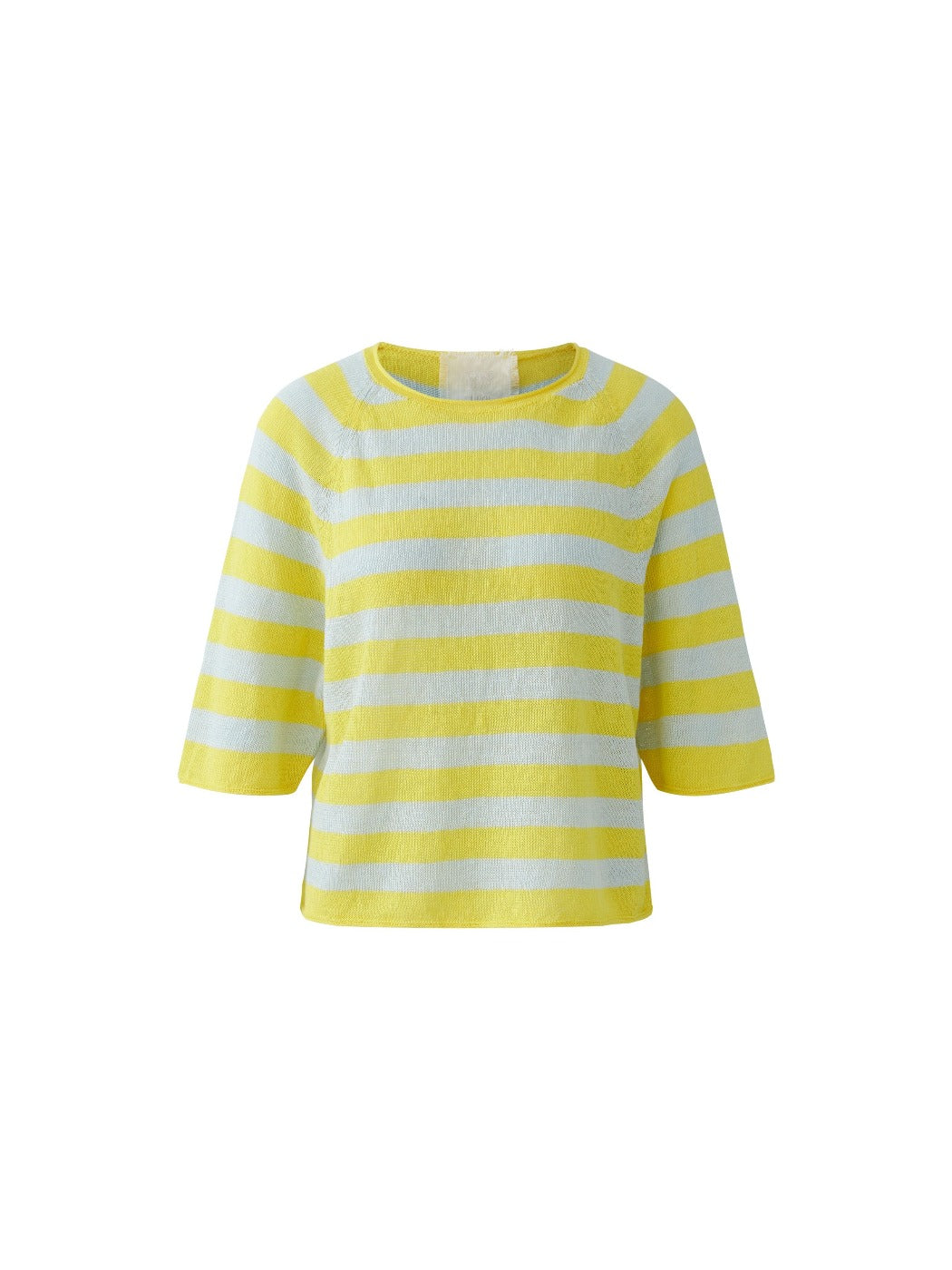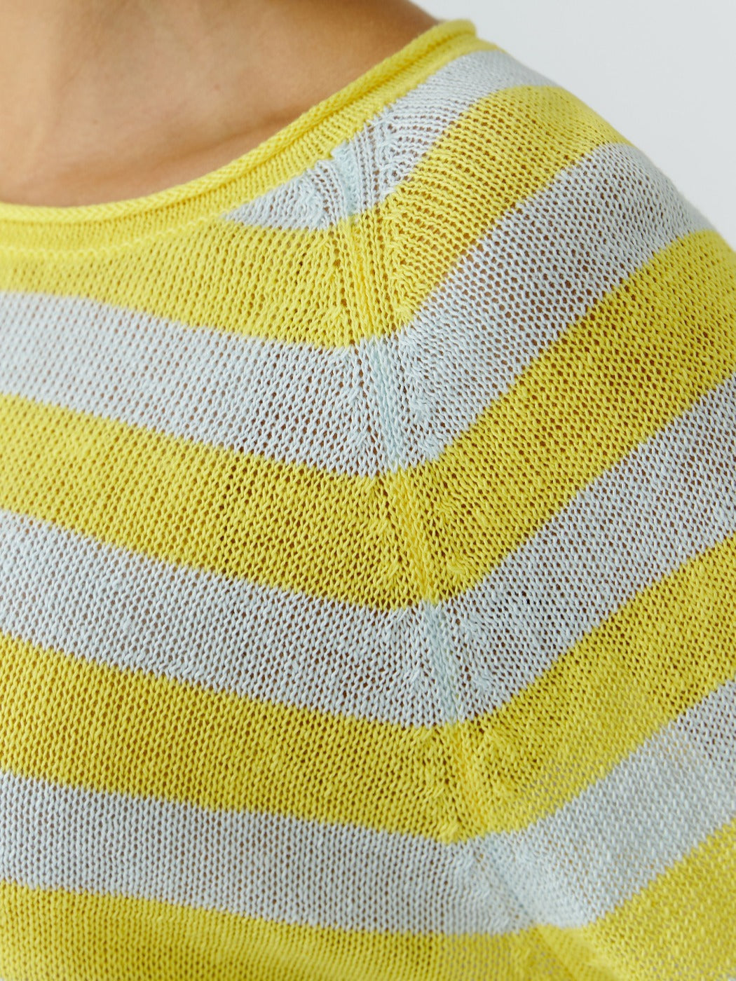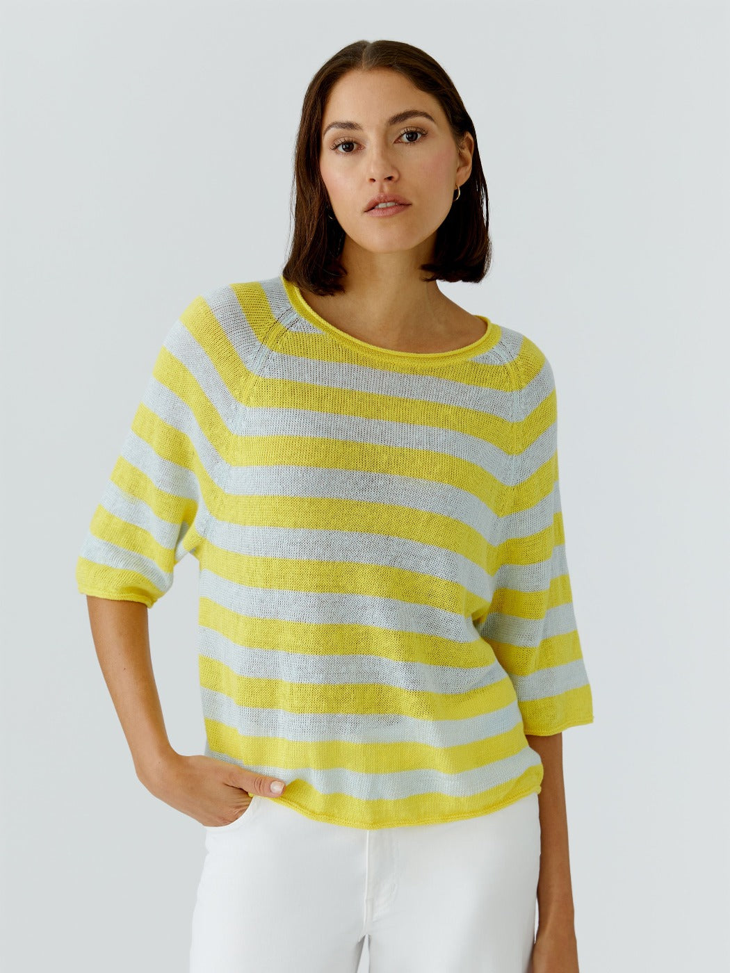 Regular price £112.00This is a gorgeous yellow striped jumper. 100% linen Pullover in a casual raglan shape