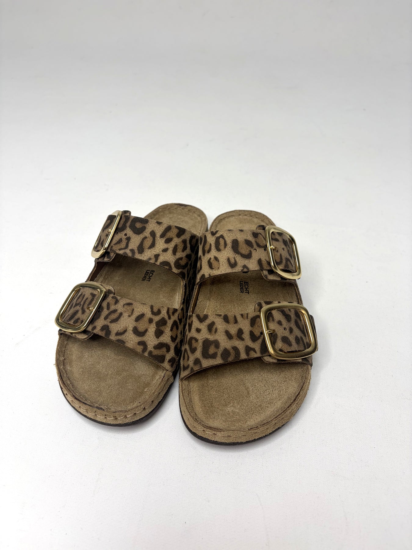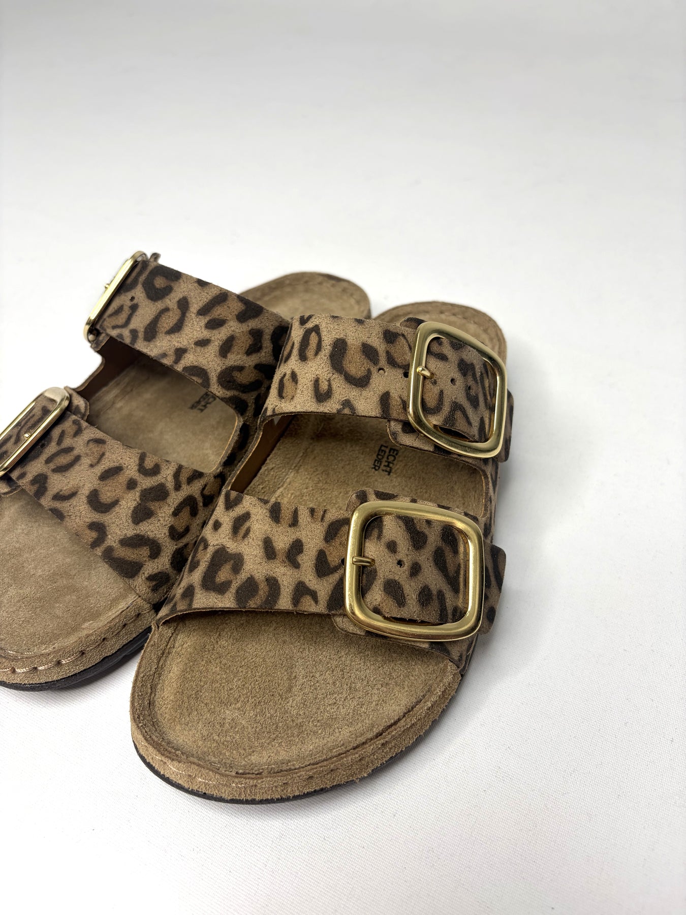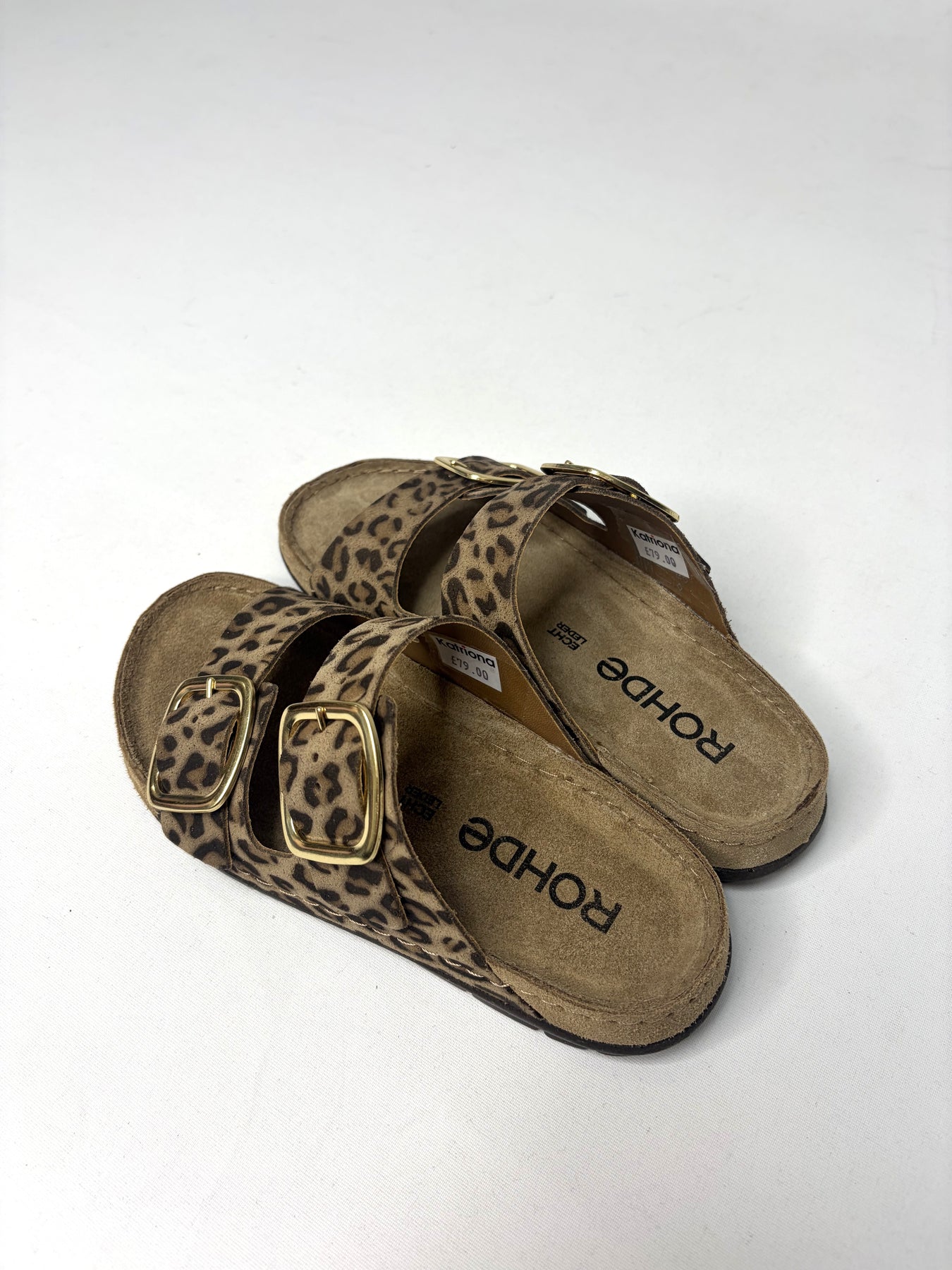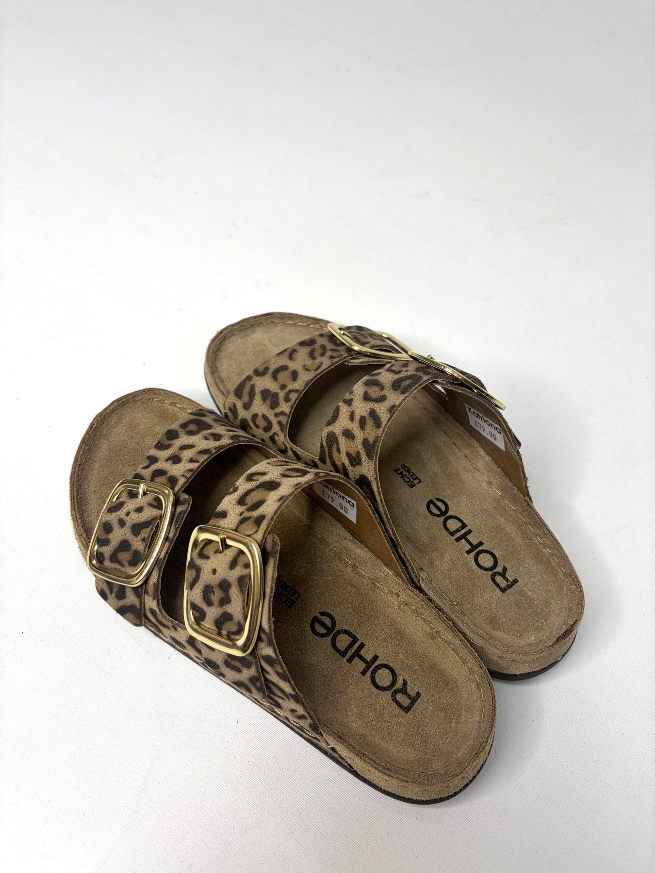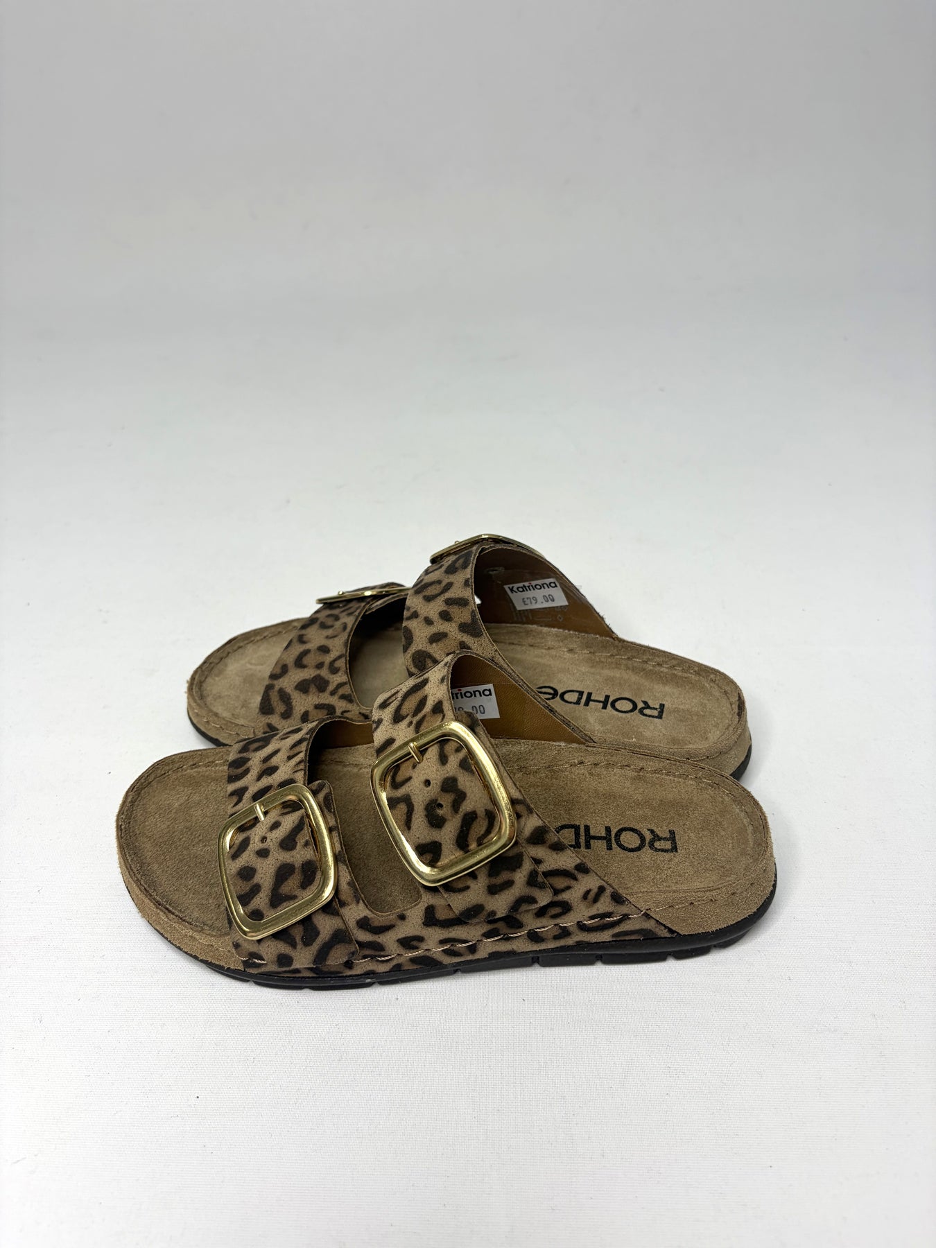 Regular price £79.00Gorgeous Rohde leopard print sandals with the gold buckles. These are a perfect little sandal to have for this Spring/Summer Season.
