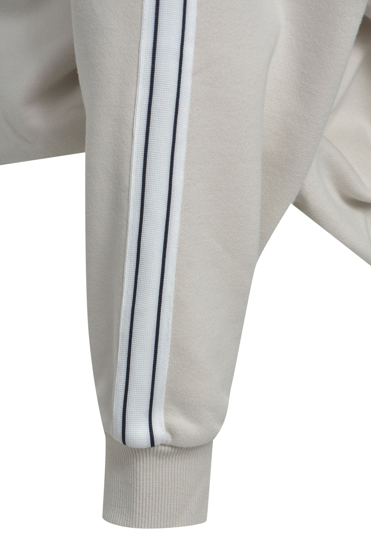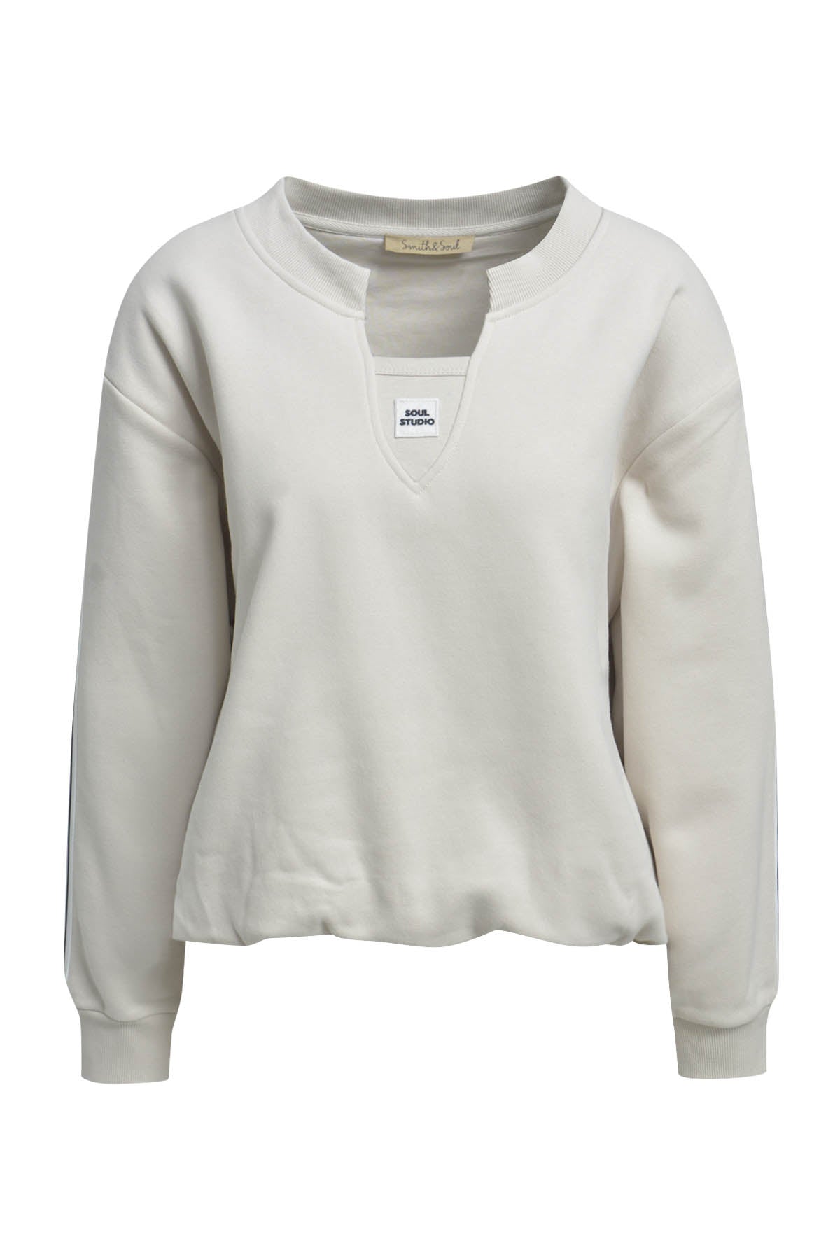 Regular price £96.00this is a lovely sand coloured sweatshirt, which has a matching pair of trouser (Sold Separately). This would be complete with the matching set and would be perfect for traveling. This sweatshirt features long sleeves, a stripe on the sleeve, cuffs, round neckline and a slight V-neckline.